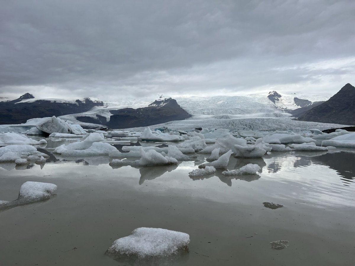 Po návrate sme vyrazili smer Diamond beach Jökulsárlón. Po ceste sme natrafili na skvelú zastávku vďaka reštaurácii - Fjallsárlón. Na tomto mieste sme mohli prísť až k samej blízkosti a vidieť malé ľadovce. Na pláži je možnosť si zaplatiť tour na člne. Taktiež tu bolo oveľa menej turistov, ako na najznámejšej lagúne Jökulsárlón a zároveň našej ďalšej zastávke.