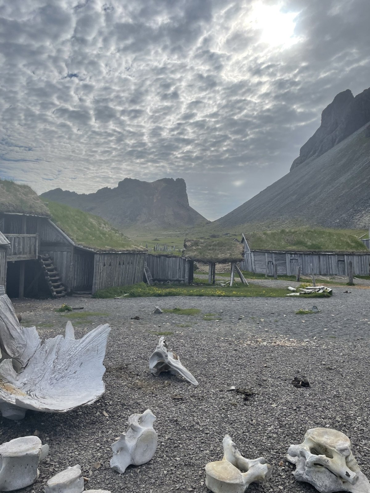 Následne sme sa vybrali pozrieť starú vikingskú dedinu. Nachádza sa v oblasti, kde môžete vidieť aj čiernu pláž Stokksnes a krásne výhľady. V spomínanej dedine sa natáčala časť seriálu Witcher, avšak budovy sú už staré, rozpadávajú sa a sú v hroznom stave. Ak dedinu vynecháte, tak o nič neprídete. Danú oblasť sa oplatí navštíviť a vidieť hlavne kvôli spomínaným výhľadom. Na začiatku sa nachádza pekná kaviareň, kde si aj zakúpite vstup, ktorý bol 1000 ISK na osobu do celej oblasti.