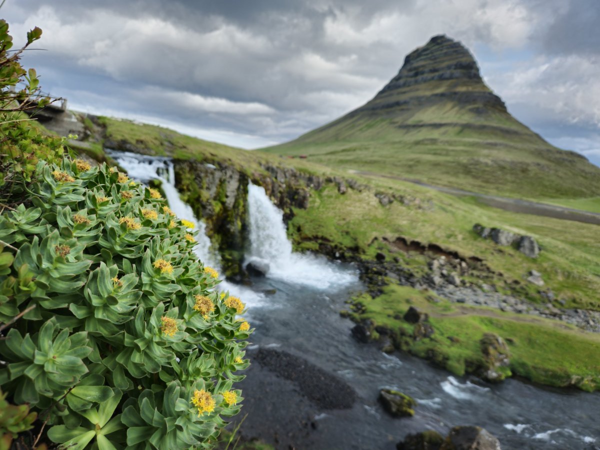 Po vzhliadnutí kamier, ktoré nám dodali trošku optimizmu, sme sa aj napriek horšiemu počasiu vybrali k najfotografovanejšej hore Islandu, a to Kirkjufell. Priamo pri tejto hore sa nachádzajú menšie vodopády Kirkjufellsfoss. Po ceste avšak uvidíte viac zaujímavých výhľadov.