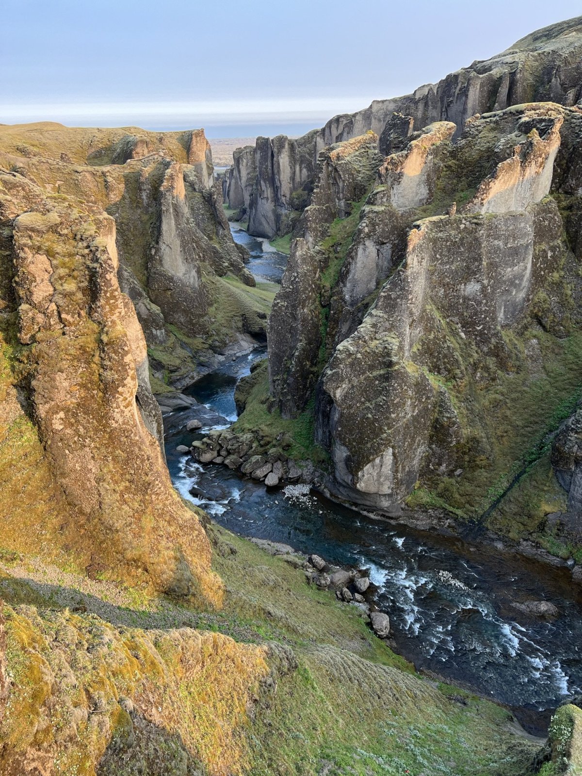My sme však správnu cestu, ktorou by sme sa dostali až dolu netrafili. Avšak naša túžba ísť priamo do koňona bola veľká, a tak sme museli improvizovať. Vďaka dronu sme si našli cestičku, po ktorej sa nám podarilo dostať dolu. Priamo pri vode sme strávili dlhší čas a užívali si toto užasné miesto, ktoré dávam na 1. miesto, čo som mohol vidieť na Islande.