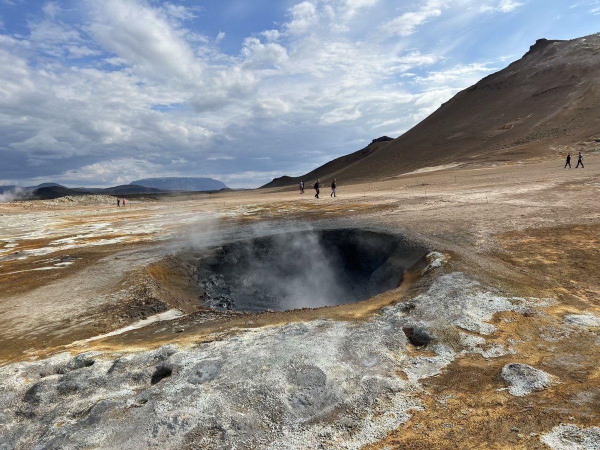 A tak naša ďalsia zastávka bolo až jazero Mývatn, pri ktorom sme mali aj naše ďalšie ubytovanie. Pri jazere sa nachádza viac miest, ako napríklad kráter sopky Hverfjall, z ktorého je výhľad na okolie. Taktiež sa pri jazere nachádzajú termálne jazierka Myvatn Nature Baths, ktoré majú podobnú vodu ako Blue Lagoon. Cena za vstup je cca 45€, ale my sme si vybrali kúpanie priamo v Húsaviku.