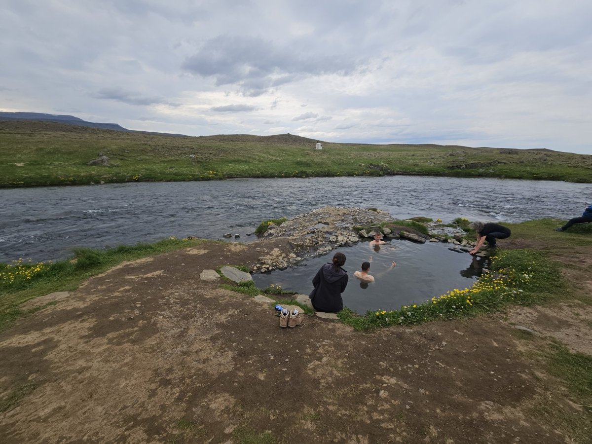 Ďalšia naša zastávka bola kvôli kúpaniu v jazierku Fosslaug, ktoré je vybudované priamo pri rieky neďaleko vodopádu. K jazierku vedia krátka, asi 5 minutová prechádzka. Voda však bola mierne špinavá a zároveň veľmi teplá.