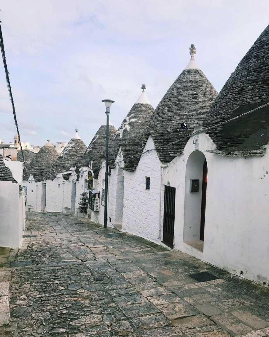 Vesnice s velmi netradiční, historickou, zato typickou architekturou. Jedná se o architekturu domů s názvem Trulli. Jsou stavěné z kamenů bez použití malty, natírané bílým vápnem. Střechy jsou do tvaru kužele a mívají specifickou věžičku a kresbu. Trulli jsou i na jiných místech než v Alberobello, jen po cestě vlakem jich může bystrý cestovatel spatřit několik, ale Alberobello je jediná vesnice, kde se dochovaly v ucelených ulicích a je jich tu nejvíce.