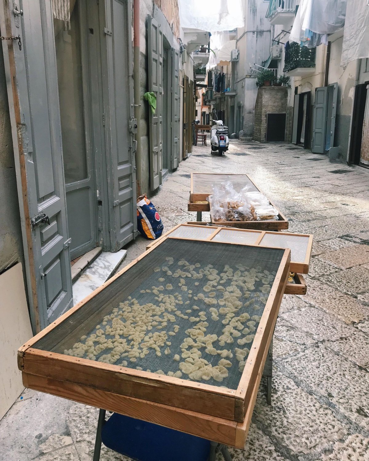 Při jedné z procházek po Bari jsme objevili jedno místo, které mě nadchlo. Zcela náhodné objevení této na první pohled obyčejné ulice je můj osobní highlight výletu! Babči z této ulice totiž snad v každém domku dělají domácí těstoviny orecchiette, typické v Apulii. U toho si povídají, pak je suší na ulici před domem a prodávají (1/2kg se mnou letělo domů). Jedná se o ulici Strada Arco Basso, určitě ji navštivte. Pocítíte domácí atmosféru a trošku nasajete život místních obyvatel.