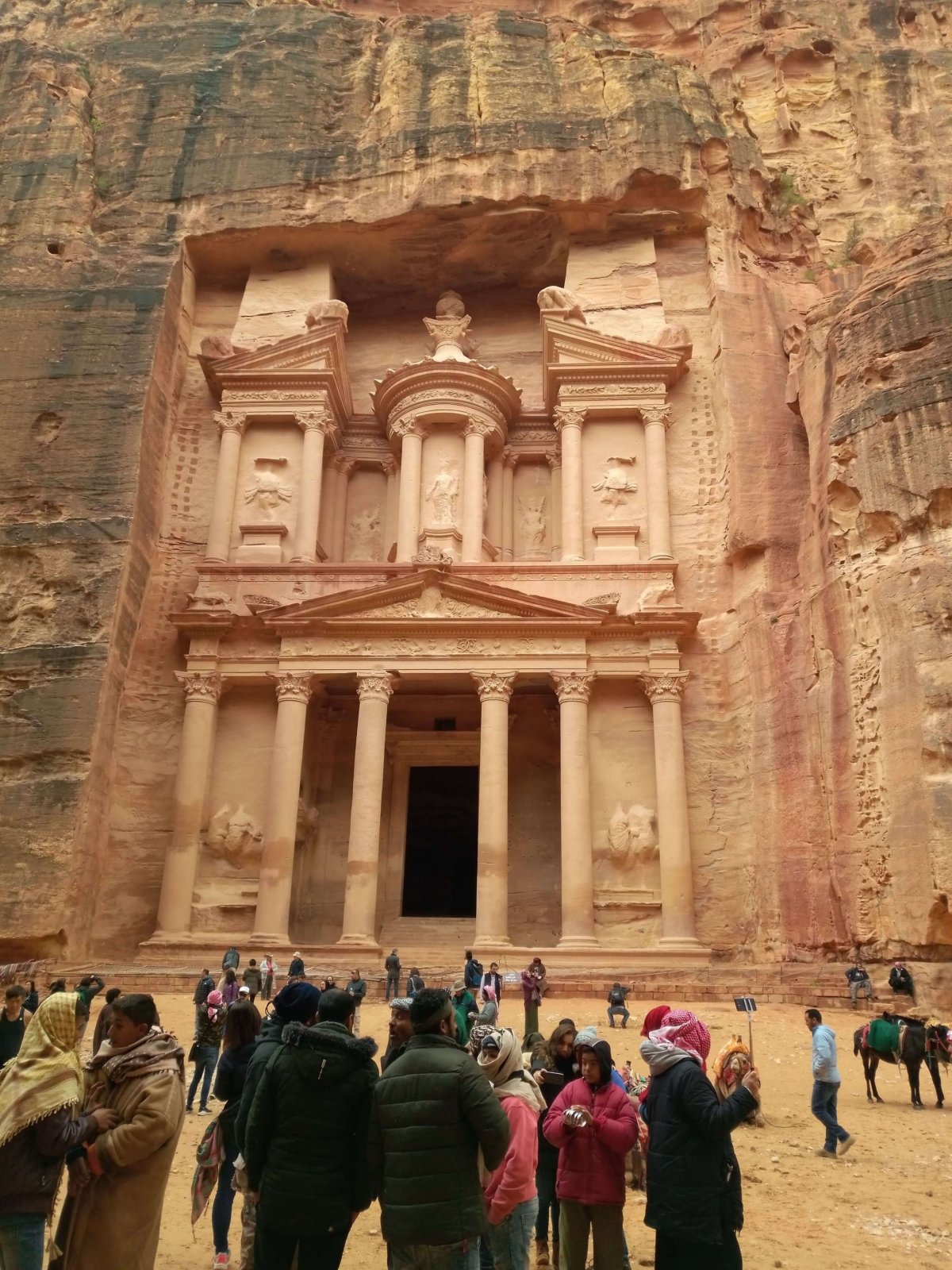 17. 2. 2018 - Další den ráno jsme vyrazili do skalního města Petra, kde byl vstup opravdu drahý, ale stálo to za to. Platili jsme 1500,-/osoba, nechali jsme si potvrdit formulář, odmítli jsme nabídky místních, kteří nabízeli svezení na oslech či koních, a pak jsme se nechali pohltit krásou města. Za jeden den jsme Petru prošli úplně celou, až k té druhé pokladnici, která opravdu stojí za to vidět, je o dost větší než ta známější. Večer jsme si došli na místní specialitu do restaurace Al Wadi Restauran, a tak jsme v Jordánsku strávili 2 noci, a to i kvůli levnějšímu poplatku za víza. Takhle to vyjde nejlíp.