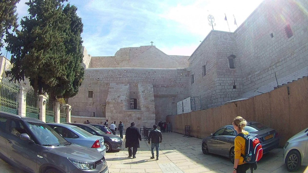 21. 2. 2018 Další den jsem vyrazili autobusem č. 231 do Betléma, kde na konečné zastávky čekali naháněči a taxikáři. Byli dost neodbytní, ale dalo se to zvládnout. Pěšky jsme šli na náměstí max. 20 minut, díky čemuž jsme prošli i místní trh. Při zpáteční cestě bylo zvláštní, že na hraniční kontrole při opouštění Palestinského území všichni místní vystoupili z autobusu, a nás turisty si šli prohlídnout vojáci. Nic nechtěli, jenom prošli autobusem, ostatní prolustrovali, vrátili se a jeli jsme dál. Večer jsme se přesunuli autobusem do Tel-Avivu.