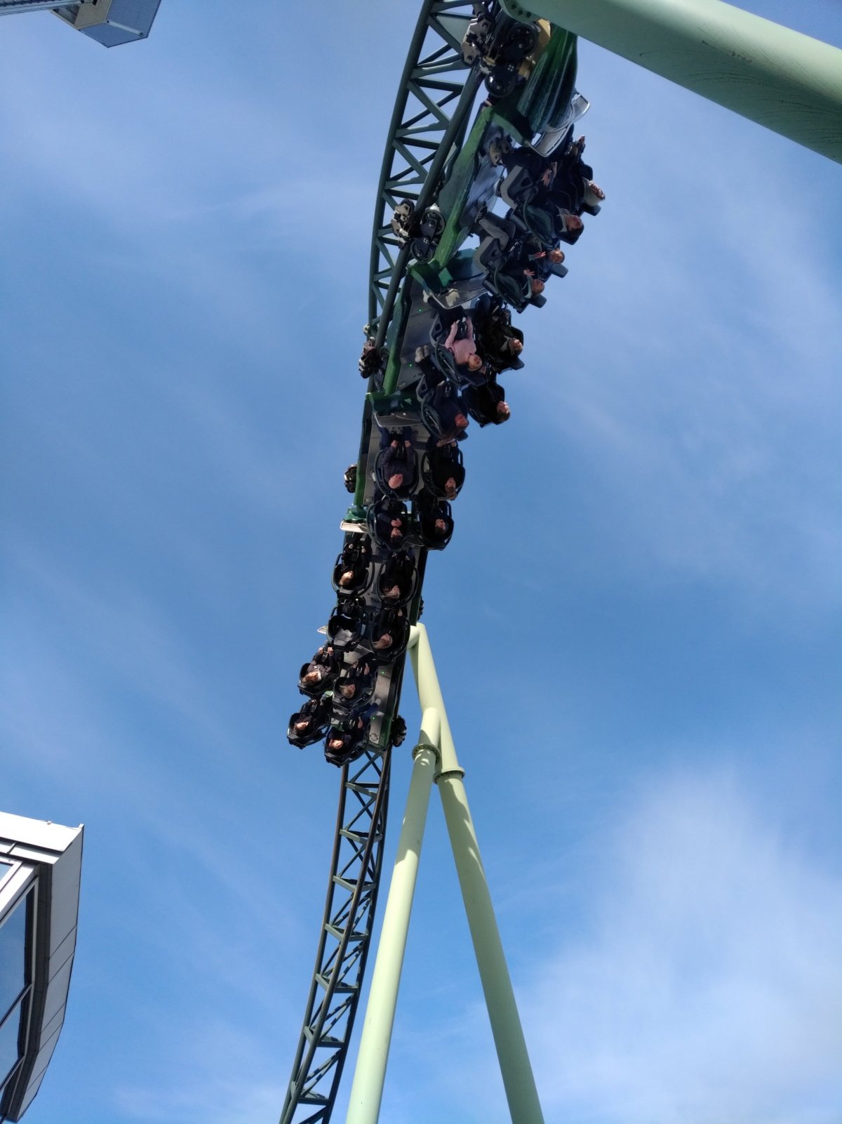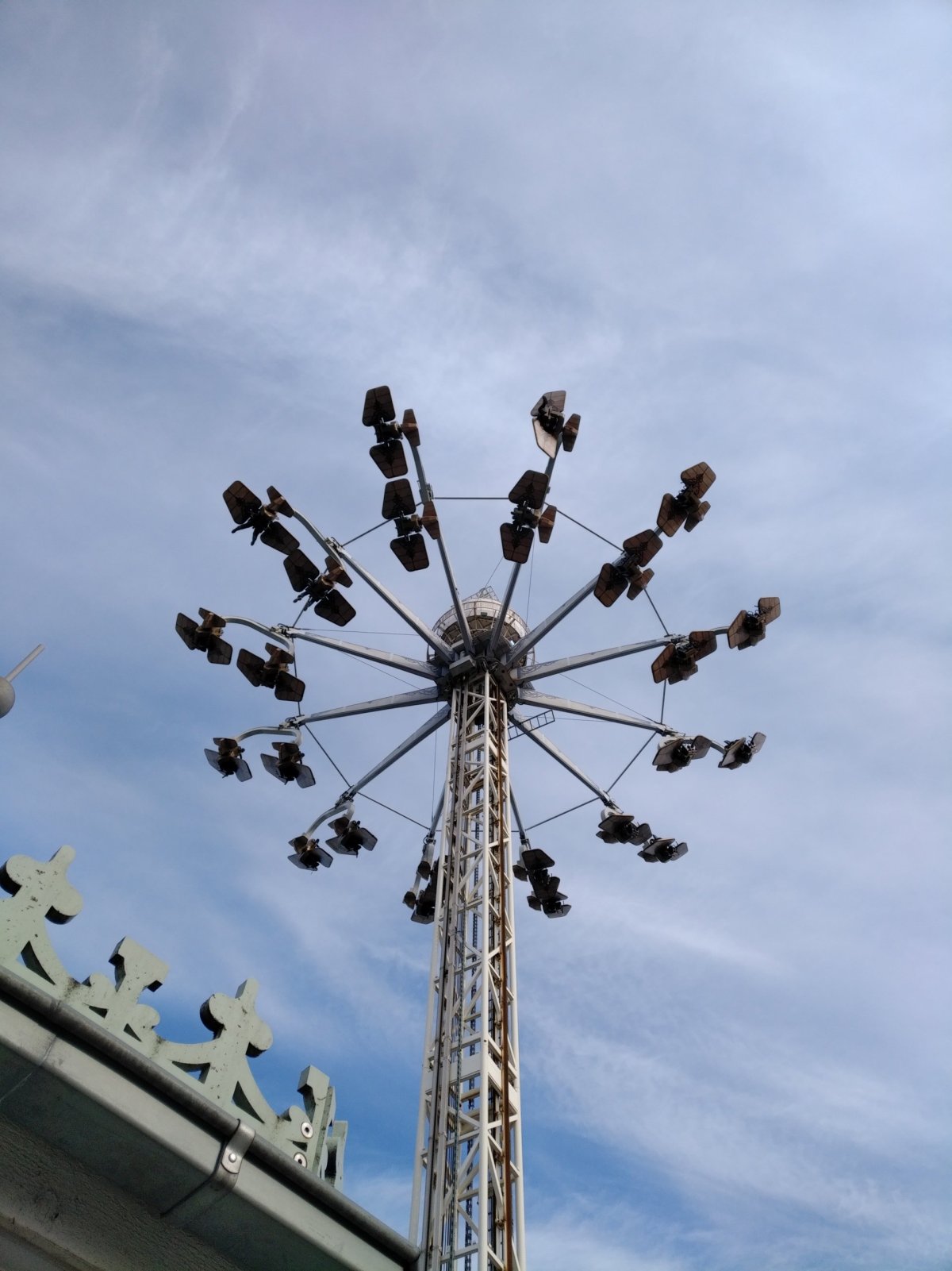 Počasí bylo pěkné, svítilo slunce, ale žádné vedro nebylo a na atrakcích dost fouká. Na konci dne jsem byla docela zmrzlá (a to jsme vynechali vodní atrakce) tak jsem Adama dotáhla na ruské kolo – kabinky jsou vyhřívané a výhled famózní.