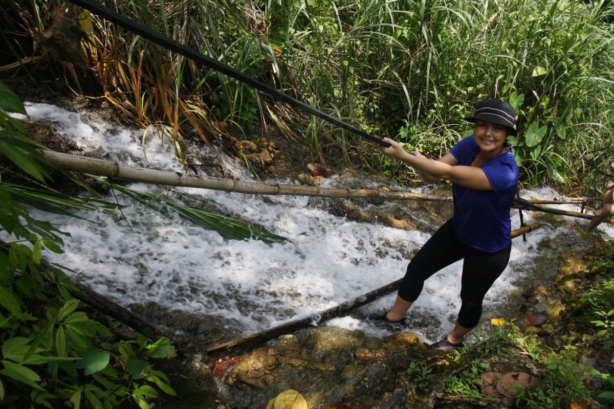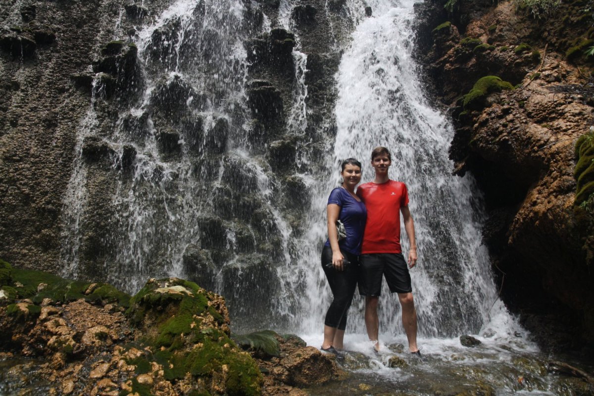 Stejnou cestou dolů je to trošku složitější, ale po chvilkovém zaváhání na jednom místě se zase všichni shledáváme a pokračujeme zpátky na rozcestí. Dáváme se doprava a korytem jedné z nesčetných říček slaňujeme ještě hlouběji do údolí. Místo lana sem vynalézaví místní nainstalovali pneumatiku rozřezanou na dlouhý gumový “provaz”. Konečně jsme dole u hlavního koryta a pokračujeme pohádkovou krajinou podél bezpočtu vodopádů valících se z desítky metrů vysokých útesů. Ještě lepší je, že jsme v celém údolí sami. Mnohokrát si říkáme, že už jsme viděli ten nejhezčí pohled, abychom to o pár kroků později brali zpět. To nejúžasnější nás ale teprve čeká…