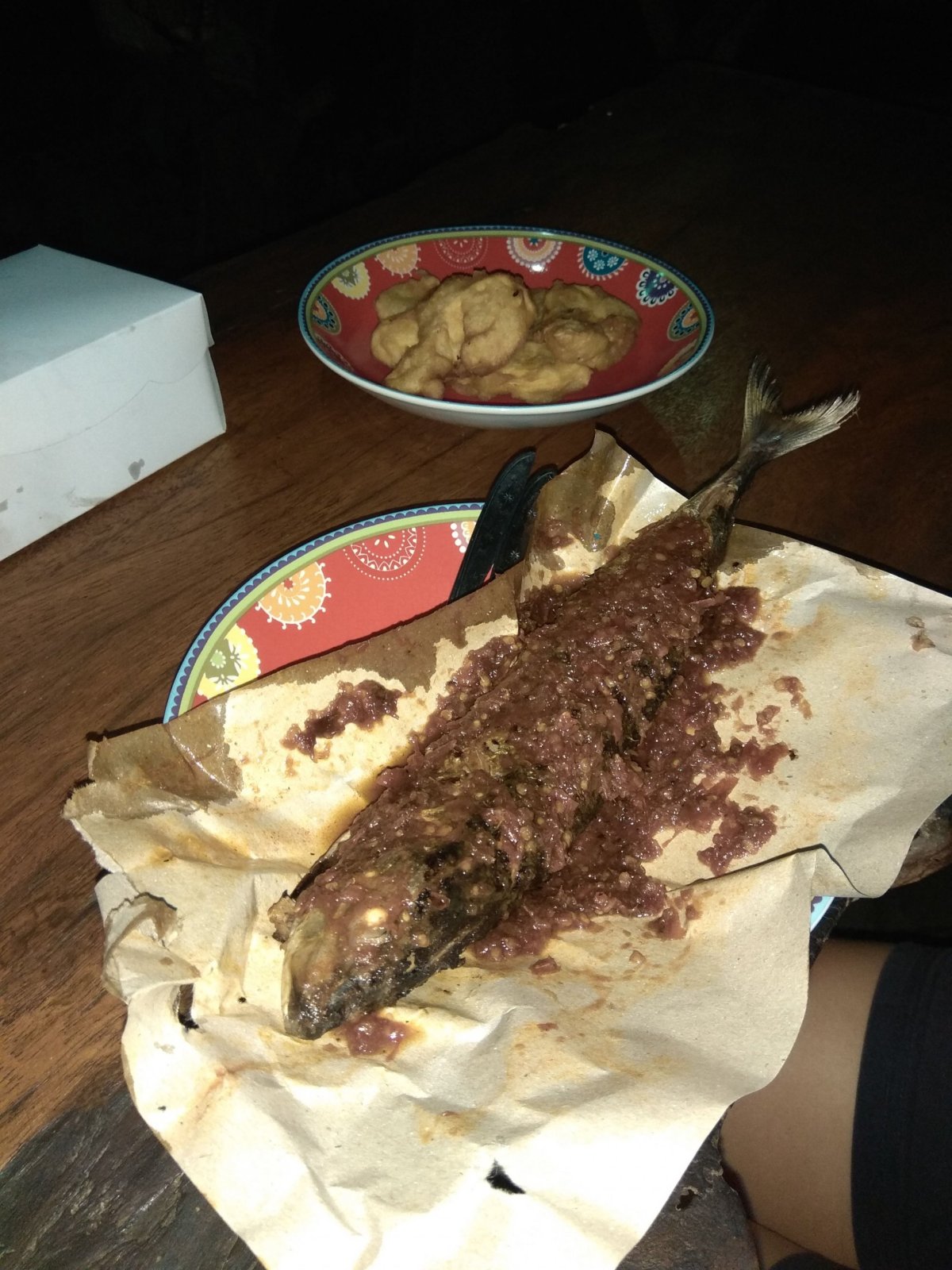 Náladu nám příliš nezlepšuje ani dovezené jídlo. Na moje satay (malé kousky masa grilované na špejli) kuchař použil snad všechny kusy kuřete s výjimkou masa. Ještě horší to má Kája s její rybou, která je napatlaná tlustou vrstvou pálivé omáčky, přes kterou není cítit žádná jiná chuť. Naštěstí jsem prozíravě objednal i dezert - 3 cm vysokou palačinku ze zvláštního těsta s čokoládou. Ta nám trochu spravuje chuť a ještě nám kus zbývá na noční svačinku. Od malé krizičky z únavy a jídla nás zachraňuje hodinová masáž za nepřekonatelných 80 kč přímo v ubytku. Jdeme to zaspat.