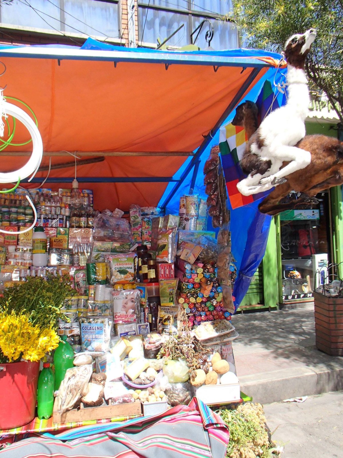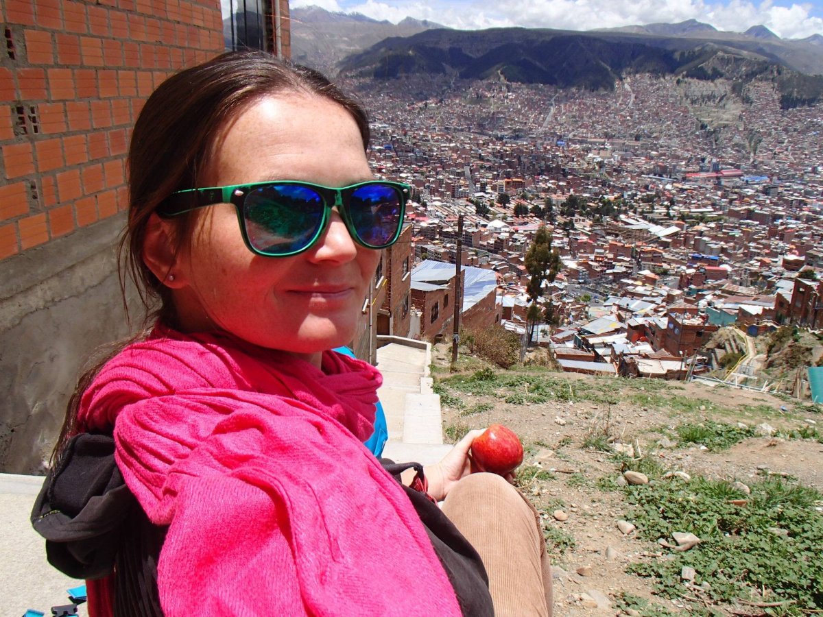 Ráno putujeme pěšky na letiště, není to daleko, asi 3 km, a taxíky nám přijdou zbytečně drahé. Odbavení proběhne v pořádku, i menší nadváha u batohu mi projde, v tom už mám celkem praxi, jak to zamaskovat. Poté platíme ještě poplatek letišti, s tím jsem se ještě nesetkala. Kontroly jsou tu celkem laxní, Markovi prochází velké balení opalovacího krému. A už nastupujeme do boeingu. Pozoruji letušky se zájmem, zkoumám, co jsme my dělali jinak. Dostaneme sušenku a pití zdarma. To už se na většině letů nevidí. Po přistání a vymotání se z letiště odmítáme místní taxíky a vydáváme se do ubytování pešky. Občas narazíme na zátarasy nebo zbytky ohořelé pneumatiky, ale nezdá se nám to zlé. Projdeme město El Atlo a dojdeme až na jeho okraj. Je zde úžasný výhled na město La Paz. To bere dech. Druhé hlavní město Bolívie La Paz je vyloženě v údolí a ze všech stran obklopeno horami. Baráčky jsou malinké a celkově to působí kouzelným dojmem. Scházíme po schodem, hodně schodech, dolů. Marek zkouší lítat s dronem, bohužel mu to blízká letiště zakazují. Já si dávám jablko a kochám se výhledy. Dojdeme do středu města a celkem snadno najdeme ubytování. Opět máme pokoj sami pro sebe. Nahoře je pak společenská místnost s velkými prosklenými okny. Marek si dává sprchu a pak vyrážíme ven. Jak se ukázalo, bydlíme hned u čarodějnického trhu. Na něj jsem se opravdu těšila. Ale je pro mě trochu zklamáním, pár stánků, kde mají vesměs to samé. Nejdříve přemýšlím, že bych si koupila lektvar na přivolání lásky nebo bohatství, ale když vidím, jak je vše zaprášené, celkem mě to i přejde. Největší atrakcí jsou zde usušené malé lamy. Procházíme uličky v okolí, až se dostaneme k červené lanovce. Cestou ještě potkáme cukrárnu, kde prodávají dorty, neodolám, koneckonců jsem na dovolené (pokud cestuji dva a více měsíců, měla bych si tohle přestat namlouvat při každém dietním hříchu). Lanovka nás vyveze zpět do části El Alto, kde se každé úterý a neděli konají nejvýše položené trhy na světě. Trhy mají několik kilometrů, prodejci tu jsou vedle sebe nalepení a seženete zde opravdu všechno. Od součástek na auto, jídlo, kosmetiku, oblečení, elektroniku, prostě vše, co vás napadne. Ochutnáme místní dezert, želé se šlehačkou, stojí to v přepočtu pár korun a jedí to všichni místní, je to opravdu sladká dobrota. Přestože si s prodavačkou nemůžeme přes jazykovou bariéru rozumět, usmíváme se na sebe a obě z toho máme dobrý pocit (aspoň si to myslím). Marek si dává místní brambůrky. Poté ještě někde ulovíme housku a domů se vracíme za tmy. Utratíme 40 bolivijských boliviano za dobroty pro oba plus za lanovku. Celkem levný den. Večer si ještě v knihovně v hostelu vyměním knížku, vrátím tamtu svoji přečtenou a vezmu si jinou, kterou až dočtu, opět někde nechám. Marek na mě trošku kouká, a tak mu vysvětluji, že je to zcela běžná praxe a dělá to tak spousta cestovatelů, takhle se ty knížky prostě točí.