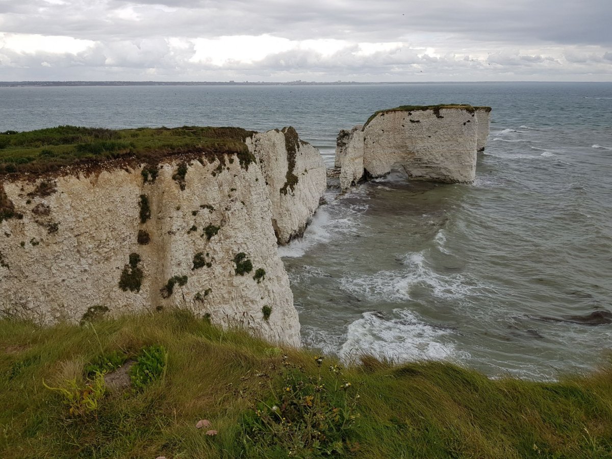Po ubytování u sympatického domorodce jsme vyrazili ulovit něco k obědu. Padl mi do oka Chowder s mořskými plody a jelikož už bylo po dvanácté, byl také čas na první pivčo. Když jsme nabrali dostatek energie, vyrazili jsme na stezku za útesy Old Harry rocks. Je to z centra asi hodinová příjemná procházka (do kopce!), ale výsledek za to stojí. Zajímavých vyhlídek je tam spousta, doporučuji sbalit dečku a pořádně se pokochat. Bohužel nahoře se nám zatáhlo a pak začalo i pršet, s tím ale musí člověk v Anglii počítat. A jelikož frajeři nenosí deštník, dal jsem si předčasnou odpolední sprchu.