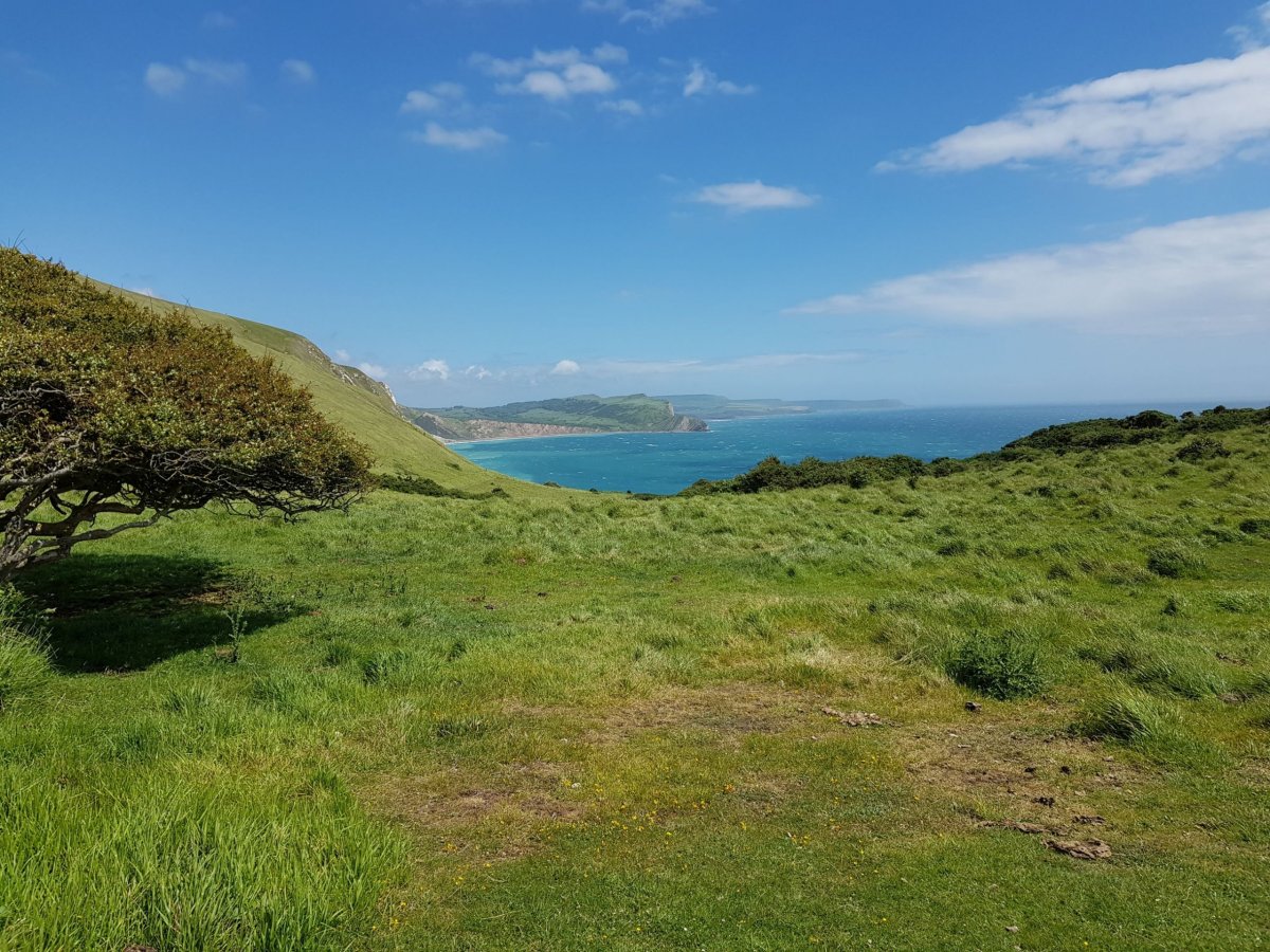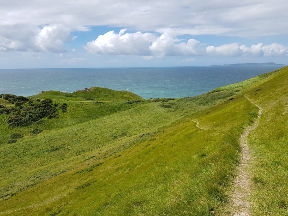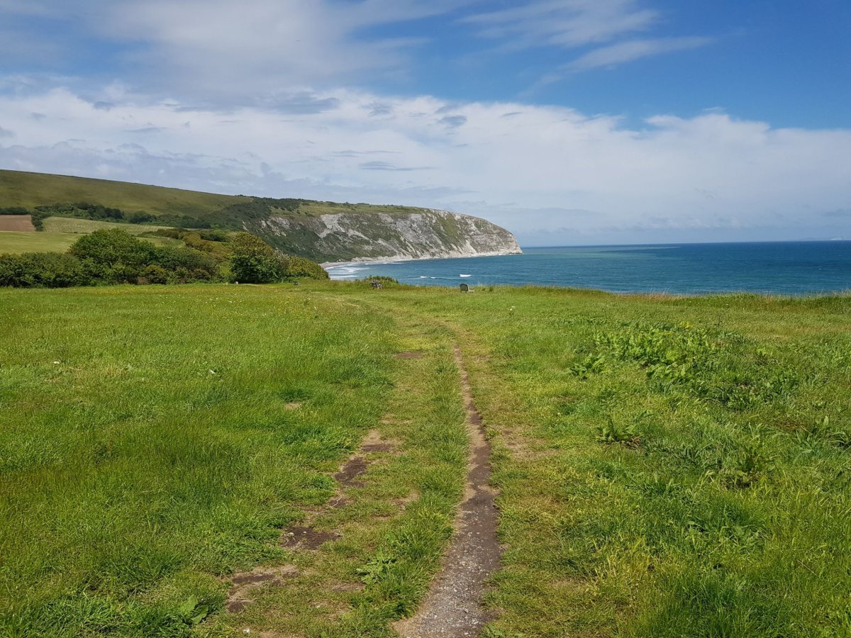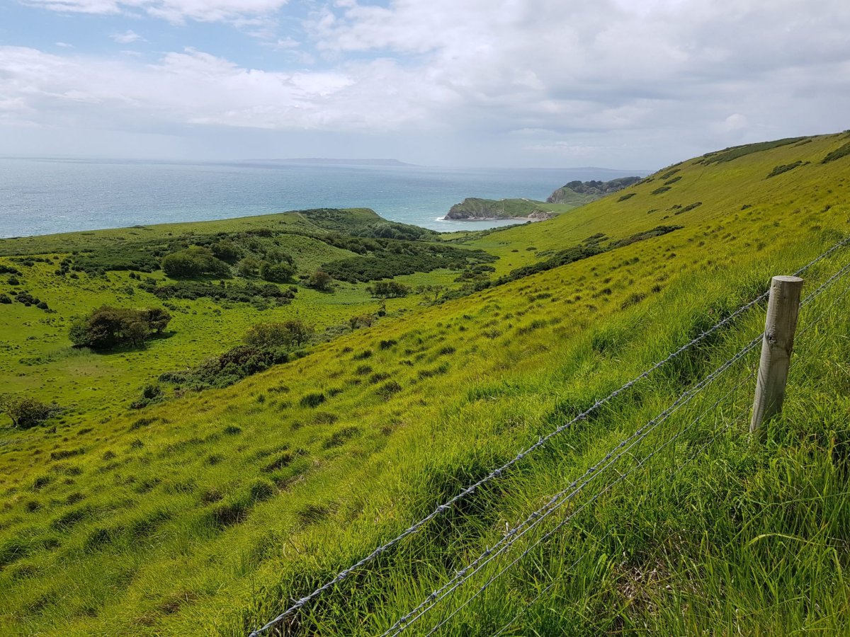 Vzhledem k tomu, že jsme vyjeli už v 9 ráno a stihli Durdle door v podstatě dopoledne, přišla na řadu trocha improvizace. Z Visitors centra jsme měli v plánu dojít na vzdušnou čarou 5 km vzdálený Lulworth castle. Začátek byl naprosto úžasný a naskytl nám naprosto fotogenickou krajinu. Co mě trochu zaráželo bylo, že cesta nebyla vyznačená na google mapách. Vystoupali jsme na kopec, šli asi hodinu a potřebovali dojít dolů k vesnicím, ale vše kromě stezky, která vedla kolmo, bylo označeno jako vojenský prostor s vysokým nebezpečím výbuchů a já nevím čeho. Myslím, že ty cedule byly fake, ale ani lidi chodící z opačného směru nám nebyli schopni říct, zda lze ze stezky vybočit, tak jsme raději hrad oželeli, kousek se vrátili a zatočili zpět jinou cestou k visitors centru. Ta byla bohužel taky dost špatně značená a pro změnu se zase všichni snažili najít rady u mě. Všechno naštěstí dobře dopadlo a v podvečer po nachozených 20 km jsme už seděli na zahrádce a domácím cideru ve West Lulworthu, odkud jel autobus 30 směrem zpět.