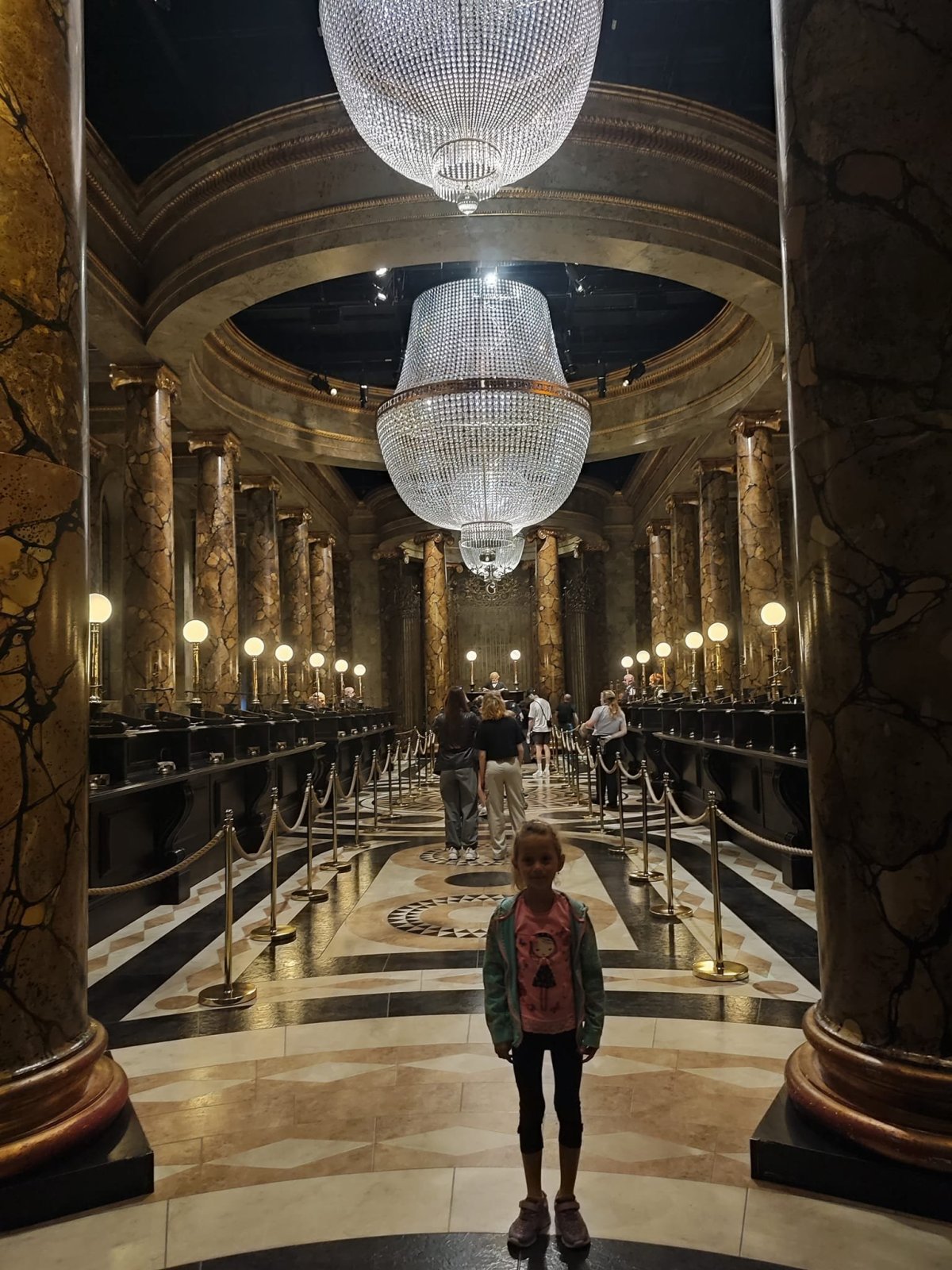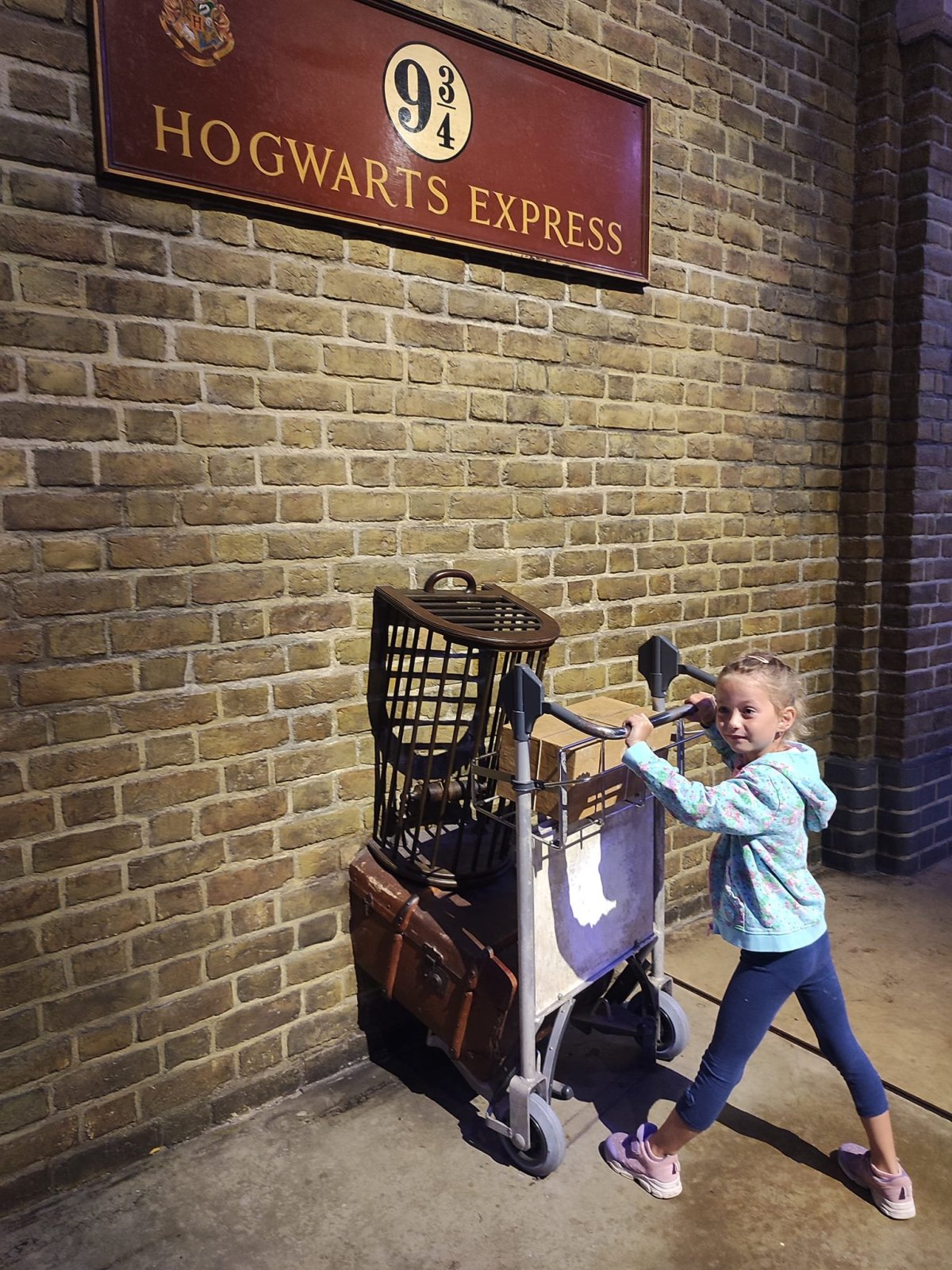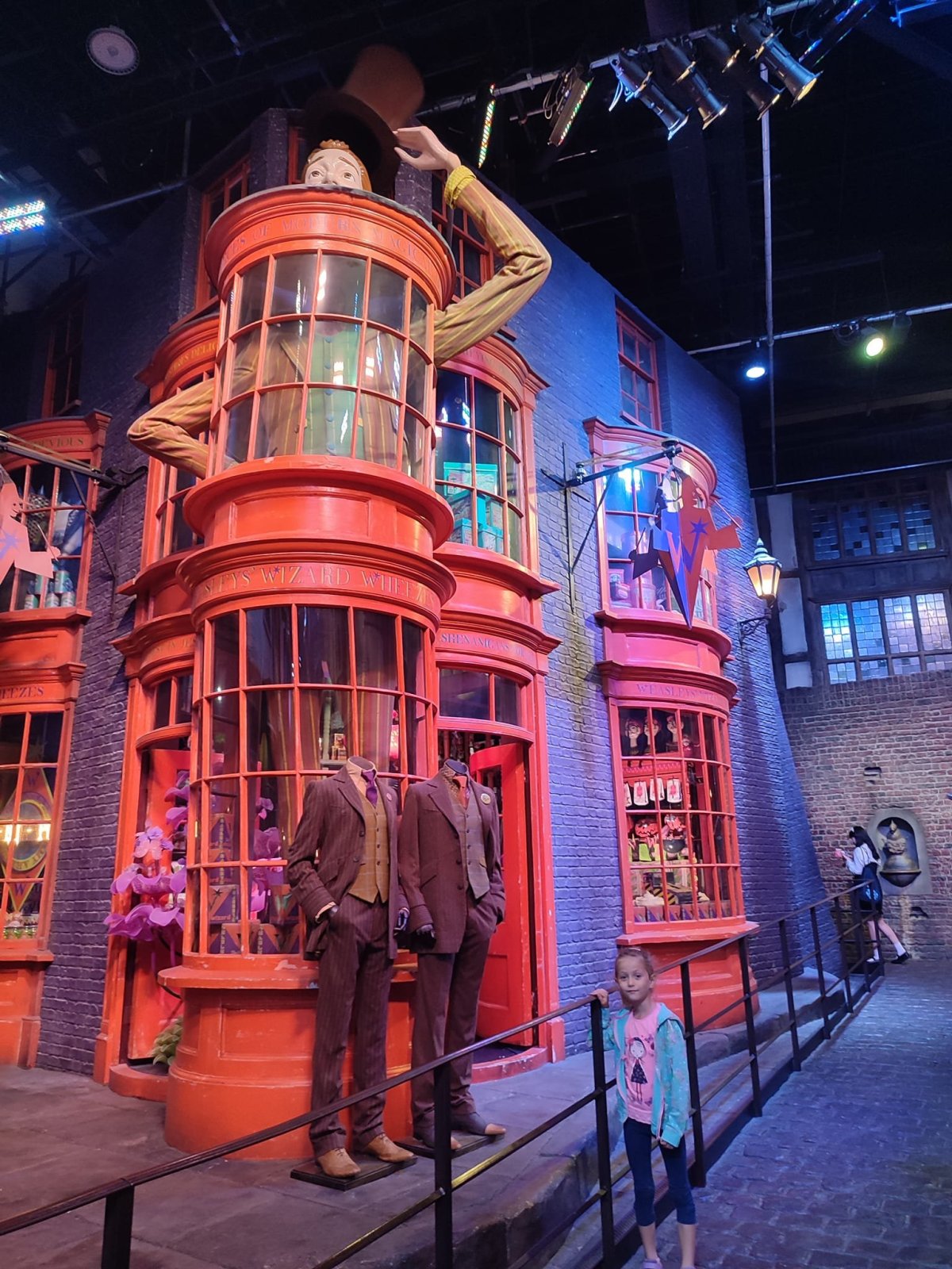 Pár hodin spánku, rychlá snídaně a vyrazili jsme na nádraží Watford Junction, které bylo od našeho ubytování asi 500 m a odkud odjížděl pravidelně kyvadlový autobus přímo do Studií. Natáčecí studia byla opravdu neskutečná. Byl to úžasný zážitek a pokud máte Harryho Pottera rádi, rozhodně byste je neměli vynechat. Doporučuji koupit lístek hned na ranní vstup, protože tady můžete bez problému strávit celý den. Pozor, lístky se kupují dopředu online. V době, kdy jsem kupovala já už byly některé časy vyprodané a na výběr bylo buď 9 ráno nebo 2 odpoledne. Prohlídka začíná představením v kině, kdy se na konci vytáhne plátno a za ním je vstup do hlavního sálu Bradavic. Pak se postupně prochází různé místnosti, krom hlavního sálu se podíváte do Gringotovy banky a to jak do té pěkné a nablýskané, tak pak i do té, kterou při útěku zničil drak hlídající poklad, projdete se zapovězeným lesem, dostanete se na nástupiště 9 a 3/4, navštívíte dům Dursleyových v Zobí ulici, navštívíte skleník profesorky Prýtové, kde si můžete vytáhnout mandragoru, projdete se Příčnou ulicí a mnoho a mnoho dalšího. V rámci prohlídky pak probíhají další aktivity. Na začátku jsme dostali Pobertův plánek a úkolem bylo najít prašivku. Plánek jsme v různých místech přikládali a objevující stopy nám ukazovali šifru, díky které jsme ji nakonec našli. Další hrou bylo, že v každé místnosti bylo schováno několik zlatonek, které jsme měli najít. Krom toho jste si mohli vyzkoušet, zda vás na povel "HOP" poslechne koště a vyskočí vám do ruky, v kabinetu profesora Lupina jsme zase pouštěli bubáka ven ze skříně. Pak zde byly možnosti fotek před zeleným plátnem, ty byly ale za poplatek. Jinak veškeré ostatní focení je ve studiu zdarma. Nám už se nechtělo moc utrácet, tak jsem nechali děti vyfotit při letu na koštěti, ale vím, že byla možnost fotek i ve vlaku do Bradavic a na dalších jiných místech. Nakonec jsme ochutnali máslový ležák a pak se zasekli v obchodě se suvenýry. Byl to opravdu velký zážitek a pokud vás tohle aspoň trochu baví, určitě se jeďte podívat. Za ty peníze to opravdu stojí.