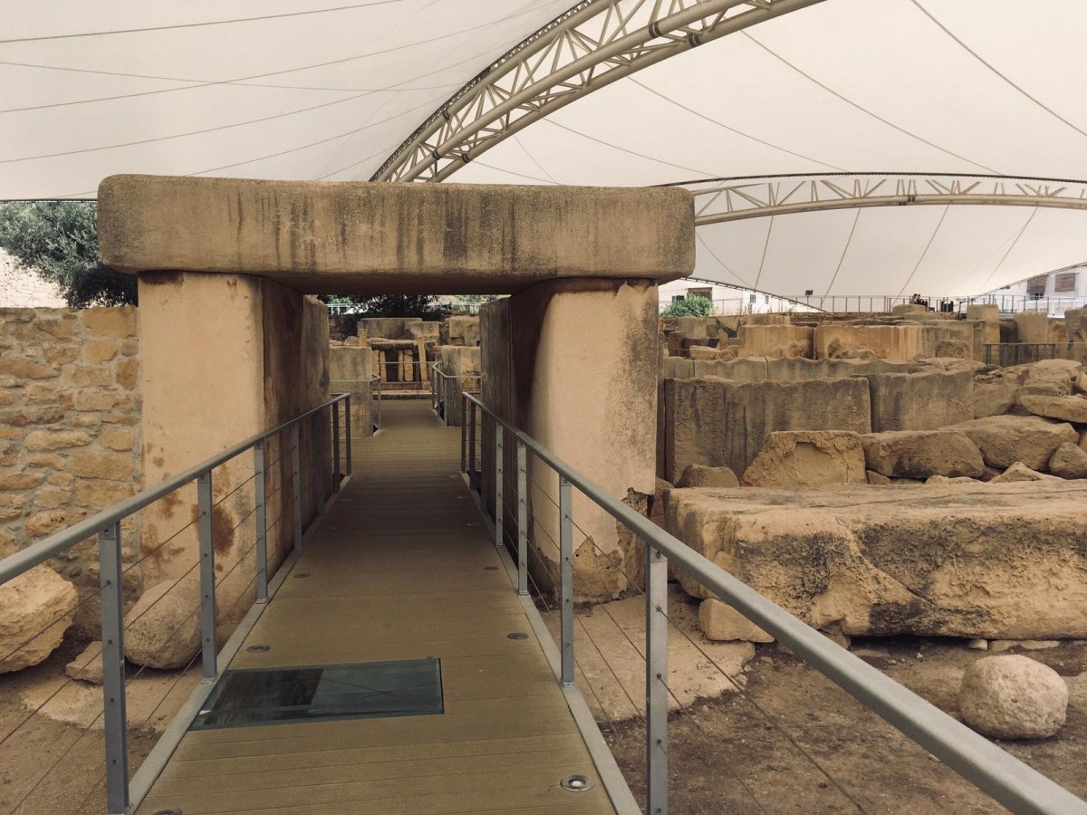Pokračovali jsme do městečka Tarxien. Vynechali jsme pohřební komplex Hypogeum, jelikož vstupné bylo v takové výši, že jsme seznali, že až tak moc nás to netáhne. Místo toho jsme zamířili do skupiny čtyř prehistorických chrámů s krásně zachovalými rytinami - Tarxien Temples.