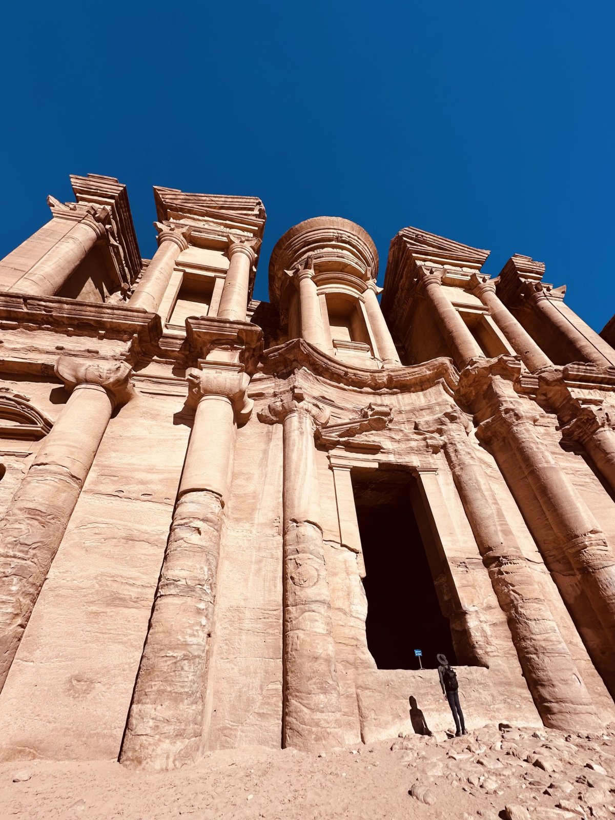 Přiznám se, první jsem měla v plánu projít Petru takzvaným Back Door trekem, ale cesta se nakonec vyvinula úplně jinak. To mám za to, že chci podvádět. Co čert nechce, i v listopadu je poměrně horko. Bylo mi po určitém čase chůze opravdu divné, že stále a stále stoupám do schodů, stehna v jednom ohni, potem zbrocená. Nakonec mi došlo, že jsem se ocitla na trase, která mě dovedla nahoru k Monastery (Ad Deir), přes téměř 800 schodů.