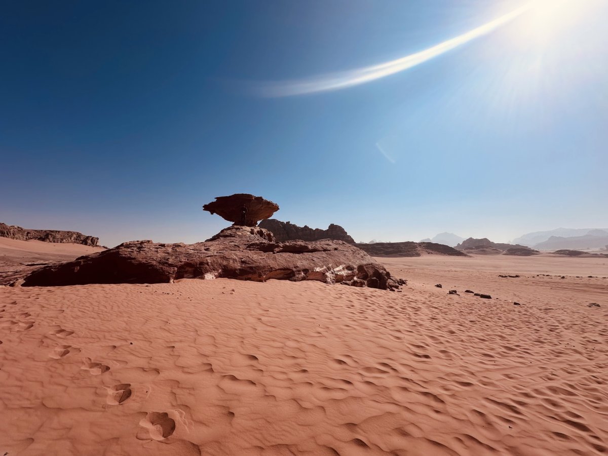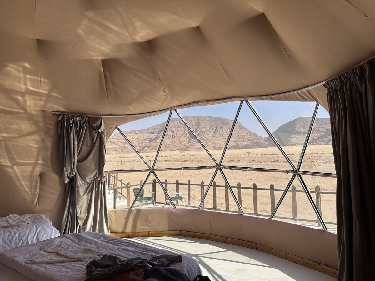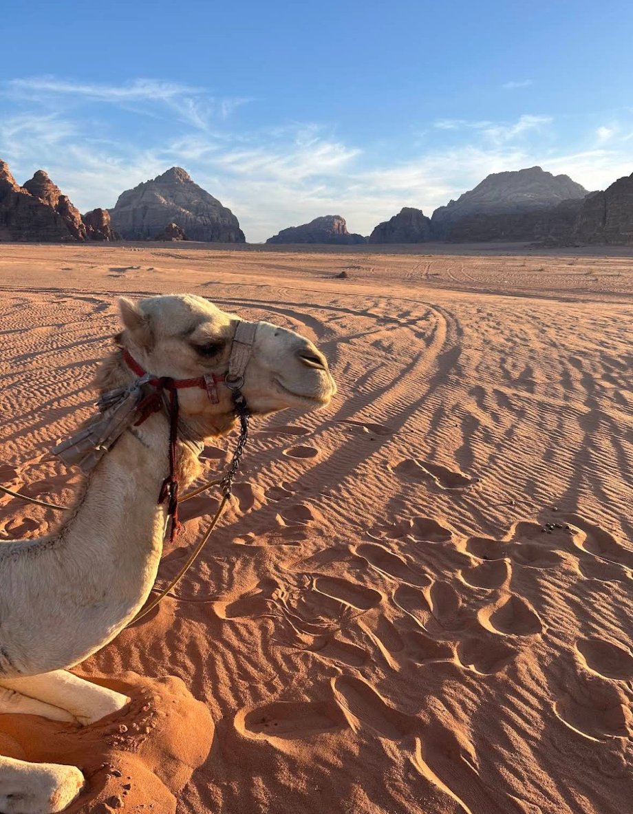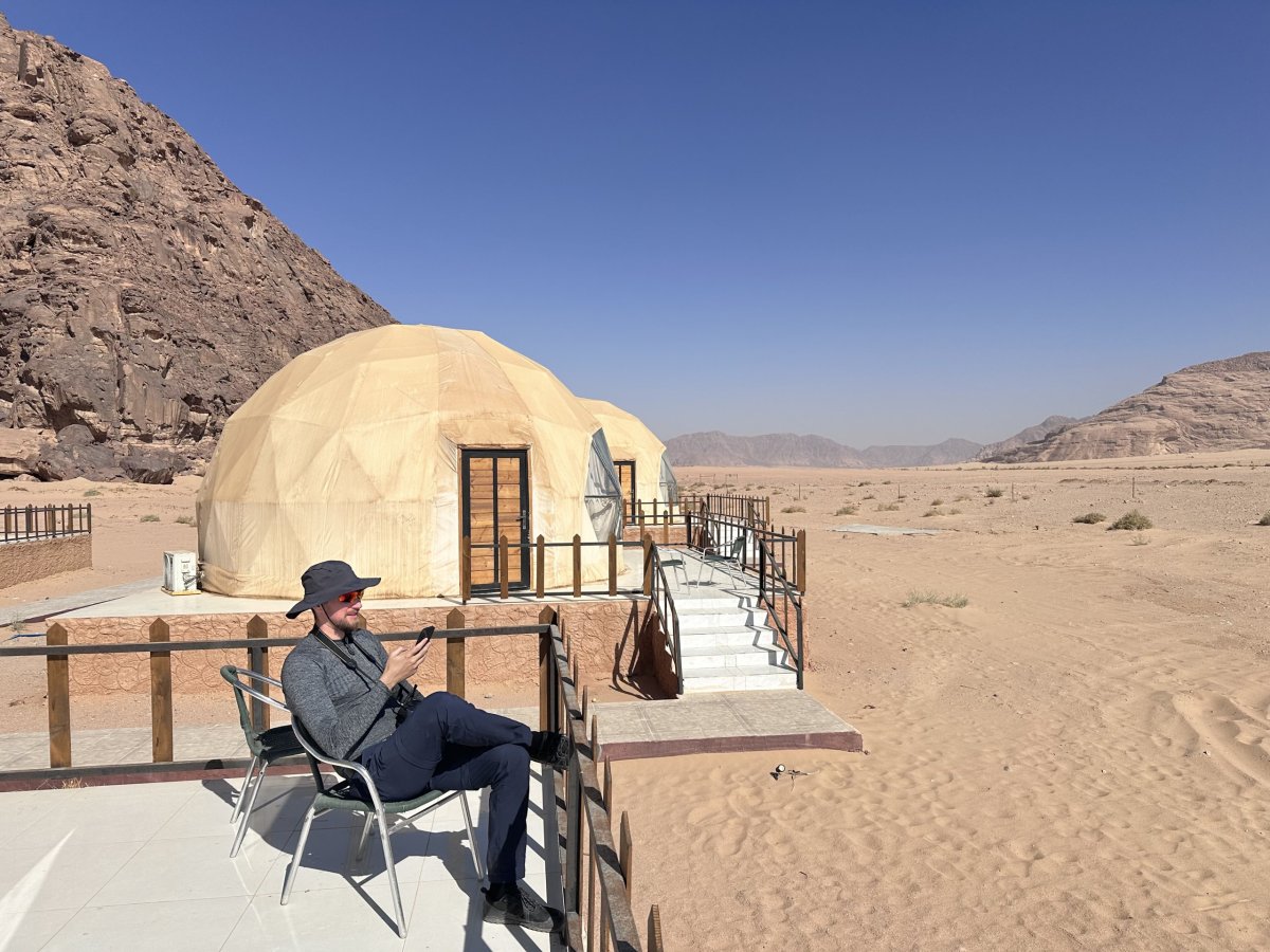 Z Petry jsme se přesunuli autem do Wadi Rum, červené pouště, která vypadá jako z jiné planety. Doslova Mars. Spali jsme v glampingu uprostřed skal, a večer se nad námi otevřela obloha posetá miliony hvězd.
