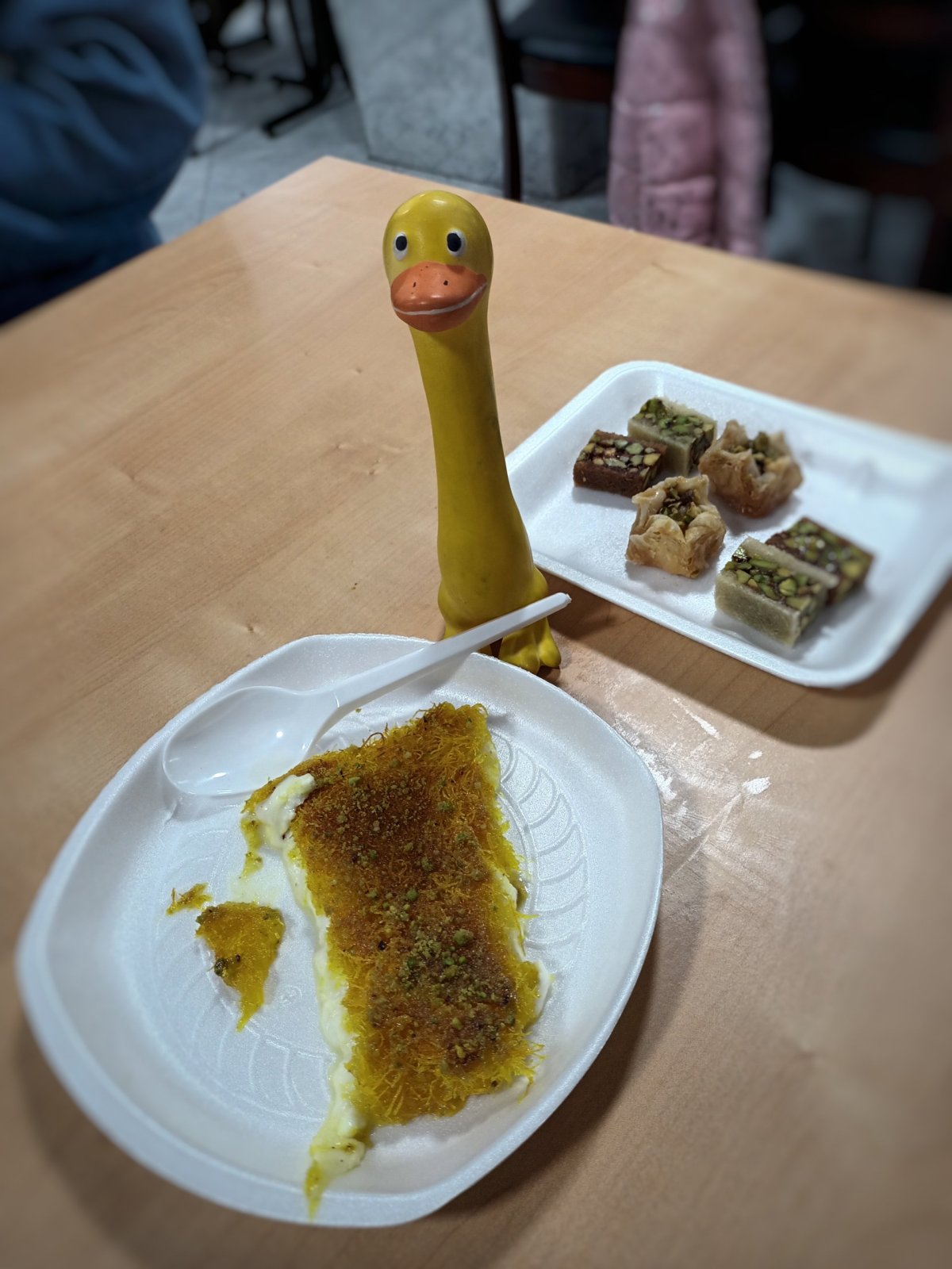 Po vydatné večeři v podniku AlQuds, který nám místní doporučili, jsme si obešli nejrušnější ulici ve městě, prohlídli obchůdky s kořením, sladkýma dobrotama a se suvenýry. Zejména sýrové "kunafeh" nám obrovsky chutnalo a opravdu se vyplatí vystát si na něj dloouhatánskou frontu v podniku Habibah! 😜 Pro novoroční přípitek jsme zvolili čerstvou šťávu z cukrové třtiny a vyrazili na střešní terasu našeho hotelu v centru čekat, jak se slaví příchod nového roku v Ammánu 🥂