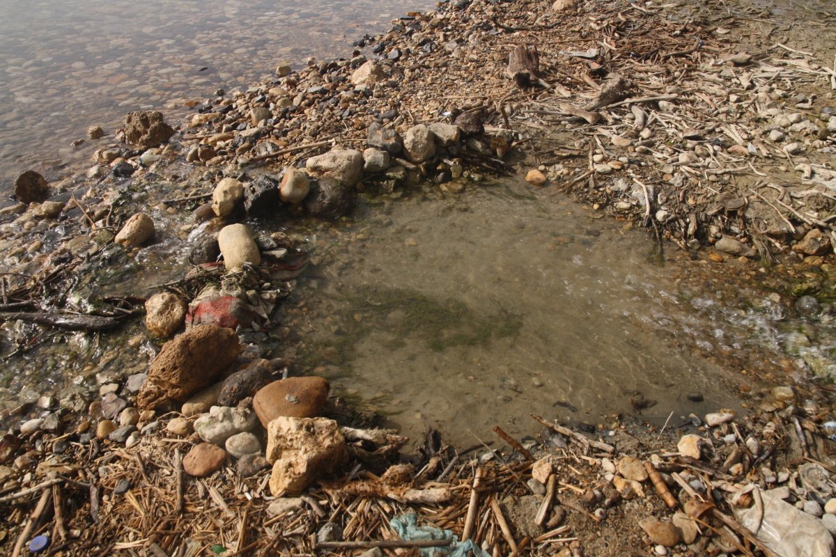 Osvěženi a posilněni vyrážíme směrem na sever k Mrtvému moři. Silnice 65 vedoucí podél hranice s Izraelem je kvalitní, prázdná a co je nejlepší - je na ní pramálo retardérů. Naším konečným cílem je 300 km vzdálená Madaba, ale po cestě máme v plánu ještě pár důležitých zastávek. Tou první je Wadi Numeira, údajně turisty relativně neobjevená skalní soutěska. Parkujeme pár metrů u silnice skryti mezi stromy u jakéhosi vodního rezervoáru a proti proudu říčky míříme ke kaňonu. Na přímém slunci je dnes téměř nesnesitelné vedro, rozhodně hůř než včera v poušti. Vstupujeme do kaňonu a hned za první zatáčkou potkáváme postaršího Jordánce rozvaleného v jezírku. Nevím, kdo z nás je ze setkání více překvapený. Jdeme dál a další lidi už nepotkáváme, ale soutěska je bohužel plná odpadků. Optimisticky si říkáme, že to tak bude určitě jen na začátku, ale po půl hodině chůze (nejspíš naplaveného) bordelu neubývá a my se zklamaní otáčíme. Kdyby se člověk pořád nemusel dívat kam šlape, bylo by to krásné místo, ale bohužel…