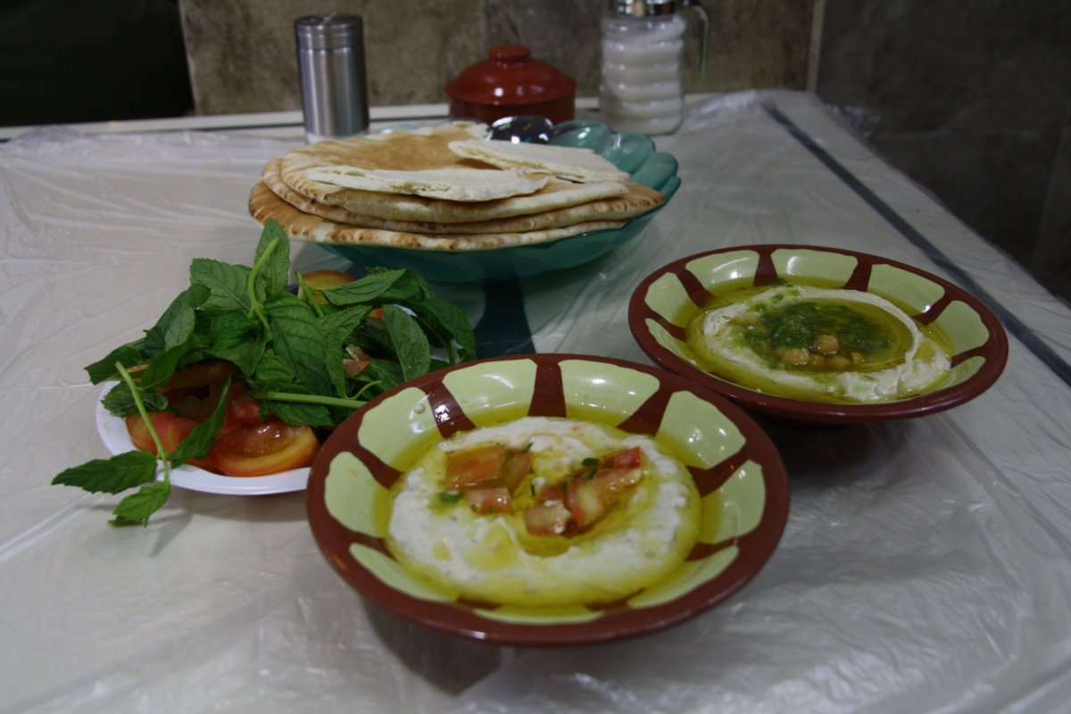 Za poplatek parkujeme v postranní uličce nedaleko od Amman Boutique Hotel. V hotelu necháváme batůžky a v pár kroků vzdálené Hashem Restaurant si dáváme první tradiční večeři. Hummus, baba ganoush, falafel, zeleninu a placky nám servíruje žertující číšník původem z Egypta. I s pitím nás to stojí 4,5 JOD.