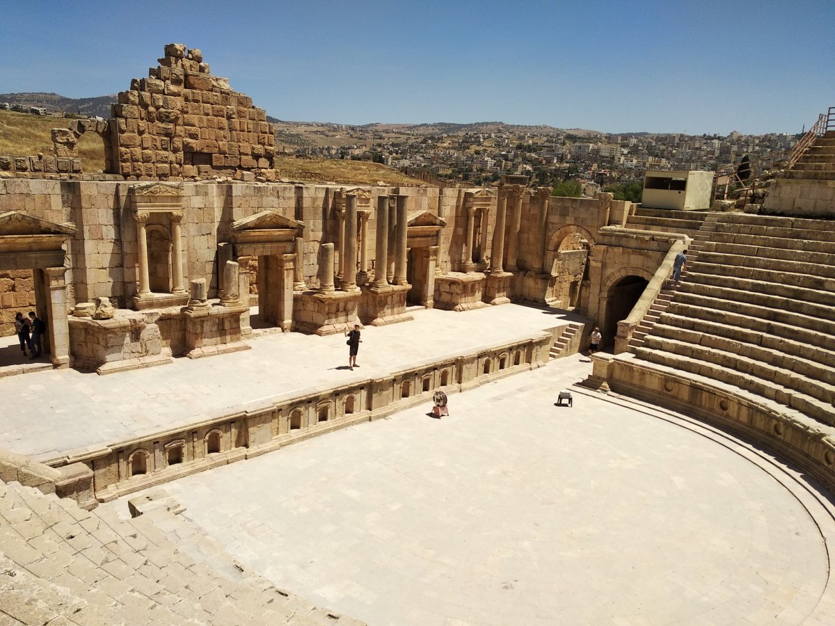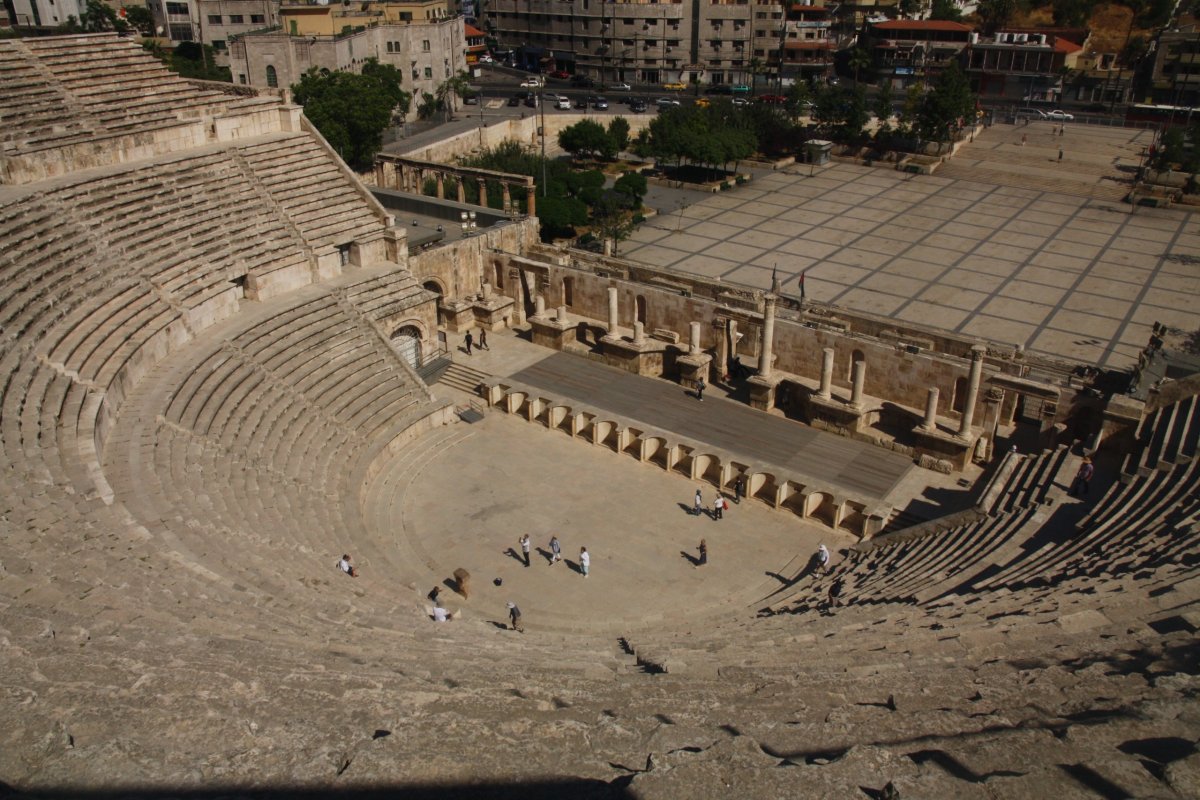 Dnes nás čeká 300 km přesun na jih do Wadi Musa. Loučíme se s prvním ubytkem a ještě před odjezdem se stavujeme ve směnárně a v římském divadle (Jordan Pass). Bonusem návštěvy je přilehlé muzeum s kolekcí historických oblečků a brnění.