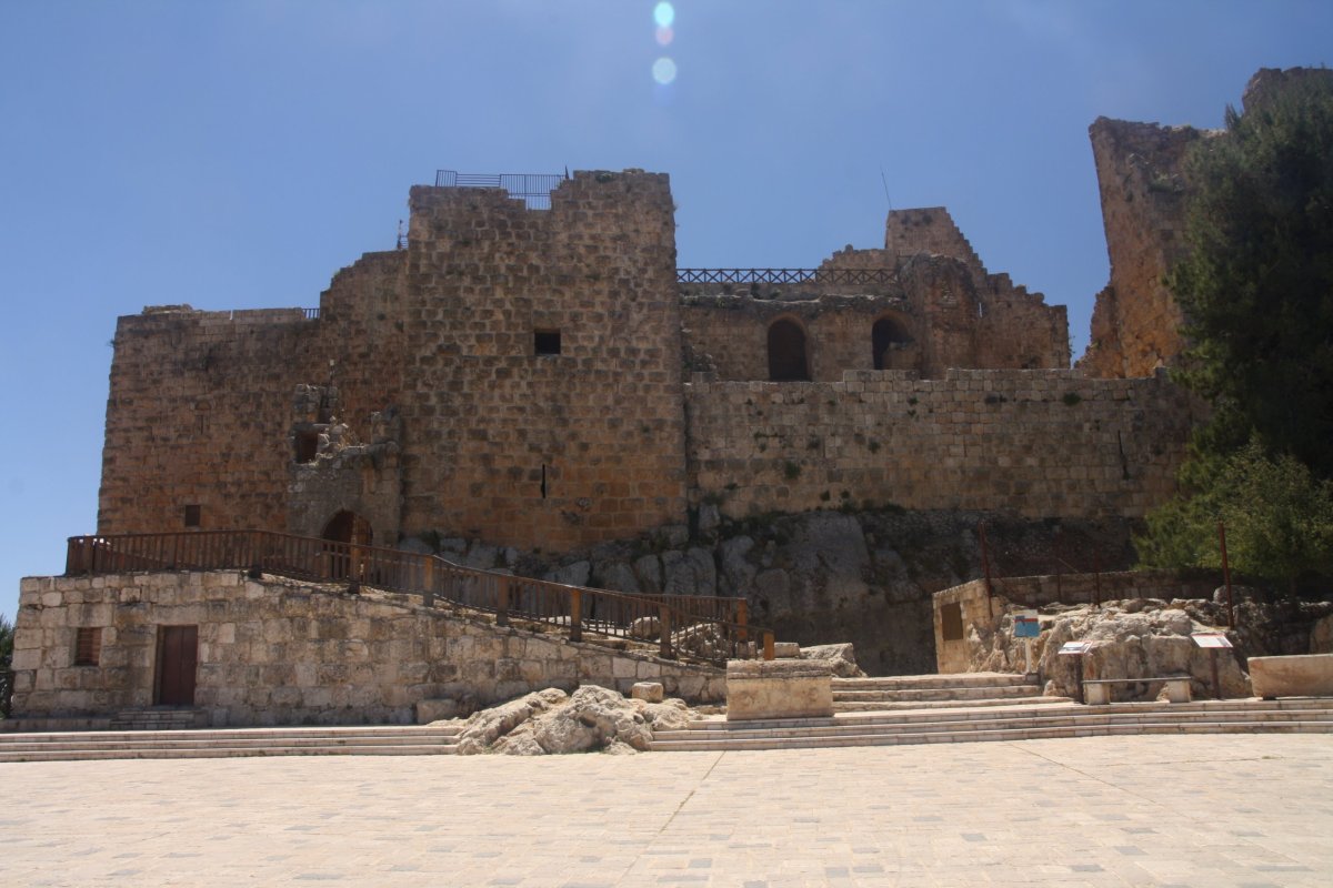 Naším dalším cílem je 30 minut vzdálené městečko Ajloun (Jordan Pass), u kterého se na osamoceném kopci tyčí hrad z 12. století. Vybudovali ho muži kurdského vojevůdce Saladina k obraně před křížovými výpravami. A nemohli ho umístit lépe, protože hradby poskytují panoramatický výhled do širokého okolí. Parkujeme skoro až před hradem, Jordánec v budce nám skenuje Jordan Passy a my vyrážíme na průzkum. Chodby a místnosti jsou dramaticky osvětleny, ale nečekejte tu na zdech meče, obrazy a kouzelná zrcadla :-) Za jediné “rekvizity” tu slouží dělové koule různých tvarů a velikostí. Na střeše si vychutnáváme výhled do okolních nehostinných údolí. Také tu potkáváme turistku s očividně svérázným výkladem místního dress codu.