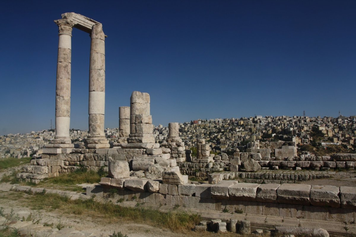 Vracíme se do Ammánu a stavujeme se ještě v Citadele (Jordan Pass), která už by oficiálně měla být zavřená, ale opak je pravdou. U vstupu jsme zrovna v čase odpolední modlitby, takže jsme svědky mírně bizarní scény - čekáme u okénka až pokladní dokončí svůj rituál. Návrší uprostřed města bylo obydlený už v prehistorických dobách a plné lidí je i dnes. V Citadele je k vidění Herkulův chrám, resp. poslední dva zbývající sloupy a dva kusy obří sochy. Prsty jsme poznali hned, ale druhý kousek, který prý tvořil loket, nám připomínal spíš něco jiného (posuďte sami). Největší devizou je každopádně výhled na staré centrum Ammánu. Za vidění určitě stojí malé archeologické muzeum hned naproti troskám chrámu. Procházíme ještě byzantskou bazilikou s velikou kopulí a skrze ruiny se vracíme k východu.