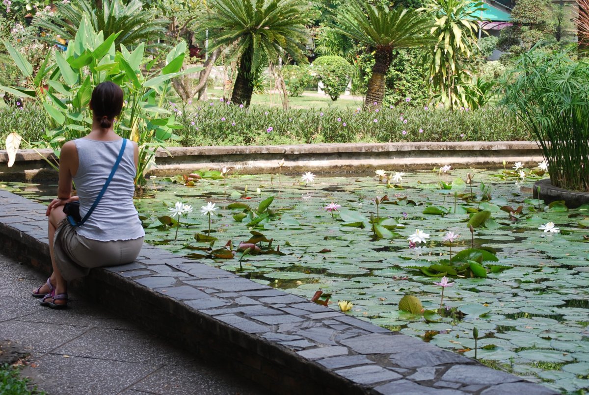 Předpověď počasí je vcelku na pytel. Má poprchávat, dnes celý den a zítra má být ještě hůř. Po snídani si bereme motorku a jedem se podívat na výletní překvapení – do botanické zahrady. Krásné místo s potokem, jezírkem, malým vodopádem a mnoha druhy bambusu. Pak jedeme zpět do města, na vlakové nádraží, chceme sehnat lístky na vlak do města Hué. Na nádraží je spousta lidí, blíží se největší vietnamský svátek TET, kdy Vietnamci cestují domů za rodinami. Vezmeme si lístek s pořadovým číslem a čekáme, až nás zavolají k jednomu z 5ti okének. Moc jim to nejde, čekáme skoro půl hodiny. Pak nás paní zavolá a jdeme domluvit, které lístky bychom chtěli, našli jsme si to na samoobslužném terminálu v hale. Chceme lístky na vlak zítra dopoledne, ale ten je plný, paní nám nabízí vlak ve tři hodiny odpoledne, který jede 4 hodiny. Moc to nechápeme, protože vzdálenost do Hué z Da nangu je asi 100 km. Ale potřebujeme se tam dostat, tak bereme lístky na vlak ve tři a zpáteční lístky na dopolední vlak v pátek. Ten jede jenom 2,5 hodiny. Celkem stály lístky 400 000 VND, zkusíme ještě zítra sehnat autobus dopoledne, abychom nemuseli čekat až do odpoledne a necháme když tak lístky na vlak propadnout, přeci jenom je to 90 korun za jednoho. Z vlakového nádraží jedeme do vojenského muzea. Je zataženo, občas spadne pár kapek. Za 2x60 000 VND vstupného si můžeme prohlédnout venkovní expozici, kde je vojenská technika, většinou ukořistěná Američanům, nebo jimi zanechaná po skončení války. Takže tu mají „Rambo“ vrtulník, stíhačky, tanky, houfnice a děla, dokonce i čluny. Vnitřní expozice je trochu míň zajímavá, spousta fotek, bitevních plánů a celá historie Vietnamu a jeho válečných konfliktů – skoro pořád s někým válčili. Po prohlídce jedeme do muzea Chamského sochařství. Tam je docela dost turistů, ale je to tam hezké, sochy, reliéfy a obchody se suvenýry. Když si to vše prohlédneme, jedeme zpět do hotelu, kde si trochu odpočineme. Po cestě ještě najdeme zastávku autobusu, který by měl v rámci příměstské dopravy jezdit do města Hoi an, kam chceme jet k moři. K večeru jdeme vybrat peníze z bankomatu a na večeři si vybereme restauraci Chicken and Beer, která dostojí svému názvu a my se tam strašně přejíme, protože porce jsou obrovské. A pivo tam mají dobré. Po cestě nazpátek si koupíme víno a vodu a na pokoji ještě na netu hledáme, kde je v Da nangu autobusové nádraží, odkud jezdí autobusy do Hué. Něco jsme našli, zadali do navigace, tak uvidíme, jestli tam zítra seženeme bus. Když tak máme v záloze lístky na odpolední vlak.
