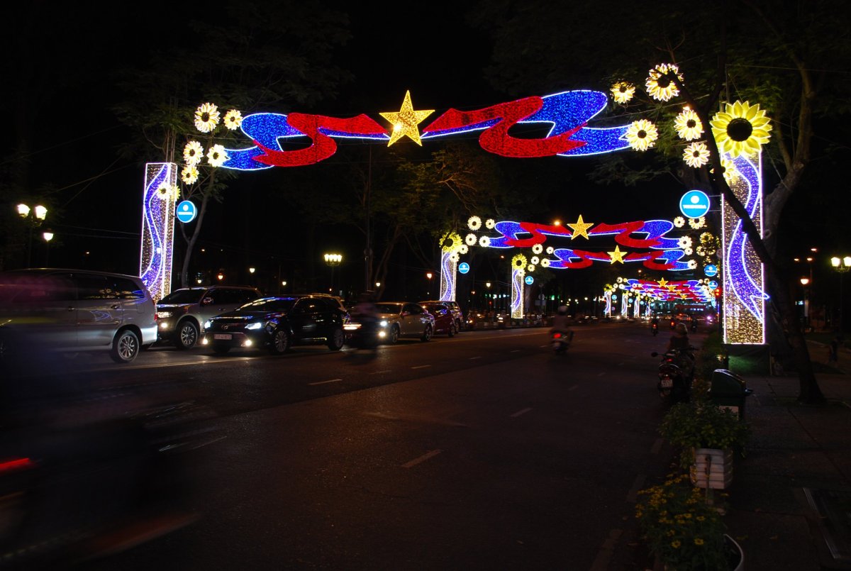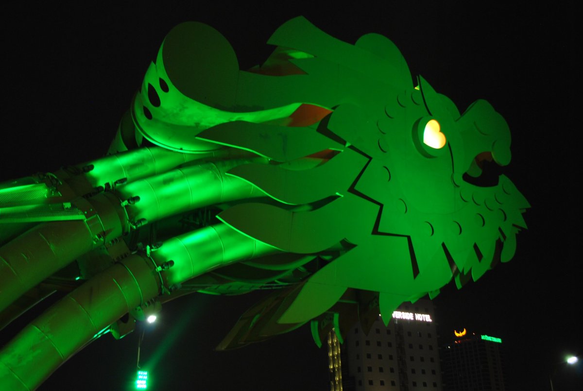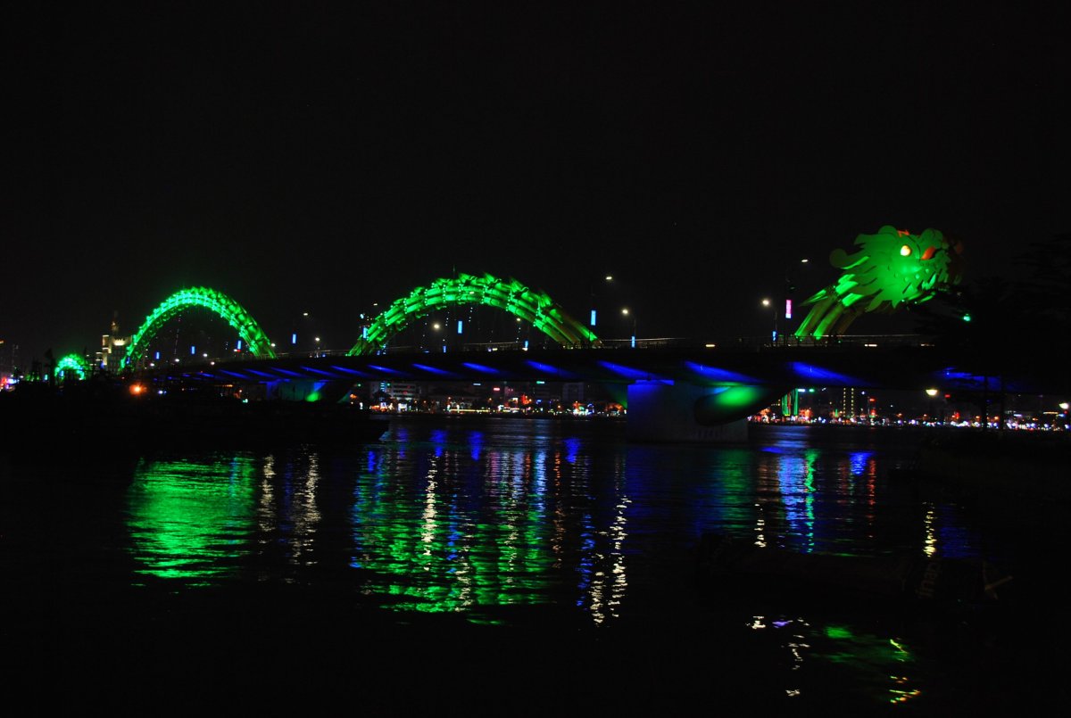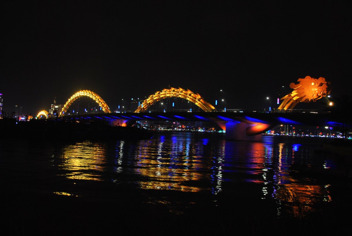 Ráno do sebe hodím akorát banán, sbalíme se a jdeme pěšky na letiště. Po cestě najdeme pěknou kavárnu, kde se nasnídáme, dáme si čaj, kafe, dortík a sendvič. Pak jdeme na letiště, na terminál domácích letů. Odbavíme si batůžky, on-line check in nám udělala už paní z cestovky, takže místa máme vybraná, jdeme tedy skrz pasovou kontrolu a čekáme v letištním burger baru na odlet. V 11:40 odlétáme směr Da nang, kde po 13 hodině přistáváme. Letíme se společností Vietnam Airlines. V Da nangu jedeme taxíkem do hotelu, kde se ubytujeme, domluvíme si na zítra půjčení motorky, trochu si orazíme a jdeme do města. Navštívíme dvě pagody a jdeme si prohlédnout Dračí most. Během procházky se setmí a začne trochu pršet, máme ale ponča, tak se nemusíme bát. Na jídlo zajdeme do korejské restaurace, kde se nám moc nepovede výběr jídla, protože oni vůbec nerozumí anglicky. Já si objednávám kimchi kuře, Štěpa něco, co podle obrázku vypadá jako těstoviny. Ale po chvíli hledání na netu zjistíme, že to asi bude polévka. Tak si k tomu ještě objednává rýži s vepřovým masem. Po chvíli přinesou moje kuře, které strašně pálí, asi litrovou misku s polévkou a nudlemi a rýži, ve které není žádné maso. Takže si to prohazujeme, já jím tu rýži, a Štěpa něco málo z toho kotle polévky, a to moje pálivé kuře, které není zas tak moc dobré. Alespoň pivo tam mají dobré. Celkově toho moc nesníme, je nám to až trapné, kolik toho necháme. Po večeři jdeme pěšky do hotelu, přes Dračí most, který je krásně nasvícený, stejně jako další mosty, lodě a celé nábřeží.
