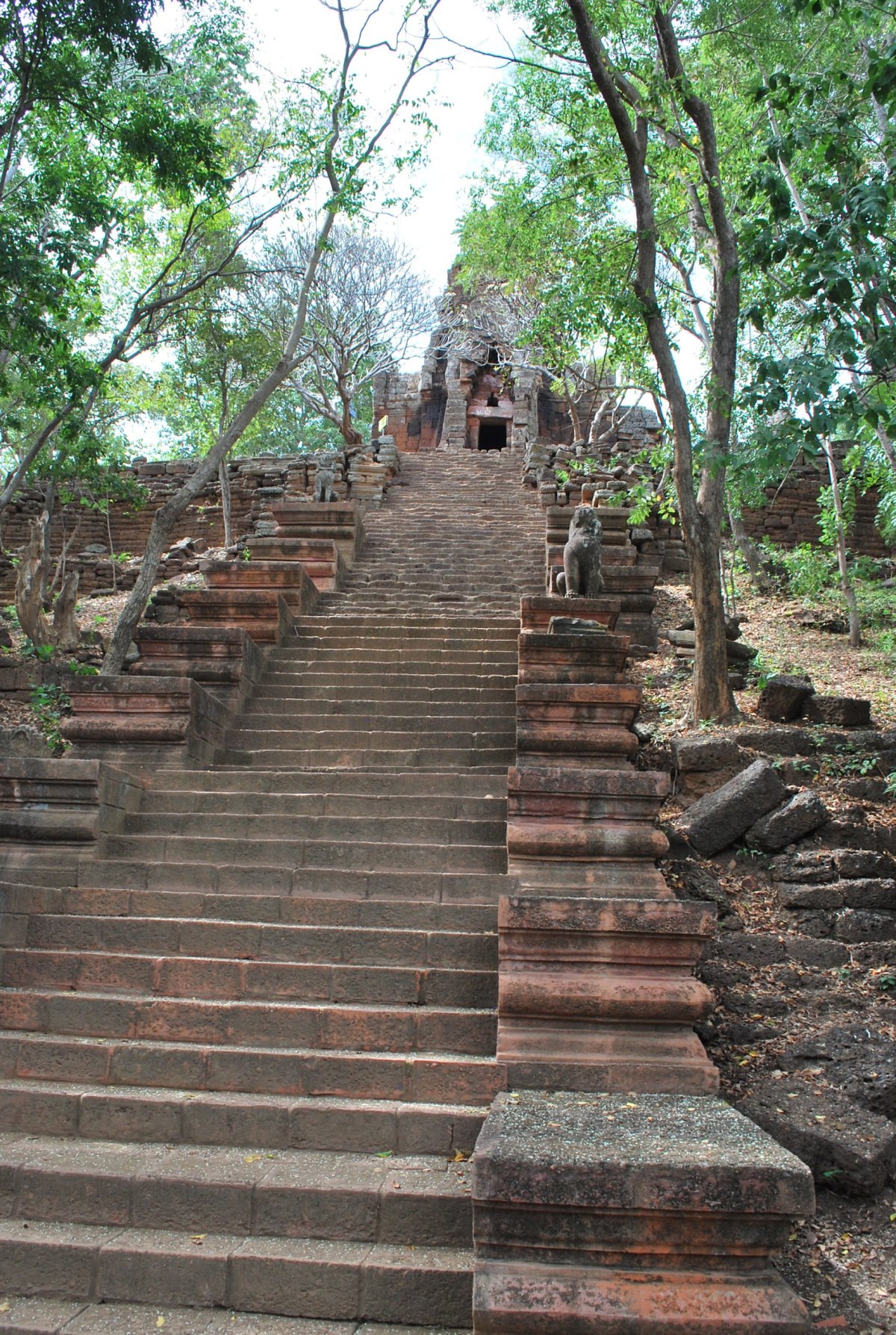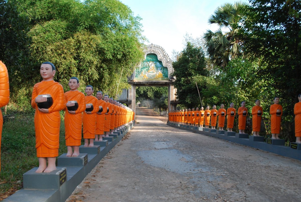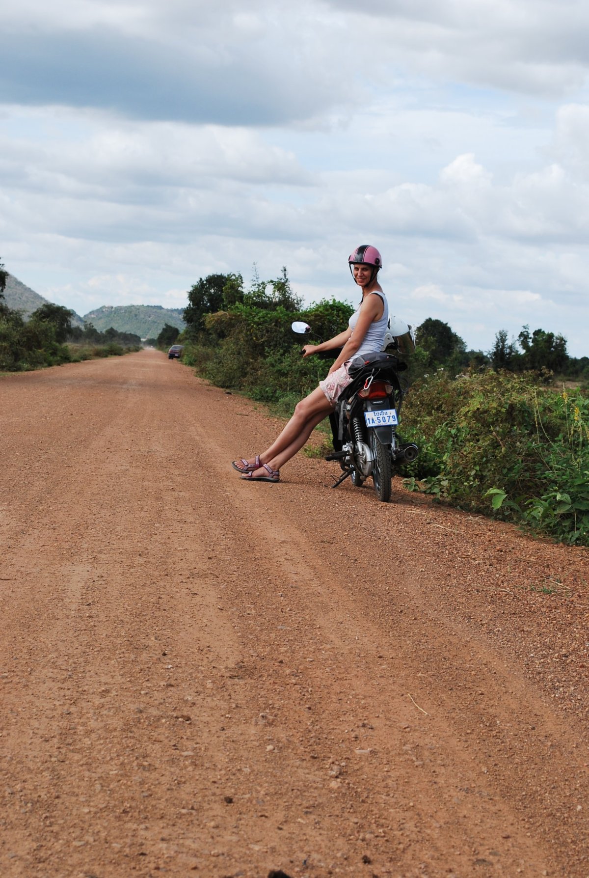 Probudíme se okolo 8 hodiny, na pokoji si dáme snídani – banány, dračí ovoce a buchtičky, protože hotel nemá restauraci a není možno se tam nasnídat. Pak se sbalíme a jdeme do města, kde máme domluvené půjčení motorky. Bereme si poslední volnou motorku, kde se řadí nohou, ale bez spojky. Štěpa nejdřív jede s prodavačem, aby mu ukázal, jak se to řídí. Pak chvíli jezdí sám okolo bloku. Jde mu to. Pak vyfasujeme helmy a jedeme na výlet. Nejdřív po městě Battambang, prohlédneme si guvernérovu vilu, staré nefunkční nádraží a pak se stavíme v kavárně – pekárně na kávu a koblihu. Já si vezmu svojí ledovou kávu do plastového kelímku s sebou na motorku – už vypadáme jako domorodci, ty taky jezdí s pytlíkama a kelímkama. Vyrazíme na západ, z města asi 17 km, kde by mělo být vinařství. Vinařství skutečně najdeme (navigace v telefonu je všemocná) a jdeme na prohlídku, která je zdarma. Pak si objednáme ochutnávku místních produktů a za 2,5 dolaru dostaneme sklenku červeného vína, brandy, červený mošt a bílý mošt se zázvorem a medem. Potom jedeme dál, směrem k horám a za 2x 2 dolary navštívíme chrám Phnom Banan. Motorku necháme za 1000 rielů na parkovišti. Po 385 schodech se vyštracháme nahoru a tam je rozpadající se chrám obklopený kaktusy a keři. Po prohlídce chrámu jdeme ještě navštívit jeskyni o které psali v průvodci. Po chvíli cesty najdeme vchod, kde sedí dva chlapíci. Jeden z nich si vezme baterku, Štěpa si bere svoji čelovku, já dostanu půjčenou a jdeme se podívat dovnitř. Jeskyně nás svou velikostí překvapí, je krásná, velká a plná netopýrů. Když vyjdeme ven, dáme průvodci 5000 rielů, ačkoliv po nás nic nechtěl. Což je asi poprvé, kdy si neřekli o peníze. Pak jsme se vrátili na parkoviště a na motorce pokračovali k přehradě Kamping Puoy, kterou za hrůzovlády Rudých khmérů vyhloubili tisíce vězňů rukama a motykami. U přehrady jsme si dali svačinu a pak jsme pokračovali na vrch Phnom Sampeau, kde jsou krom chrámů kaňony a tzv. killing caves, kde Rudí khmérové popravovali lidi a rovnou je házeli dolů, do jeskyní. Po prohlídce jsme sjeli z kopce (mimochodem to, že jsme na tom motoprdítku vyjeli až nahoru, bylo místními oceněno pochvalným mručením, Štěpa byl největší master of motorbike), a dole pod kopcem bylo místo pro pozorování netopýrů. Těsně na úpatí hory je jeskyně, z které při soumraku vylétávají netopýři. Kolem 18 té hodiny začíná z jeskyně vylétávat proud netopýrů, jsou jich tisíce a jako řeka po nebi letí za potravou. Celé představení trvá asi 25 minut. Když jsme pozorovali netopýry, tak jsem zase potkali toho tuk tukáře, co nás vezl do hotelu. Již za tmy jsme jeli zpět do Battambangu a vrátili motorku. Při vracení musel Štěpa odolávat útokům homosexuálního prodavače, který mu laškovně nechtěl vrátit pas. Po cestě pěšky zpět do hotelu (který byl asi 2,5 km od centra města) jsme se stavili na jídlo v korejské restauraci. A ačkoliv jsme si objednali nudle a rýži se zeleninou, dostali jsem oba rýži s masem, nutno ale říct, že to byla asi nejlepší rýže, co jsem jedla za celou dobu pobytu v Asii. Po večeři jsme koupili vodu, pivo a šli spát.