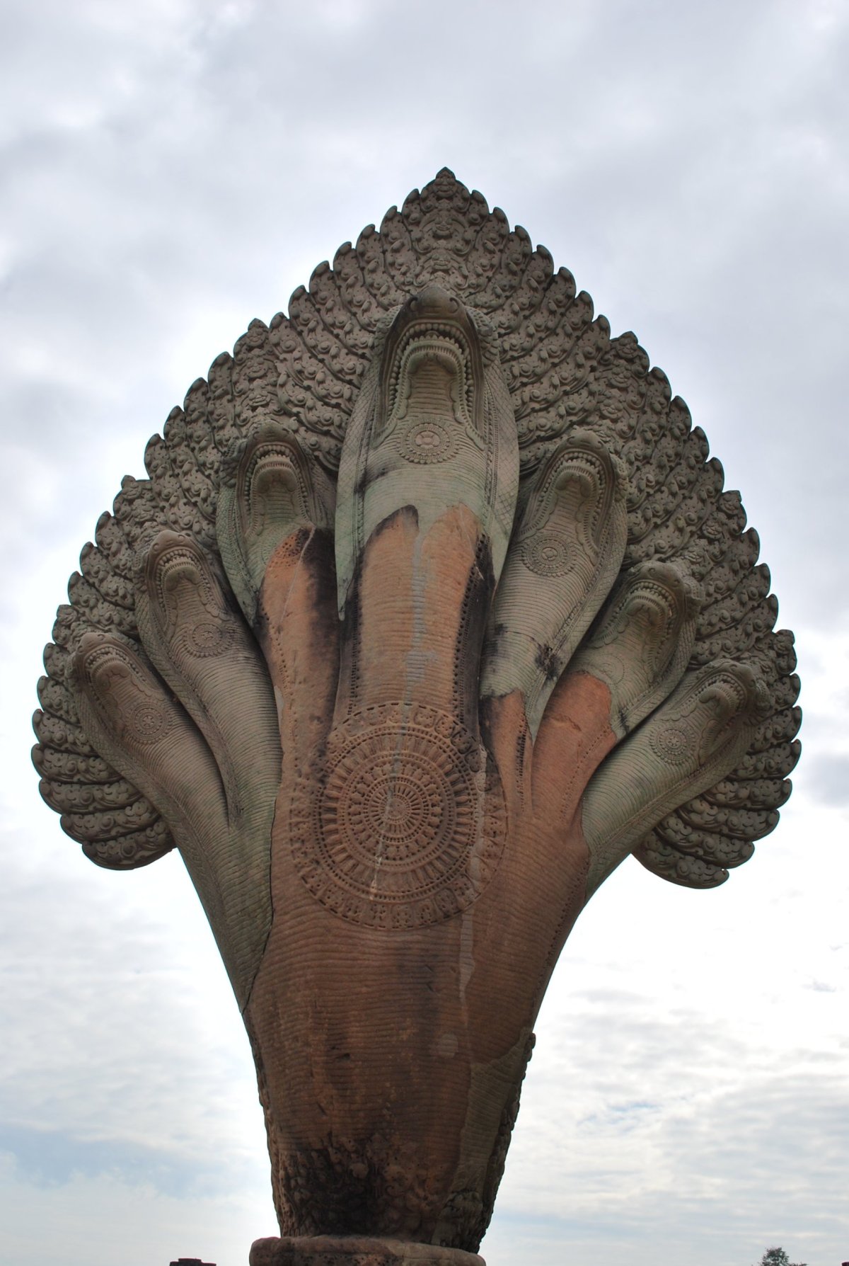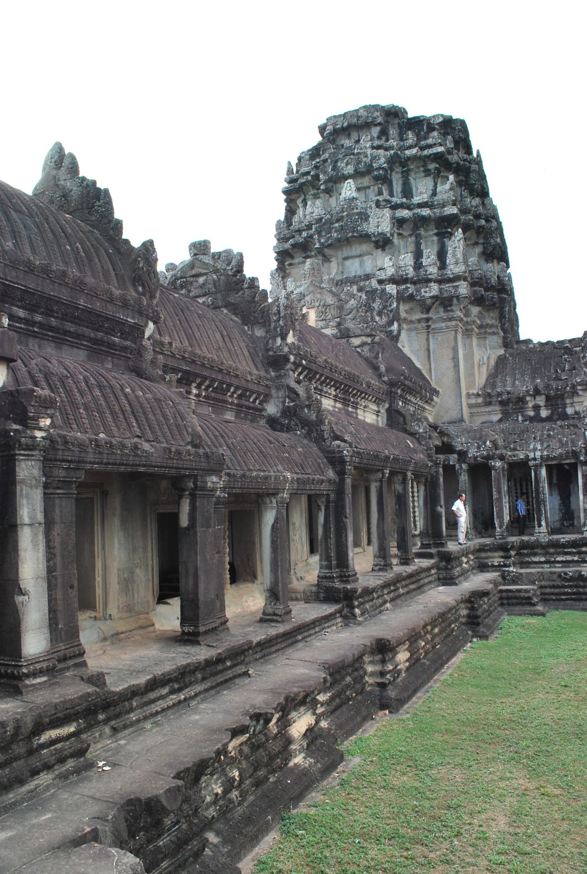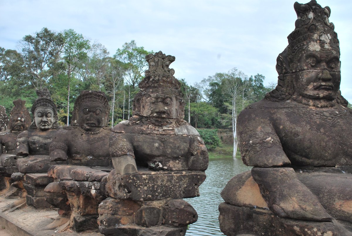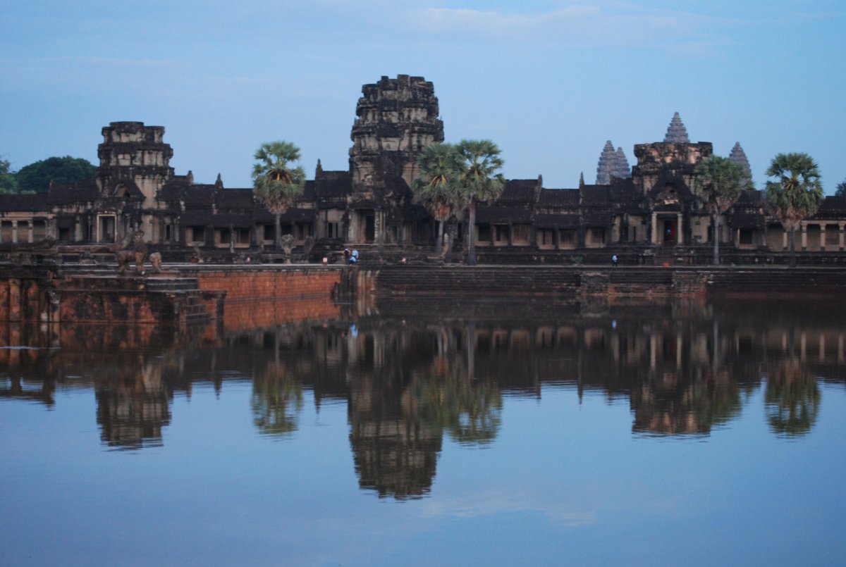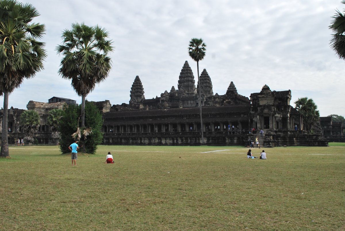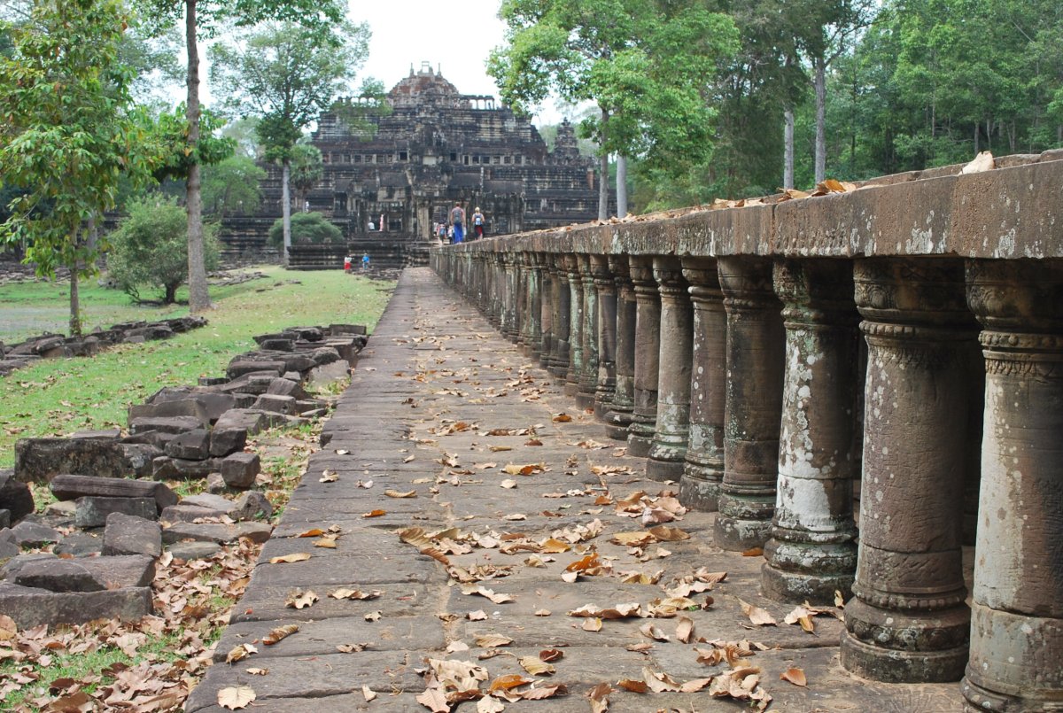 Dnes máme v plánu hlavní malý okruh po chrámech Angkoru. Na devátou hodinu máme domluveného hotelového tuk tuka. Jdeme tedy na snídani, která je vynikající. Po deváté hodině vyrážíme k Angkor watu. I takhle brzo je tu už docela hodně turistů, hlavně Číňané. Procházíme si nejznámější z kambodžských chrámů. Je tu strašné vedro, skoro žádný stín od stromů, a spousta turistů. Na nejvyšší úroveň chrámu vede úzké schodiště a stojí se tam fronta, která se vůbec nehýbe a vypadá to tak na půl dne. Takže jsme tam ani nešli. Procházíme si tedy okolní místa, chrámový komplex je samé NEJ. Je největší, nejzachovalejší, nejuctívanější a nejnavštěvovanější. Jeho siluetu uvidíte i na kambodžské vlajce, neboť je symbolem nejslavnější éry khmerské historie. Celý chrámový komplex je obehnán zdí a vodním příkopem. Rozměr takto ohraničeného pozemku je 1300 x 1500 m a vodní příkopy mají skutečně úctyhodnou šířku 190 m. Po asi 1,5 hodině vycházíme ven, kde na nás na parkovišti má čekat náš tuk tukář. Ale není zde, chvíli ho hledáme, ale nikde není. Tak jsme zavolali do hotelu a za chvíli už přijížděl, zřejmě někde spal. Dál jedeme do města Angkor Thom, které jsme předevčírem projížděli za soumraku na kole. Řidič nás dovezl ke vstupu do chrámu Bayon, který stojí v geometrickém středu města Angkor Thom. Po prohlídce Bayonu jsme pokračovali ke královskému paláci a k terasám malomocného krále. No a pak už jsme jeli do hotelu. Dali jsme si sprchu, odpočinek, šli na trh koupit ovoce, jídlo, vodu a pivo. Zítra v 10:30 odjíždíme do města Battambang.