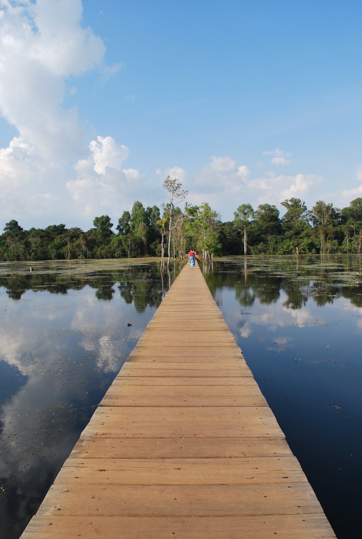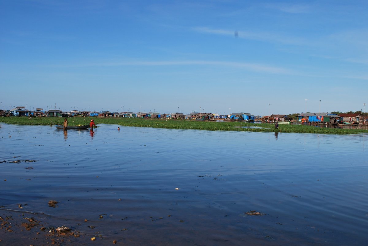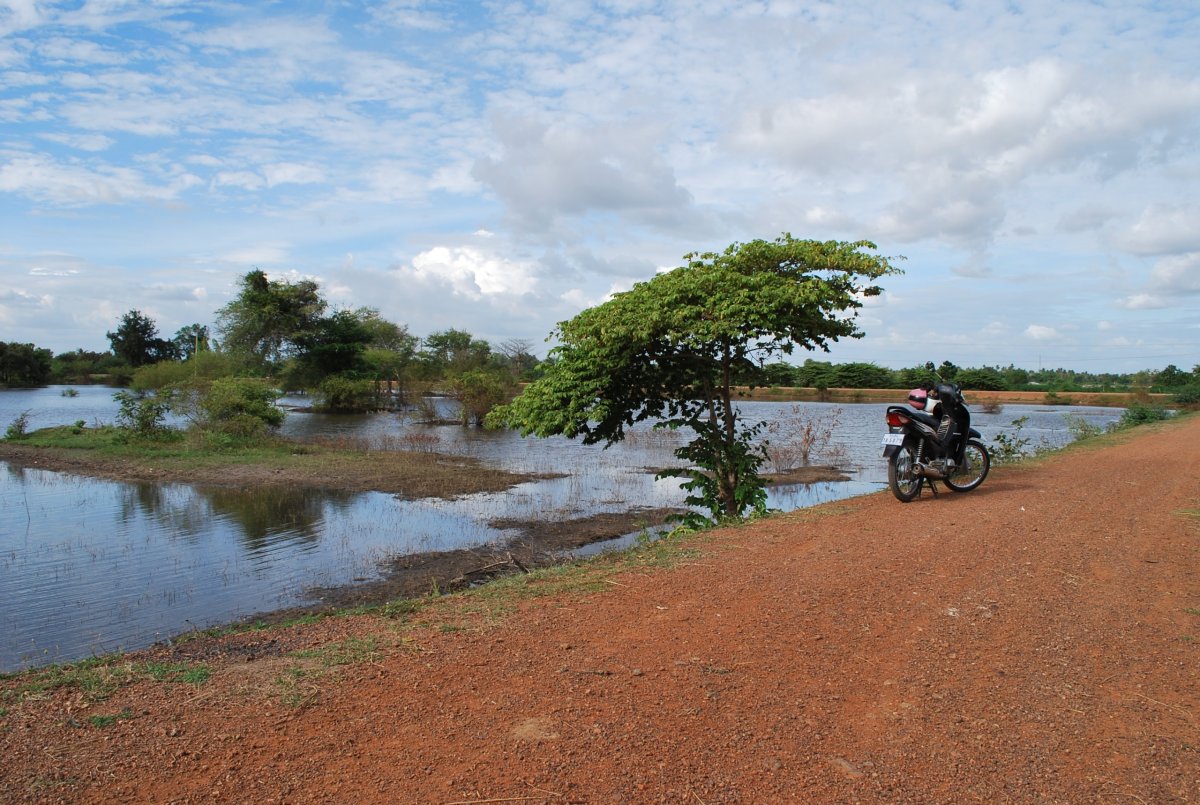 Ráno nás opět vzbudila kambodžská svatba. Asi 3 dny v různých časových úsecích se ozývá šílená hudba, vrzání na nějaké nástroje a blábolení do amplionu. Šli jsme na snídani, kdy Štěpa málem vyudil celý hotel, protože mu začaly trochu hořet tousty v toustovači, který byl nějaký divný a nešel vypnout, ani zregulovat. Po snídani jsme se sbalili a šli naproti pro zamluvenou motorku. Byl tam ale někdo jiný než včera a ten říkal, že už žádnou motorku nemají. Chvíli jsme tam debatovali, pak někam volal, a nakonec přijela ta paní ze včerejška na motorce, dala nám dvě helmy a řekla že se máme vrátit do 18 ti hodin (záhy jsme zjistili proč), ale ukecali jsme jí alespoň na 19 hodinu. Motorka byla docela verk, oproti té, co jsme měli půjčenou v Battambagu, ale i tak to Štěpa zvládl, musel se sice rozjíždět na trojku, protože to prostě jinak nešlo, ale jeli jsme. Vyrazili jsme směrem k horám, kde by měl být prales. Jeli jsme asi 30 km (motorce neukazoval tachometr, kilometrovník, ani stav paliva), na místo, kde měla být nějaká turistická zajímavost. Ale byla tam jenom stará cedule, s nápisem „Turistické centrum“ a o kus dále hezká řeka s peřejemi. Chtěla jsem se tam trochu projít, ale nebyly tam moc cesty a ta která tam byla se nezdála Štěpánovi jako moc bezpečná (přeci jenom je ještě velká část Kambodži zaminovaná z válečných konfliktů s Vietnamci a Thajci). Takže jsme vyrazili zpět. Na benzínce jsme koupili benzín a chtěli jsme se jet podívat na přehradu a vodopády. Pan pumpař nám říkal, že cesta k vodopádům není moc dobrá pro motorku, že je to jenom taková stezka v lese. Do mapy nám ještě k názvům měst a míst dopíše jejich khmérský přepis, kdybychom se ztratili, tak ať nás místní mohou poslat správným směrem. Nakonec se domluvíme, že k vodopádům přeci jenom nepojedeme. Jedeme tedy zpět do Pursatu, a chceme dojet až do plovoucí vesnice. Ale nějak špatně jsme odbočili a jedem jinou cestou, než když jsme jeli z města. Cesta není asfaltová, ale prašná, úplně červená hlína. Asi 7 km od města jsme píchli. Jak se později ukázalo, byl to utržený ventilek v zadní duši, takže jsme za to ani nemohli. Naštěstí, asi 500 metrů od místa nehody byla vesnice, kde byl i pan opravář. Za 4 dolary a asi 15 minut nám vymění celou duši a my můžeme pokračovat. Dojedeme do Pursatu a dáme si tam oběd. Do hospody přijde i pán s motorkou a objednává si točené pivo, které nemají, Štěpa ho tipuje na Čecha. A má pravdu. Jmenuje se Martin, přisedne si k nám a povídáme si, co tady dělá. Žije tu už asi 6 let a má lodní přepravu. Tak chvíli povídáme, už jsem se pěkně rozseděla, a šla bych se do hotelu vyvalit k bazénu. Ale vášnivý motorkář mě přemluví k dalšímu výletu, na plovoucí vesnici, což je asi 35 km na druhou stranu od města. Bolí mě už vcelku dost zadek, ta dnešní motorka není moc pohodlná. Dojedeme až k plovoucí vesnici, až úplně k vodě. Na jezeře Tonlé Sap je několik plovoucích vesnic, zejména v jeho severní části, ale tam je to hodně plné turistů. U městečka Krakor, kam jsme dojeli nepotkáme ani jednoho turistu. Nějaká paní se nás snaží nalákat na projížďku loďkou po vesnici, ale nechce se nám a ani nemáme tolik času, začíná se stmívat. A doprava po kambodžských silnicích v noci není nic moc. Uděláme tedy pár fotek, plovoucí domečky jsou krásné, bohužel okolí hyzdí kupy odpadků, hlavně plastů. Igelity a polystyren jsou po cele Kambodže, za chvíli je to tady udusí, ten nepořádek. Do Pursatu se vrátíme v 18 hodin, motorka nesvítí, proto chtěla paní, abychom se vrátili do šesti. Vracíme motorku, a usmlouváme cenu z původních 10 dolarů na 7, protože 4 dolary jsme dali za novou duši, a ještě jim tam nechali asi půl nádrže benzínu. Nevím, jestli to paní na recepci pochopila, ale prostě jsem jí dala 7 dolarů. Koupíme si pivo, vodu a nějaké jídlo a jdeme na hotel, po dnešním cestování (ujeli jsem asi 120 km) jsme docela ukodrcaní, bolí mě zadek. Zítra se chytáme do hlavního města Phnom Penh.