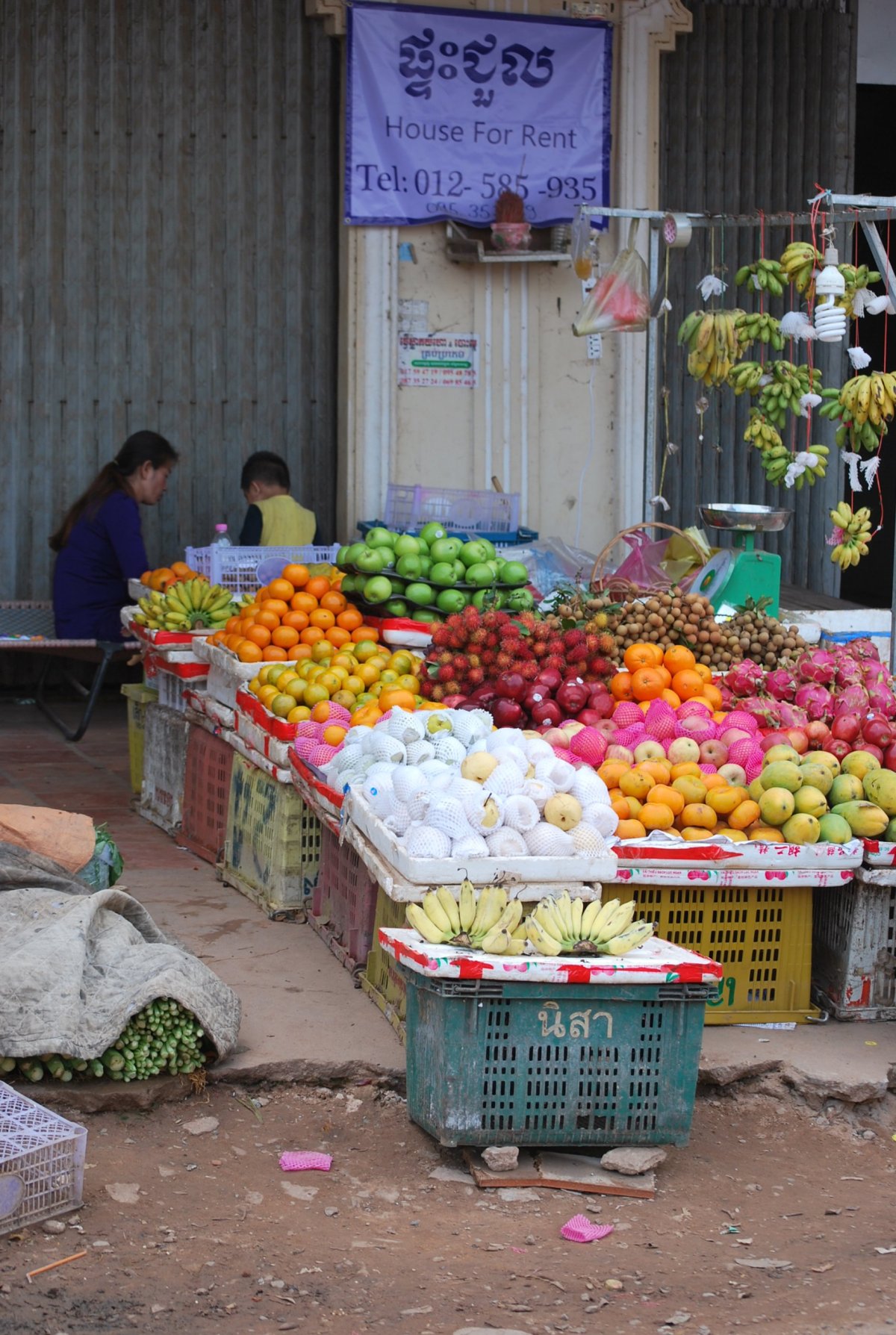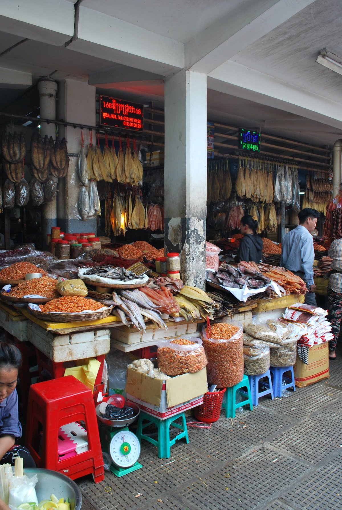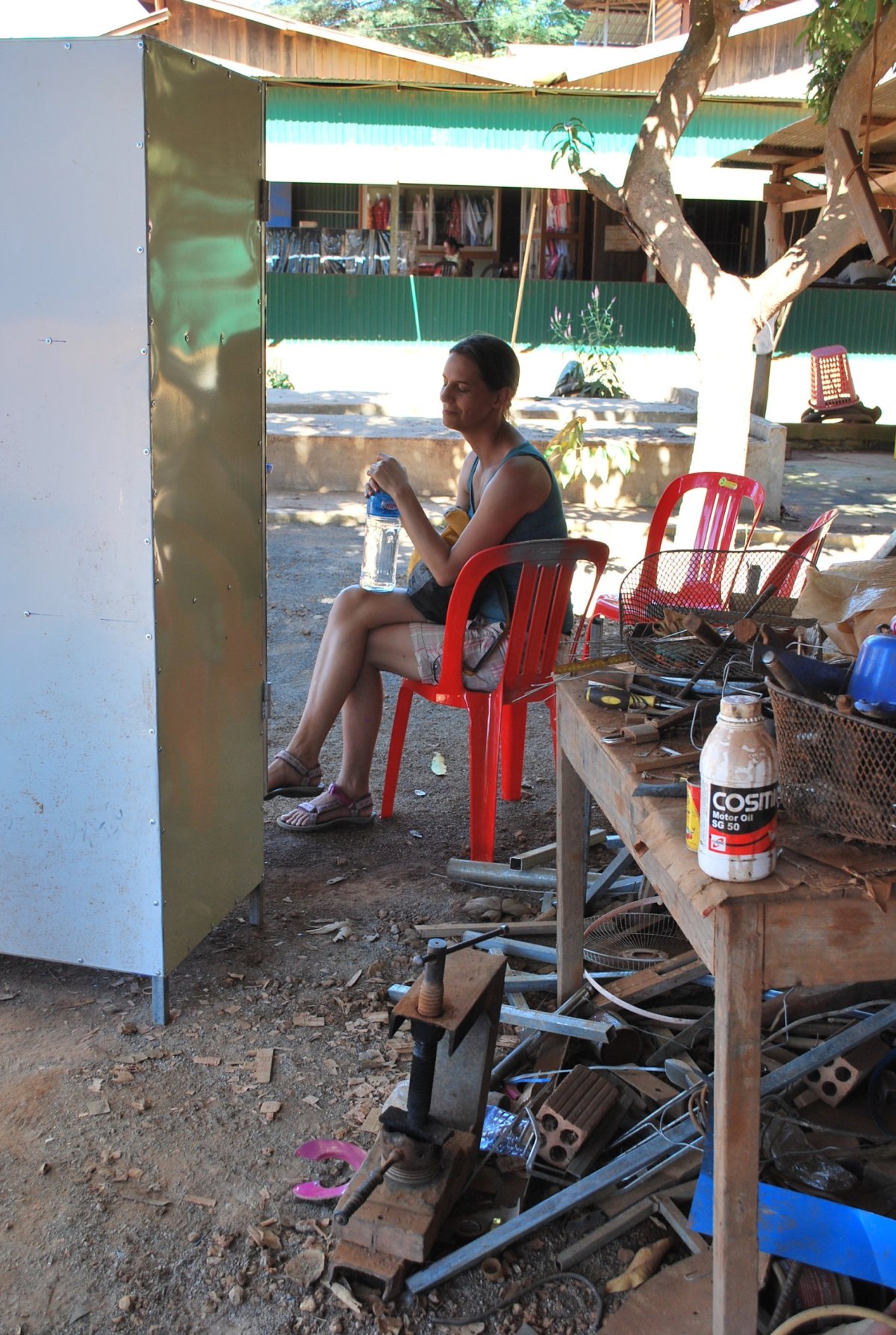 Ráno nás opět vzbudila kambodžská svatba. Asi 3 dny v různých časových úsecích se ozývá šílená hudba, vrzání na nějaké nástroje a blábolení do amplionu. Šli jsme na snídani, kdy Štěpa málem vyudil celý hotel, protože mu začaly trochu hořet tousty v toustovači, který byl nějaký divný a nešel vypnout, ani zregulovat. Po snídani jsme se sbalili a šli naproti pro zamluvenou motorku. Byl tam ale někdo jiný než včera a ten říkal, že už žádnou motorku nemají. Chvíli jsme tam debatovali, pak někam volal, a nakonec přijela ta paní ze včerejška na motorce, dala nám dvě helmy a řekla že se máme vrátit do 18 ti hodin (záhy jsme zjistili proč), ale ukecali jsme jí alespoň na 19 hodinu. Motorka byla docela verk, oproti té, co jsme měli půjčenou v Battambagu, ale i tak to Štěpa zvládl, musel se sice rozjíždět na trojku, protože to prostě jinak nešlo, ale jeli jsme. Vyrazili jsme směrem k horám, kde by měl být prales. Jeli jsme asi 30 km (motorce neukazoval tachometr, kilometrovník, ani stav paliva), na místo, kde měla být nějaká turistická zajímavost. Ale byla tam jenom stará cedule, s nápisem „Turistické centrum“ a o kus dále hezká řeka s peřejemi. Chtěla jsem se tam trochu projít, ale nebyly tam moc cesty a ta která tam byla se nezdála Štěpánovi jako moc bezpečná (přeci jenom je ještě velká část Kambodži zaminovaná z válečných konfliktů s Vietnamci a Thajci). Takže jsme vyrazili zpět. Na benzínce jsme koupili benzín a chtěli jsme se jet podívat na přehradu a vodopády. Pan pumpař nám říkal, že cesta k vodopádům není moc dobrá pro motorku, že je to jenom taková stezka v lese. Do mapy nám ještě k názvům měst a míst dopíše jejich khmérský přepis, kdybychom se ztratili, tak ať nás místní mohou poslat správným směrem. Nakonec se domluvíme, že k vodopádům přeci jenom nepojedeme. Jedeme tedy zpět do Pursatu, a chceme dojet až do plovoucí vesnice. Ale nějak špatně jsme odbočili a jedem jinou cestou, než když jsme jeli z města. Cesta není asfaltová, ale prašná, úplně červená hlína. Asi 7 km od města jsme píchli. Jak se později ukázalo, byl to utržený ventilek v zadní duši, takže jsme za to ani nemohli. Naštěstí, asi 500 metrů od místa nehody byla vesnice, kde byl i pan opravář. Za 4 dolary a asi 15 minut nám vymění celou duši a my můžeme pokračovat. Dojedeme do Pursatu a dáme si tam oběd. Do hospody přijde i pán s motorkou a objednává si točené pivo, které nemají, Štěpa ho tipuje na Čecha. A má pravdu. Jmenuje se Martin, přisedne si k nám a povídáme si, co tady dělá. Žije tu už asi 6 let a má lodní přepravu. Tak chvíli povídáme, už jsem se pěkně rozseděla, a šla bych se do hotelu vyvalit k bazénu. Ale vášnivý motorkář mě přemluví k dalšímu výletu, na plovoucí vesnici, což je asi 35 km na druhou stranu od města. Bolí mě už vcelku dost zadek, ta dnešní motorka není moc pohodlná. Dojedeme až k plovoucí vesnici, až úplně k vodě. Na jezeře Tonlé Sap je několik plovoucích vesnic, zejména v jeho severní části, ale tam je to hodně plné turistů. U městečka Krakor, kam jsme dojeli nepotkáme ani jednoho turistu. Nějaká paní se nás snaží nalákat na projížďku loďkou po vesnici, ale nechce se nám a ani nemáme tolik času, začíná se stmívat. A doprava po kambodžských silnicích v noci není nic moc. Uděláme tedy pár fotek, plovoucí domečky jsou krásné, bohužel okolí hyzdí kupy odpadků, hlavně plastů. Igelity a polystyren jsou po cele Kambodže, za chvíli je to tady udusí, ten nepořádek. Do Pursatu se vrátíme v 18 hodin, motorka nesvítí, proto chtěla paní, abychom se vrátili do šesti. Vracíme motorku, a usmlouváme cenu z původních 10 dolarů na 7, protože 4 dolary jsme dali za novou duši, a ještě jim tam nechali asi půl nádrže benzínu. Nevím, jestli to paní na recepci pochopila, ale prostě jsem jí dala 7 dolarů. Koupíme si pivo, vodu a nějaké jídlo a jdeme na hotel, po dnešním cestování (ujeli jsem asi 120 km) jsme docela ukodrcaní, bolí mě zadek. Zítra se chytáme do hlavního města Phnom Penh.