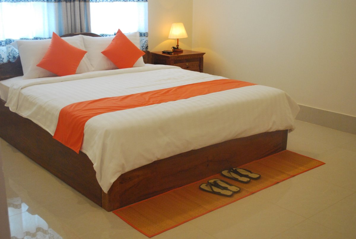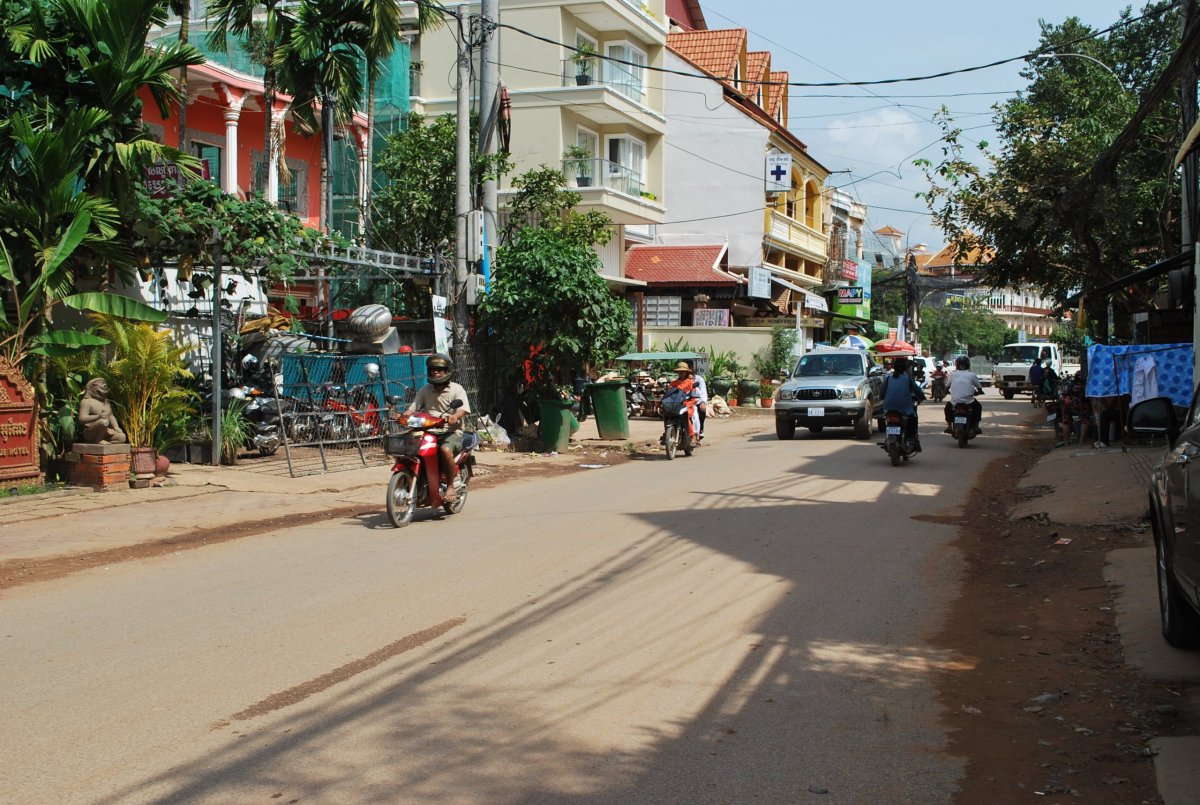 Ráno o půl šesté vstáváme, balíme a bez snídaně (nakoupili jsem si včera vodu a jídlo) jdeme k cestovní kanceláři asi 10 minut. V 6:30 by měl odjíždět bus do Phnom Penh, kde bychom měli být za 6 hodin a dále pokračovat ve 14:30 do Siem Reap. Autobus je pěkný, má jenom tři sedadla vedle sebe, takže jsou pěkně široká a dají se pohodlně sklopit. Klimatizace jede na 100 % (tzn. asi 16 stupňů) takže si beru ponožky, mikinu a deku a můžeme vyrazit. Asi po 1,5 hodině jízdy se ozve rána, autobus se trochu zakymácí a pak zastaví. Praskla nám zadní pneumatika. A jak praskla, tak ty dráty, co vyztužují gumu, roztrhly ještě nějakou hadičku, která vedla ke kolu. Do zadního prostoru autobusu začal jít kouř, tak jsme se radši rychle vypakovali s ostatními cestujícími ven. Řidič někam zavolá, pak vytáhli rezervu a asi za 20 minut přijel pán s malým náklaďáčkem a s heverem a kolo vyměnili. Tu hadičku tam začali nějak bastlit, celkově jsme se zdrželi 1,5 hodiny. Průvodčí od nás po cestě vybral pasy a 35 dolarů na osobu na vízum do Kambodže. Na hranicích to bylo asi na 30 minut čekání ve frontě na imigračním a pak jsme zase mohli do autobusu. Kousek za hranicemi zastavil autobus na jídlo, v takové jídelně, a pak jsme opět pokračovali směrem do Phnom Penh. Bohužel to vypadalo na docela veliké zpoždění, které se ještě zvětšilo, protože v PP opravovali příjezdní silnice a byla tam zácpa. Ke kanceláři cestovky jsme dorazili ve 14:40 a navazující autobus do Siem Reap odjel ve 14:30. Takže slečna v kanceláři řekla, že pojedeme až v 17:30, což při 6ti hodinové cestě znamenalo, že bychom do Siem Reap dorazili někdy v noci. Tak jsem jí začala přemlouvat, že potřebujeme jet dřív, že jsme měli zdržení kvůli prasklé pneumatice, a nakonec nám řekla, že tedy můžeme jet v 15:30. Předala nás do cestovky asi o 20 metrů jinde, tam nám dali jiné lístky na bus a tuk tukem nás odvezli na jiné místo, na takové malé nádraží. Mezitím začalo dost pršet, takže jsme v tuk tuku trochu zmokli. Na nádraží nám tuk tukář zařídil něco s lístky u okénka a řekl, že jako OK, že pojedeme hned dalším busem a pak odjel. Byla jsem z toho trochu zmatená, takže jsem se ještě znova šla ptát k okýnku, kde mi paní řekla že pojedeme do Siem Reap ale v 16:00 (na lístku bylo napsáno 3:00 PM). No tak snad nebude žádný problém. Pak jsme viděli kousek dál sedět na lavičce Američana, který s námi jel v autobusu z HCMC do PP. Tak jsem se ho šla zeptat kam jede. A on říkal že do Siem Reap, v 16:00 a ukázal na autobus, na který ukazoval i tuk tukář. V 16:10 jsme opravdu nastoupili do autobusu a odjeli směrem do Siem Reap. Čekalo nás 6 hodin v autobuse, ale pan řidič to překvapivě kotlil, takže v SR jsme byli ve 21:30. Měli jsme domluveno, že nás vyzvednou z hotelu, ale nakonec jsme tam došli pěšky, nebylo to zas tak daleko, asi 15 minut cesty. Hotýlek byl fajn, zaplatili jsme 75 dolarů za 3 noci se snídaní (platili jsme kartou). Dali jsme si rychlou sprchu a vyrazili ještě do centra města, na večeři. Nudle s masem a rýže se zeleninou a 3 piva nás vyšly asi na 10 dolarů. Náš hotel byl blízko Old Market a Night Market – hlavní turistické oblasti Siem Reapu. Všude byly samé bary, hospody, obchody se suvenýry a samozřejmě spousta turistů. Kolem 23 hodiny jsme šli spát.