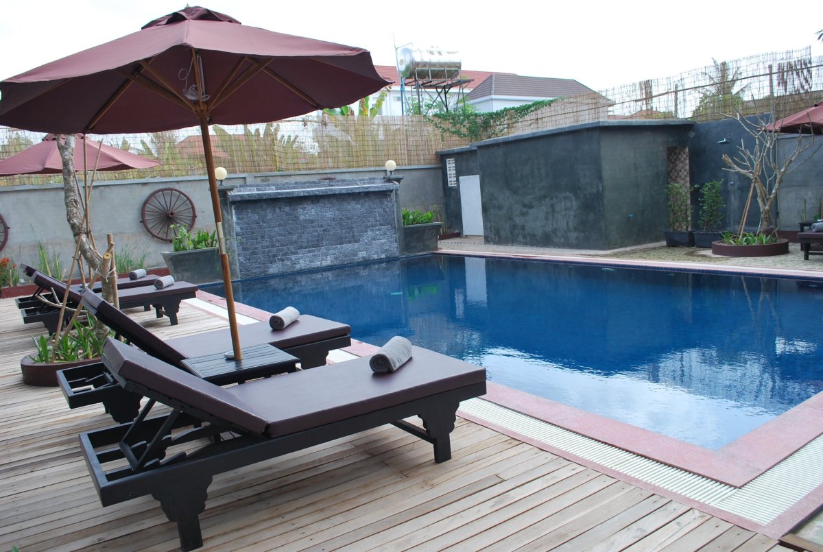 Dnes jsme se museli přesunout do jiného hotelu, protože v tom našem jsme už neměli zarezervovaný pokoj a bylo plno. Přes Booking jsem zarezervovala ubytování ve Wheel Garden residence a bylo to asi nejhezčí ubytování v Kambodži. Měli nás vyzvednout z hotelu tuk tukem, ale čekali jsme půl hodiny a nikdo nepřijel, a telefon nikdo nebral, teda aspoň to tvrdila recepční v původním hotelu. Takže jsme se sbalenými batůžky vyšli asi 300 metrů od hotelu a tam si chytili tuk tuk, který nás za 2,5 dolaru hodil do nového hotelu. Po cestě jsme trochu bloudili, protože hotel byl nový a tuk tukář nevěděl kde je a také jsme už nebyli v turistickém centru Siem Reapu ale spíš na okraji, mezi místními. Před hotelem nás čekala slečna manažerka, která se moc omlouvala že nastaly zmatky s vyzvednutím z hotelu, zeptala se nás, kolik jsme zaplatili za cestu tuk tukem a cenu 3 dolarů nám potom odečetla z ceny výletu, který jsme přes hotel kupovali na odpoledne. Šli jsme se ubytovat, a na 14 hodinu si domluvili hotelového tuk tukáře, který nás odveze na okruh po dalších chrámech. Výlet měl stát 13 dolarů, ale my platili jenom 10, protože ty 3 dolary jsme dali za tuk tuk z hotelu. Šli jsme si odpočinout na pokoj, vybalit se a pak jsme šli na místní tržiště, které bylo asi 200 metrů od hotelu. Tam jsme nakoupili ovoce a vodu. Ve dvě hodiny jsme před hotelem nasedli do tuk tuku a vyrazili na okruh okolo chrámu Bakong. Nejdřív jsme jeli k chrámu Preah Ko. Při zpáteční cestě do hotelu jsme si vyhlédli místní jídelnu a chtěli jsme tam zajít na večeři. Na hotelu jsme už měli vyprané prádlo, které jsme před odjezdem na chrámovou prohlídku nechali na recepci na vyprání, vyložili jsme si věci a pak jsme šli sehnat vodu a pivo. S nákupem jsme šli do vyhlédnuté jídelny. No, jídlo bylo zvláštní, talíř s grilovaným masem – trošku flaksovitým, asi vepřové, a velká miska s ledem, na kterém byla položená syrová zelenina – okurky, cibule, salát, špenát, mrkev. A k tomu byly nějaké omáčky a arašídové sypání. Moc mě to neoslovilo, ale bylo to levné, asi 9 dolarů i s 3 pivy. Po večeři jsme se šli vykoupat do hotelového bazénu, a když se setmělo, začalo trochu pršet. Takže jsme šli spát.