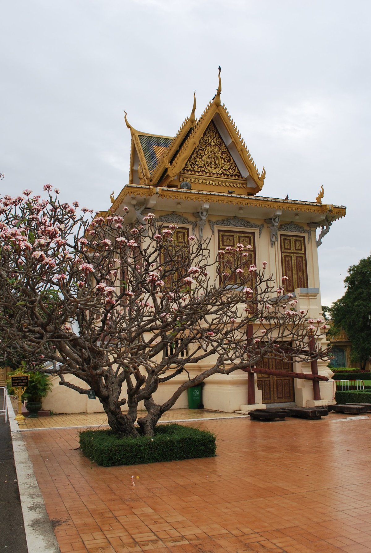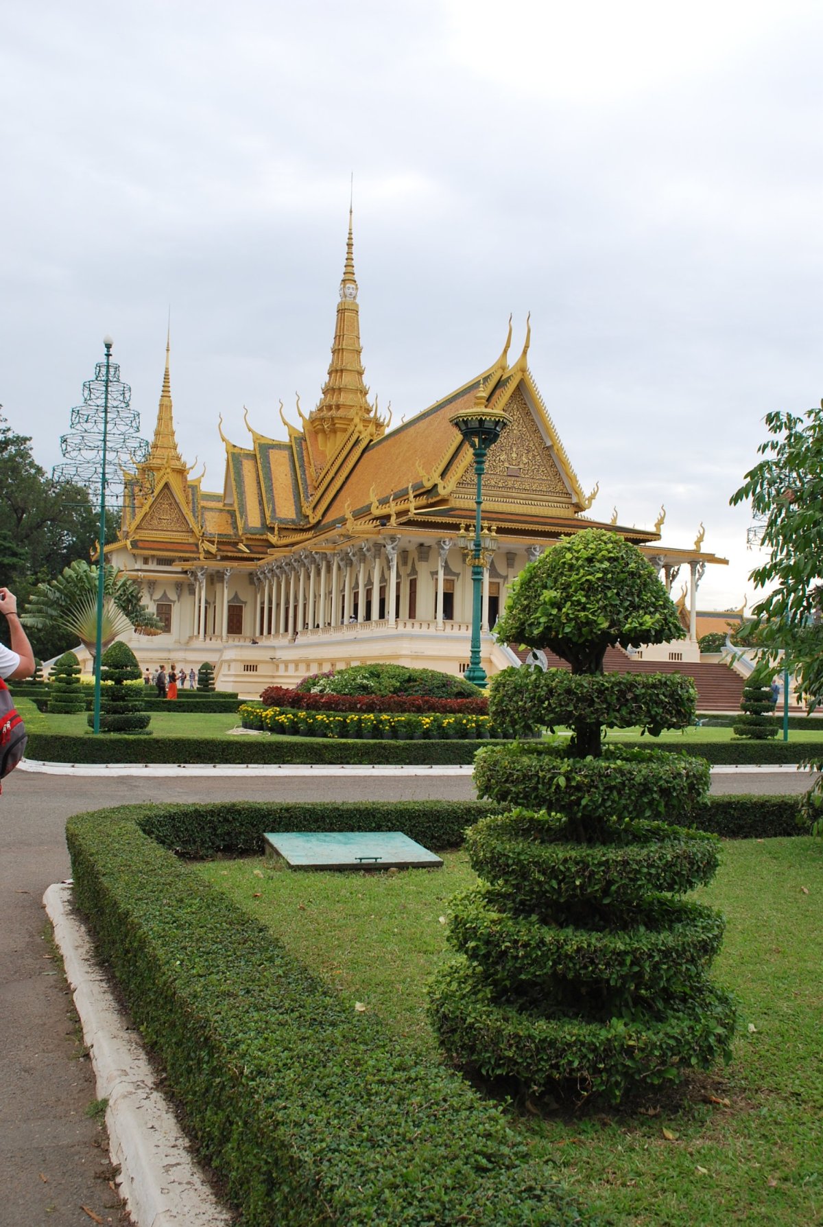 Ráno jdeme na snídani a pak zpět na pokoj se sbalit a check outovat. Zaplatíme kartou za ubytování a chceme jít pěšky na stanoviště sdílených taxíků. Kdybychom nechytili žádný taxík, tak půjdeme na autobus, kterých prý jezdí několik denně. Po cestě nás odchytne tuk tukář a zadarmo nás na stanoviště odveze, a ještě slíbí vyhledat levné taxi. Odveze nás asi 300 metrů, kde se na nás sesypou chlapíci – řidiči a nabízí cestu do Phnom Penh za 40 dolarů. To nechceme, jsme ochotni dát maximálně 5 dolarů za každého. Nakonec se nás jeden ujme, že tedy za 10 dolarů oba, hodí nám batohy do kufru Toyoty Camry a čekáme na další lidi (auto odjíždí, až když je plné) ale nejpozději v 10 hodin. Čekáme tedy asi 20 minut, během kterých sežene taxikář další 3 lidi a v 10 skutečně vyjíždíme do Phnom Penh. Vzadu opět sedíme 4 (já, Štěpa, nějaká slečna a starší pán) ve předu sedí jeden mladý hubeňour. Docela mu závidíme, ale jenom do té doby, než řidič zastaví a do předu se nacpe ještě jeden chlapík, který si prostě sedne tomu hubeňourovi na klín a postupně ho vytlačuje směrem k řadící páce, takže tam sedí zkroucený jak paragraf. Do Phnom Penhu je to asi 180 km, jedeme 3,5 hodiny, máme jednu zastávku na jídlo. Ale docela se to dá vydržet. V Phnom Penhu jsme kolem 14 hodiny, řidič nás vysadí u velké tržnice, skrz kterou projdeme na cestě do hotelu. Hotel je malý, pěkný, a přímo u královského paláce. Kolem 15 hodiny jdeme na prohlídku královského paláce. Vstupné stojí 10 dolarů na osobu, což je docela dost, ale když už jsme tady. Akorát mám problém v tom, že si chci ramena zakrýt šátkem, (kolena mám krytá sukní) ale oni tam mají zákaz nošení šátků, prý si mám za 10 dolarů koupit triko. Naštěstí má Štěpa u sebe lehkou běžeckou bundu, tak si jí tam nasoukám na sebe a můžeme být vpuštěni do paláce. Palác je moc hezký, hodně připomíná královský palác v Bankgoku. Viděli jsme trůnní palác, stříbrnou pagodu, která má podlahu ze stříbrných dlaždic a zrovna rekonstruovaný napoleonský palác. Pak jsme si prohlédli ještě pár expozic, a já jsem zapálila několik vonných tyčinek za pražskou babičku, která bohužel dnes ráno zemřela. Pak jsme se šli projít na nábřeží, chvíli jsme se tam potulovali a pak šli na výbornou večeři, víno a koktejl. V hotelu nám odpoledne objednali lístky na autobus do Saigonu, zítra ráno se vracíme do Vietnamu.