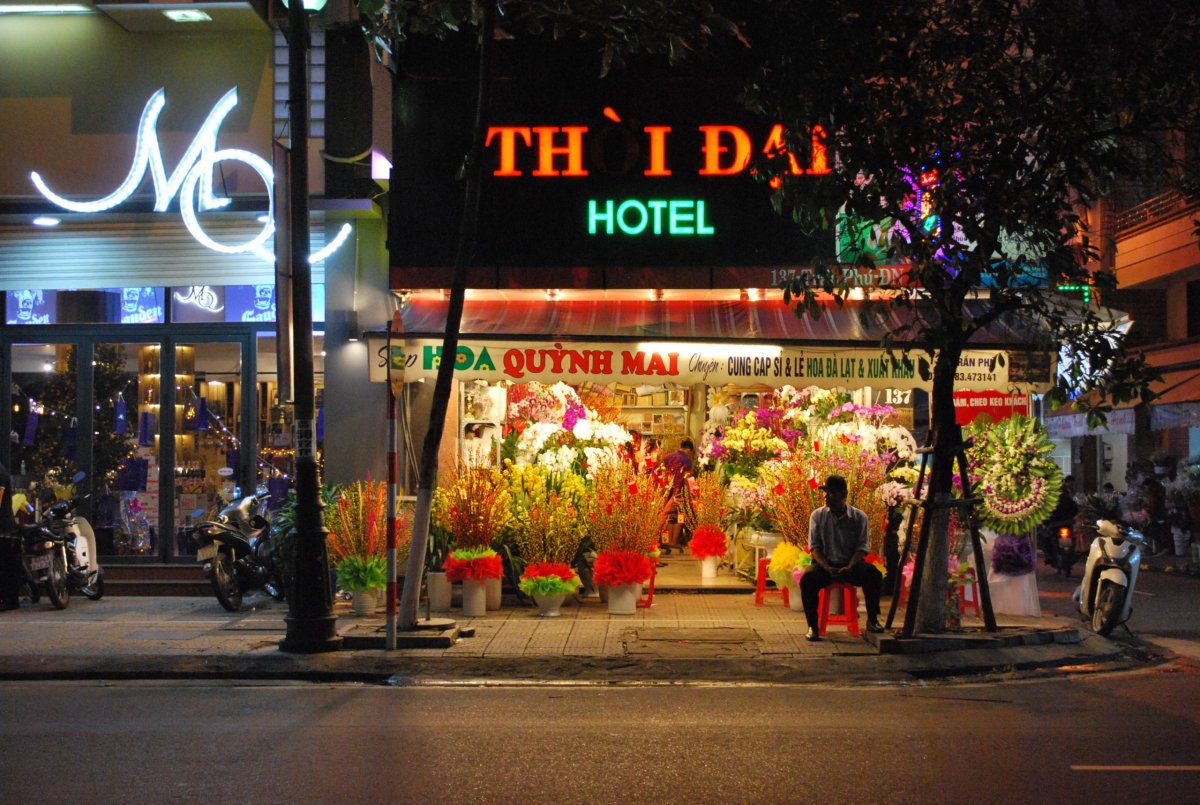 Snídani jsme opět dostali na terásce. S majitelem jsme se dopoledne dohodli, že odjedeme už dnes večer, protože zítra v 9 ráno nám letí letadlo z Da nangu do Saigonu, a my máme domluvený hotel u letiště v Da nangu, abychom nemuseli zas až tak brzo vstávat. Souhlasil, že nám domluví odvoz z Hoi an do Da nangu. Takže jsem se zase šli slunit na pláž, v restauraci si dali oběd, Štěpa měl moc dobrou rybu. Kolem 5 hodiny jsme se sbalili, vysprchovali z mořské vody, zaplatili jsme za ubytování a v 17:30 jsme vyrazili zpět do Da nangu. Taxi nás odvezlo až do hotelu poblíž letiště. Ubytovali jsme se a šli do města, že si dáme někde večeři, možná nakoupíme nějaké dárky. Ale protože bylo 29.ledna, tak Vietnamci slavili svátek TET a byli všichni zalezlí doma, nebo odjeli na venkov. Bylo tedy skoro všude zavřeno, dokonce i provoz na silnicích byl menší. Prošli jsme se tedy až k řece, a po cestě nazpátek jsme našli místní restauraci – jídelnu a tam si dali jídlo. Akorát že jsme se zase nějak nemohli domluvit, přinesli nám toho strašnou kupu, ale bylo to dobré. Pak jsme šli zpět na hotel, domluvili si taxi na zítra ráno a brzkou snídani.
