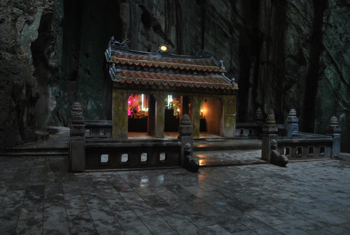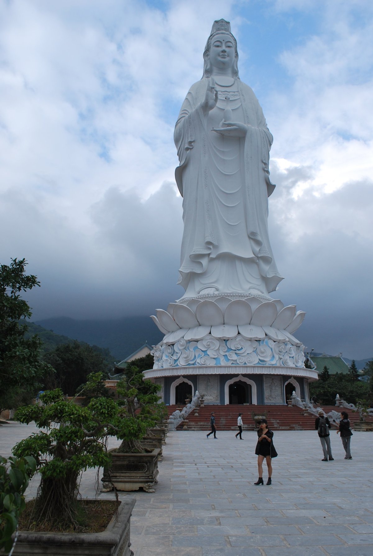 Po vcelku dobré snídani (kterou jsme platili zvlášť od ubytování) si na recepci vyzvedáváme klíče od motorky – plný automat. Jedeme na výlet do Mramorových hor, asi 7 km od Da nangu. Přijedeme k úpatí největší hory, kde za 3000 VND zaparkujeme a jdeme na výlet. Za 2x40 000 VND můžeme projít oblast 5ti hor. Je zde spoustu pagod, vyhlídek a velikých jeskyní. Ve většině jeskyní jsou osvětlené sochy budhů, hraje tam hudba. Vyhlídka z nejvyšší (Vodní) hory je hezká, škoda, že je oblačno a není vidět moc daleko. Pak sejdeme přes okrasnou budhistickou zahradu dolů, asi do zahradnictví a projdeme do malého městečka na úpatí hory. Městečko se specializuje na výrobu mramorových soch všeho druhu, podél silnice jsou jenom krámky se sochami. Mramor na jejich výrobu se dováží z Číny, protože Vietnamci si nechtějí těžit vlastní zásoby. Vyzvedneme si na parkovišti motorku a jedem zpět do Da nangu, a stavíme se v zálivu nakouknout k moři. Trochu poprchává, ale je docela teplo. Na moři v zátoce je spousta lodí, ke kterým se rybáři dostávají v takových kulatých „mističkách“ z rákosí, ovládají je jedním pádlem a vůbec nechápu, jak to dělají, že jedou tam, kam chtějí. Jsme trochu zblblí z Kambodži, kde na každém rohu prodávali benzín, takže když potřebujeme natankovat, není v dosahu žádná benzínka. Ptáme se místních na benzínku, ale asi nevědí, nebo nás poslali jinam, takže jsme nakonec jeli zpět k hotelu, kde benzínka byla (nebo resp. si jí Štěpán všiml, že tam je). Natankujeme plnou nádrž na 19 Kč/litr a jedeme směrem z města ven, na tzv. Opičí horu. Je to cca 10 km od města. Na opičí hoře je obrovská socha ženské verze budhy, socha je celá bílá, mohla měřit tak 35 metrů. V průvodci o ní nic nepíšou, průvodce je z roku 2005, takže asi bude novější. Okolo sochy jsou krásné terasy se stromy v květináčích, pagody a chrámky. U jedné z pagod přečkáme asi 20-ti minutový déšť a pak jedeme dalších cca 10 kilometrů k místu, kde by měl být 800 let starý fíkusový strom. Poslední 4 km cesty jedeme úzkou panelovou cestou, kterou postupně zarůstá džungle, a která má až 17% stoupání a klesání. Ale vypadá to, že motorka to vyjede. Kolem 17:30 přijíždíme k opravdu majestátnímu stromu. Cestou potkáme i několik opic – takže jsme opravdu v džungli. Fíkusovník je zajímavý tím, že mu z větví visí na zem takové liány, asi kořeny. A ty se doplazí k zemi, kde zakoření a postupně se z nich stávají další podpůrné kmeny toho hlavního stromu. Do Da nangu dojedeme za tmy, po cestě si vyhlédneme restauraci na večeři, takže se tam rovnou na motorce vypravíme. Je to Steak house, ale steaky tam mají dost drahé, okolo 600 000 VND, takže si vybíráme něco jiného – já si dám ciabatu zapečenou se zeleninou a slaninou, Štěpán si objednává stewed irish něco. Až když to téměř přinesou, uvědomím si, co to slovo stewed znamená – dušený. Takže Štěpán dostává misku dušeného masa s houbami. To nejhorší, co si mohl dát. No to maso teda sní, houby nikoliv a já mu dám kus své ciabaty. Ale i tak si potom ještě objednává hot dog, na spravení chuti. Po večeři jedem zpět do hotelu. Je fajn, že ve Vietnamu je tolerance 0,5 promile pro řidiče motorek, takže je možné dát si dvě piva a řídit.