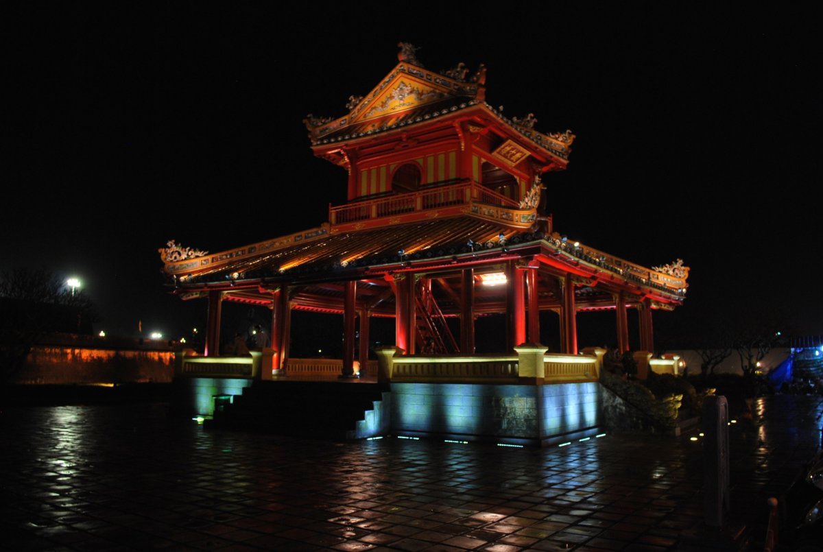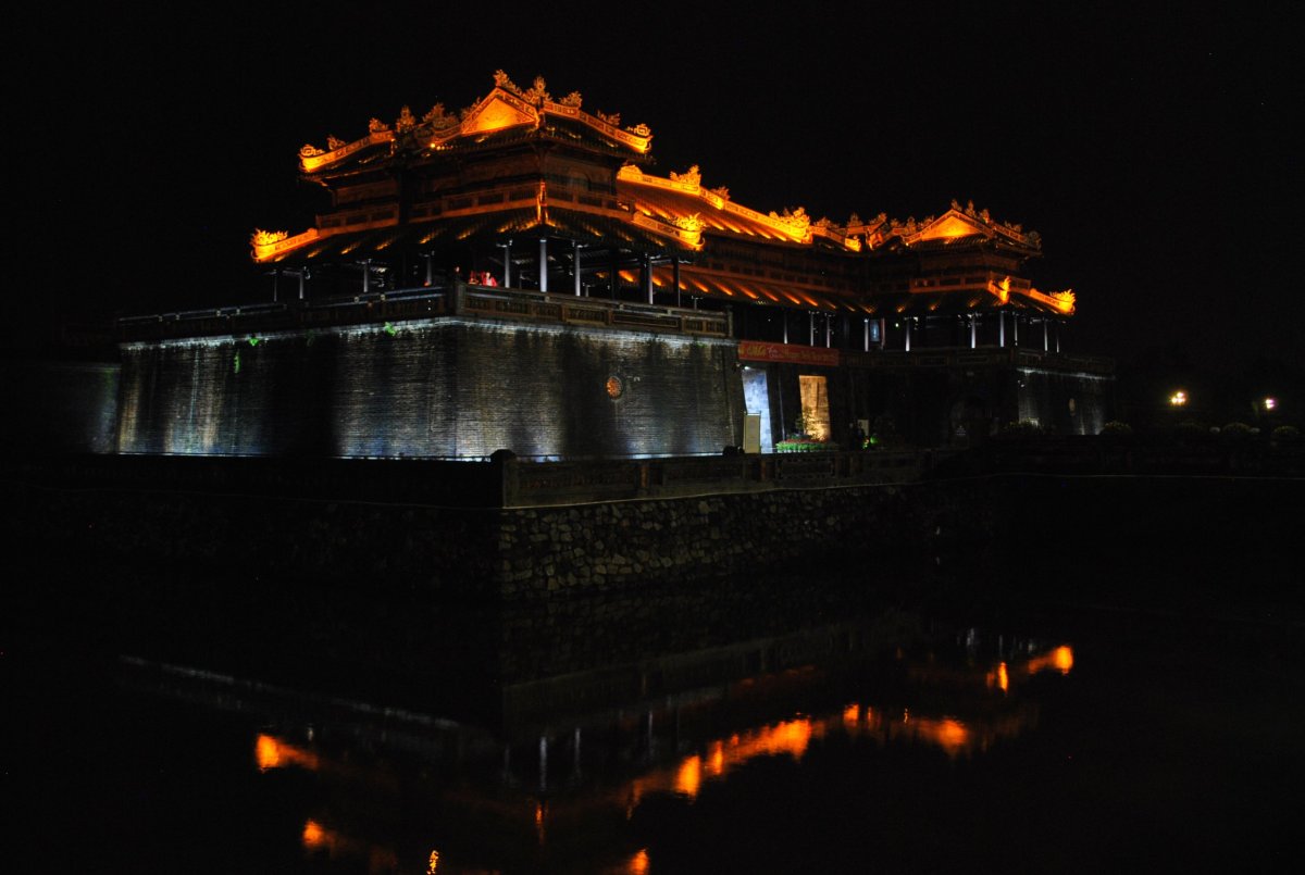 Ráno po snídani si bereme taxi a jedeme na autobusové nádraží. Docela hodně prší. Taxi nás vyloží na nádraží, kde nás místní navigují ke stanovišti odjezdů autobusu do Hué. Je tam přistavený malý autobus, tak pro 20 lidí a u něj je řidič a naháněč-průvodčí. Říkám mu, že chceme do Hué, ale tento bus už je plný. Asi za 3 minuty odjíždí a hned na jeho místo přijede jiný. Za asistence naháněče dávám řidičovi 200 000 VND a jdu se cpát dovnitř, protože místní už vzali autobus útokem. Štěpa má nacpat batohy do zadní části busu. Já se probojuji do zadní části autobusu, na pětku sedadel. Za chvíli se do autobusu nacpe i Štěpán s oběma batohy, protože vzadu je to mokré a špinavé, tak si to prý máme dát dovnitř. Takže jedno sedadlo u okna obsadím batohy, protože bych se tam stejně nevešla, autobus je nějaký nízký a nad sedadly u okna je police. Vedle si sednu já a Štěpa zabere prostřední místo v uličce. No a pak ještě vyrazí na záchod s tím, že mám držet pozici a bránit ji. Do autobusu se však cpe pořád víc lidí, poslední volná sedadla jsou obsazena místními. Mě se sice podaří do Štěpánova příchodu udržet všechny 3 sedadla, nicméně průvodčí se mi tam pořád snaží na místo, kde máme batohy nacpat nějakého Vietnamce, nevím, jestli má sedět na batohách, nebo na nás? Protože jsem ale mezitím vypozorovala, kolik platí místní za 1 sedadlo v buse (bylo to 70 000 VND), tak říkám průvodčímu, že my jsme si zaplatili tři sedadla, protože jsme zaplatili 200 000 VND. On to ale nechápe, protože peníze jsem dávala řidiči. Naštěstí vedle nás sedí místní, co umí aspoň trochu anglicky a ten to průvodčímu překládá. Takže dáme průvodčímu ještě 10 000 VND (což je asi 10 Kč) a je to v klidu, můžeme jet. Ještě asi dalších 10 minut do autobusu přistupují lidé, kteří si sedají do uličky, kam jim průvodčí dává takové malé sedačky, a také naskladňují krabice se vším možným. Když konečně vyjedeme, po cestě přes Da nang ještě nabíráme další náklad, nechápu, kam to všechno dávají. Po cca 2 hodinách jízdy jsme ve 12:30 v Hué, na autobusáku. Hué je jediným vietnamským městem, kde zůstal v neporušeném stavu celý královský komplex hradů, paláců a královských hrobek. V roce 1993 byly tyto monumenty zapsány do seznamu kulturních památek UNESCO. Docela prší, tak si bereme taxi a jedeme do hotelu, kde si trochu orazíme a počkáme až trochu přestane pršet. To přestane asi kolem 17 té hodiny. Tak vyrazíme do města, prohlédneme si okolí citadely, projdeme okolo hlavního vstupu do areálu císařského paláce, a přes trhy – Night market a Flower market. Pak najdeme restauraci, doporučovanou v Tripadvisoru, a je opravdu výborná, hlavně umí obsluha anglicky, takže dostaneme to, co jsme si objednali. Po večeři si v hotelu domluvíme půjčení motorky na zítra a jdeme spinkat.