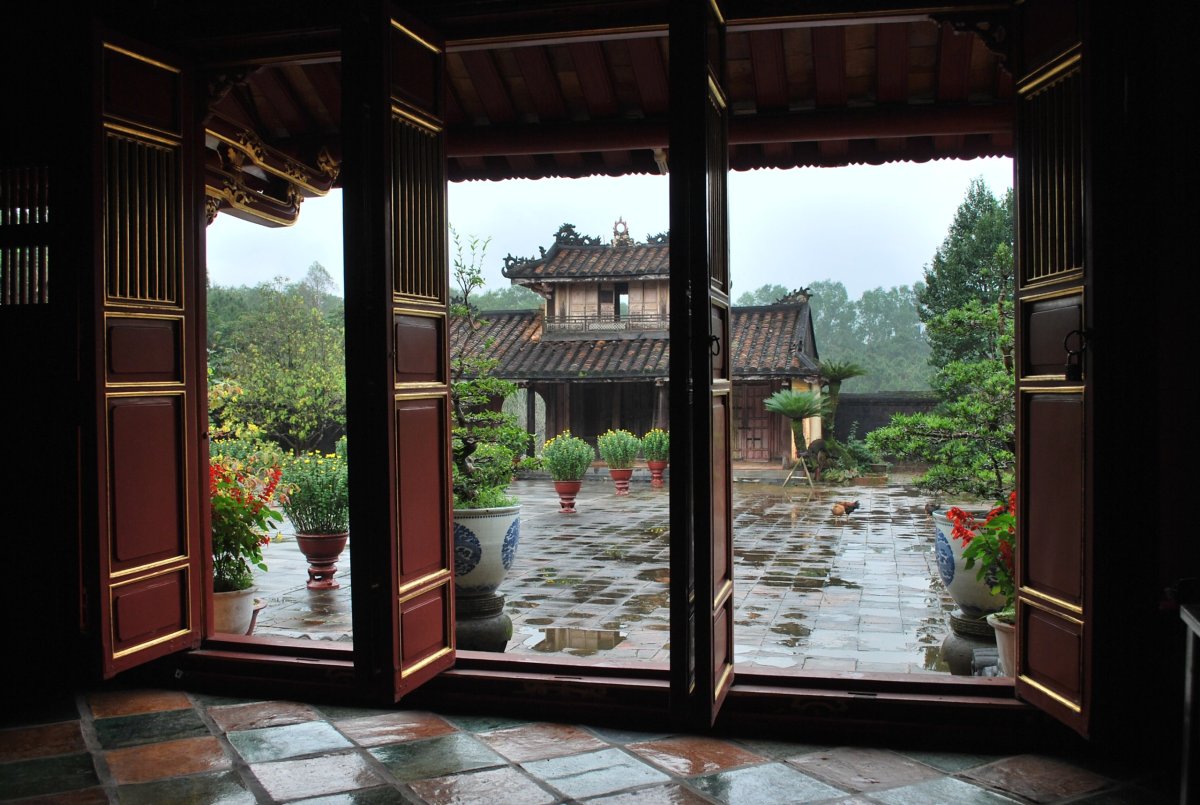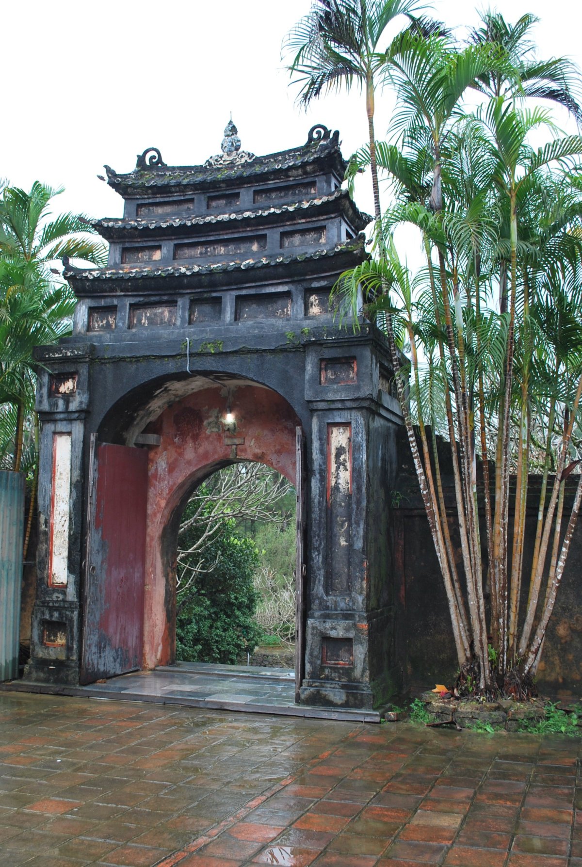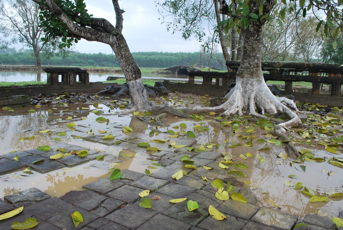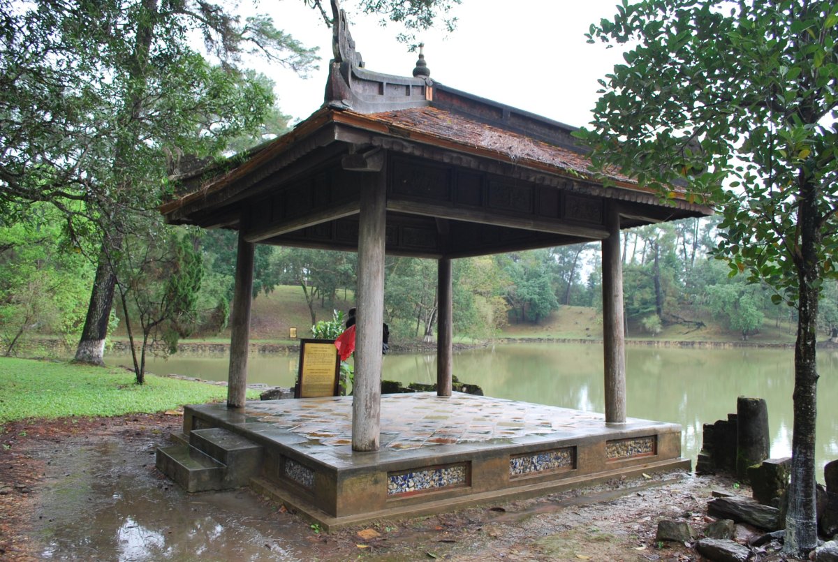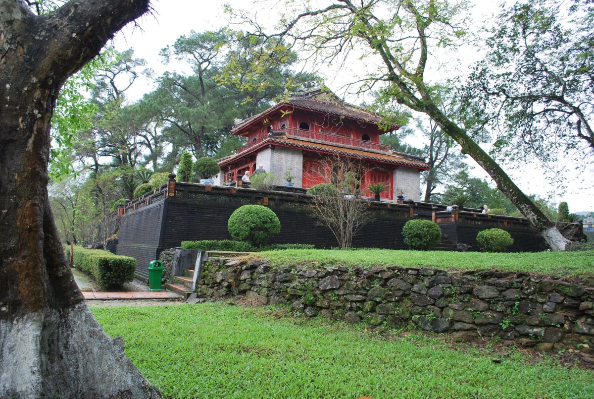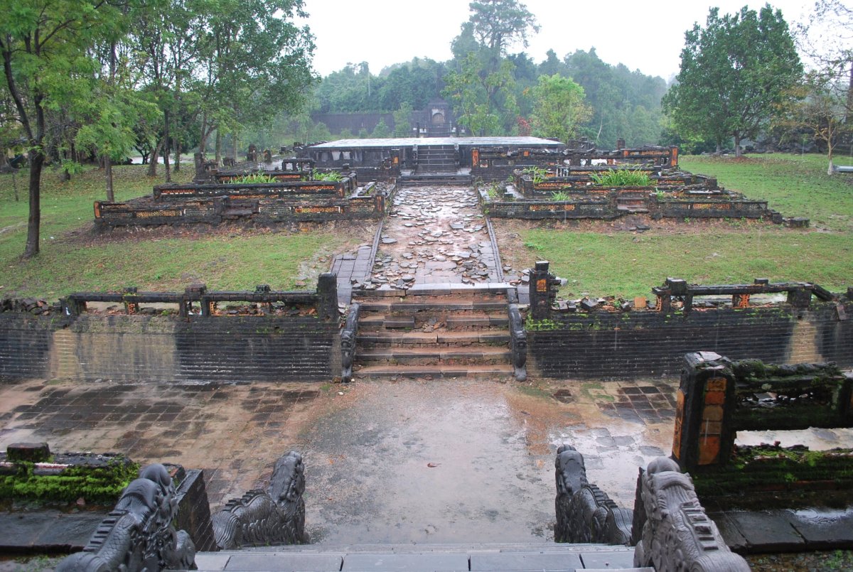 Po výborné snídani (personál v hotelu je opravdu moc milý) si za 7 dolarů půjčujeme motorku a jedeme si prohlédnout císařské hrobky v okolí Hué. Všechny hrobky mají dvě části – první je určena pro pohřební účely, druhá pro samotnou hrobku. V každém komplexu jsou hradby, trojitá brána, dvůr pozdravů, stély, pavilony, chrámy, zahrady, jezírka a samotná hrobka. První, kterou navštívíme je nejhezčí, a ačkoliv čekáme nejdřív asi 5 minut u benzínky a pak asi 15 minut u pokladny až přestane pršet, rozhodně to stojí za to. Za 2x 40 000 VND si úplně sami prohlédneme celý areál. Hrobka císaře Minh Mang (1820-1840) byla postavena během let 1840-1843. Je považována za nejvíce majestátní ze všech, tvoří ji 40 různě velkých staveb, které jsou umístěny uvnitř oválné hradby, jež má obvod 2 km. Stavby jsou harmonicky zasazeny do okolní přírody, důraz je kladen na symetrii. Bylo zapotřebí 10 tisíc vojáků a umělců, aby byl celý areál hrobky dokončen. Musíme být opatrní, protože chodníky, náměstí a cestičky v areálu jsou vydlážděné keramickou dlažbou, která ukrutně klouže, protože na ní roste nějaký mech, nebo řasa. Je to trochu jako na kluzišti, tak radši chodím po okraji, po trávě. Boty už máme stejně mokré, takže je to jedno. Po prohlídce zase čekáme asi 15 minut u pokladny, až přestane ten největší slejvák. Pak se přesuneme k další hrobce, kde zaplatíme opět za 2x40 000 VND za vstup. Hrobku císaře Tu Duc (1848 – 1883) tvoří 50 staveb harmonicky uspořádaných za 1500 metrů dlouhou osmiúhelníkovou hradbou. Zde je už pár turistů, ale obecně lze říct, že je tu mnohem méně lidí než v Kambodže. Nevím, jestli je to počasím, nebo tím, že jsme v této části Vietnamu. U jednoho z jezírek v areálu hrobky si za 5 000 VND koupím granule na krmení ryb, a v jezírku s nimi nakrmím Koi kapry, kterých je tam spousta a jsou na krmení od turistů zvyklí. Po prohlídce této hrobky si z motorky prohlédneme ještě jednu hrobku, jenom tak ze silnice, vyhneme se stádu krav na cestě a zastavíme u stánku s vonnými tyčinkami. Tady nám paní ukáže, jak se tyčinky vyrábí, chce, abych si to taky zkusila, ale nechce se mi patlat v té hmotě, co dávají na bambusové tyčky. Koupíme si tyčinky s vůní citrónové trávy. A pak jedeme zpět do Hué, abychom si prohlédli císařský palác. Ten zavírá v 17 hodin, tak abychom to stihli. Císařské město leží uvnitř Citadely, a stálo tam 150 paláců. Dovnitř se vstupovalo čtyřmi branami, nejznámější je Polední brána (Ngo Mon) z roku 1833. Brána je dvoupatrová a v přízemí má pět vchodů. V prvním patře se nalézá Pavilon pěti Fénixů, kde pobýval při důležitých příležitostech císař. Střecha je pokryta zlacenými taškami. Za 2 x150 000 VND si koupíme u této brány vstupenky a pak jsme speciálním vchodem pro cizince vpuštěni do císařského města. Vstupenky platí i do muzea, které je hned vedle císařského města. Císařský palác je obrovský, vyzdobený na oslavu svátku TET, takže všude jsou prapory, květiny, stromy clementinek v květináčích. V areálu je možné jezdit elektrickými vozíky s průvodcem. Kolem půl páté odcházíme ze „Zakázaného Purpurového města“ tedy z císařského paláce a na motorce jedeme zpět do hotelu. Do muzea, kde je vystavena vojenská technika už nejdeme. Na hotelu si trochu odpočineme a na večeři dojdeme asi 100 metrů od hotelu do další restaurace doporučené v Tripadvisoru.