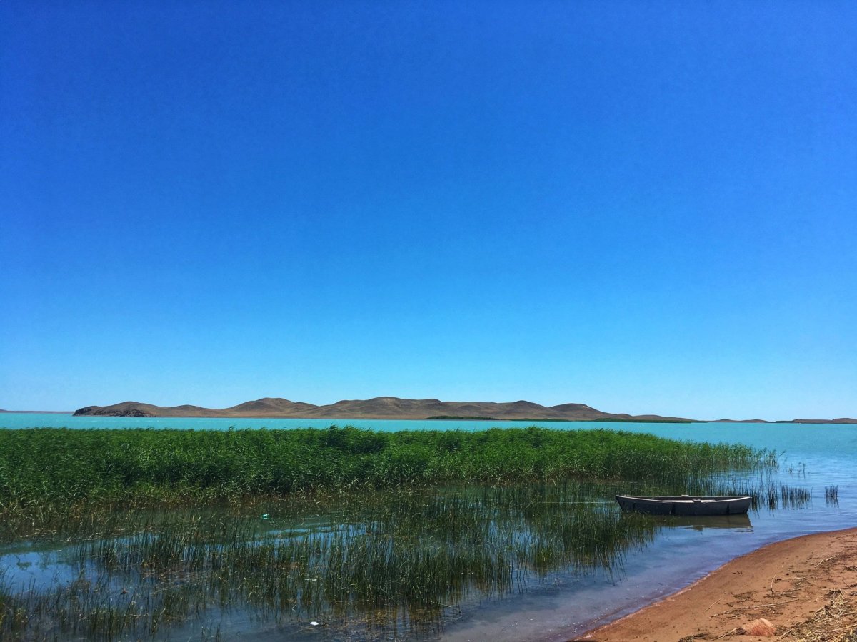 Naše auto smrdí už na dálku a ještě ktomu je pokrytý pískem a prachem. Poblíž je pán shadicí, který se stará o hotelový dvorek a nejspíš si myslí, že nás tou vodou vyžene. Přemyšlíme, že ho poprosíme aby nám trochu to auto opláchl, ale jsme ve stavu kdy nevím, jestli se víc stydíme za sebe, za auto, nebo za ty flekatý věci. Usuzujeme, že čistý auto vlastně vůbec není třeba a vyrážíme k Balkaši. Silnice jsou knám milosrdnější, ale jen místy a ne o moc.