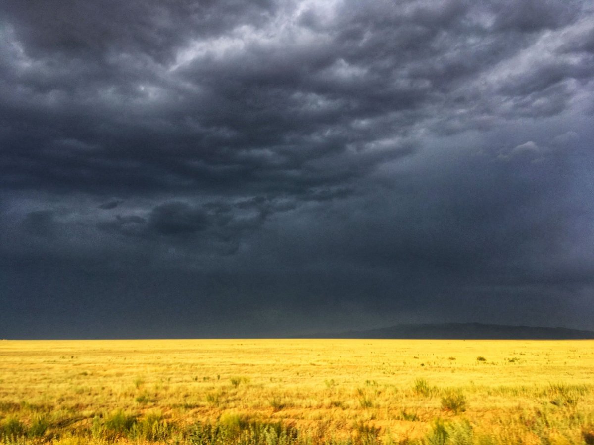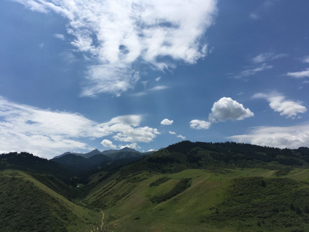 Rozhodnutí padlo a jede se na Kolsai. Řekly jsme si, že když začne být cesta ošklivá, otočíme to a pojedeme rovnou do Almaty. Jaký je překvapení, že k jezeru vede krásná, široká silnice. Buď se paní z autopůjčovny trochu spletla, chtěla nás zabít, nebo chtěla abychom jí něco zaplatily za poškození. Ať tak, či tak, pro nás je tohle jedině příjemné překvapení. S pocitem, že jsme zvládly asi i víc, než jsme měly a vlastně asi i mohly, jedeme do Almaty. Jako bonus začíná bouřka a nám se naskytne neskutečný pohled na černý nebe, žluté lány a tři duhy. To nejdůležitější ale je ta vůně. Nikdy jsem necítila nic tak krásnýho. Přirovnat to můžu asi k bylinkovým bonbonům Ricola spojený s čerstvým, chladným, vysokohorským vzduchem.- Kdykoliv si dám bylinkový bonbón, přenese mě ta chuť na tohle místo i po roce-. Po cestě ještě potkáváme na silnici u mrtvýho auta zběsile mávající holky, pořád si říkáme, že se nám do auta nevejdou, ale zastavujem. Podle posunek rozumíme, že potřebují vodu do auta, tak vytahujeme náš užitkový barel a s předplacenou karmou pokračujem. Přijíždíme vnoci, naše klasická situace se sháněním ubytování končí vpětihvězdě. Rozšoupneme se na přepočet cca 500 korun a užíváme si luxusu i se snídaní.