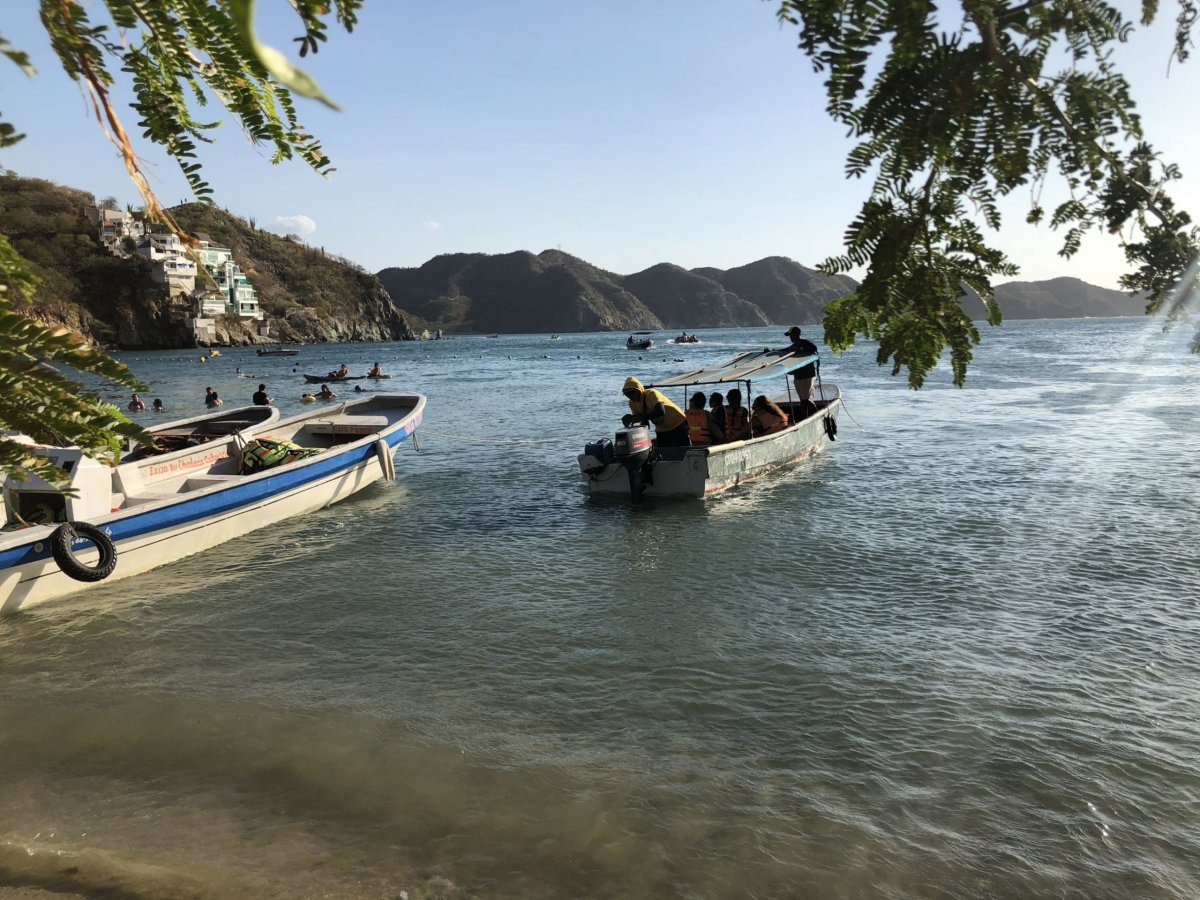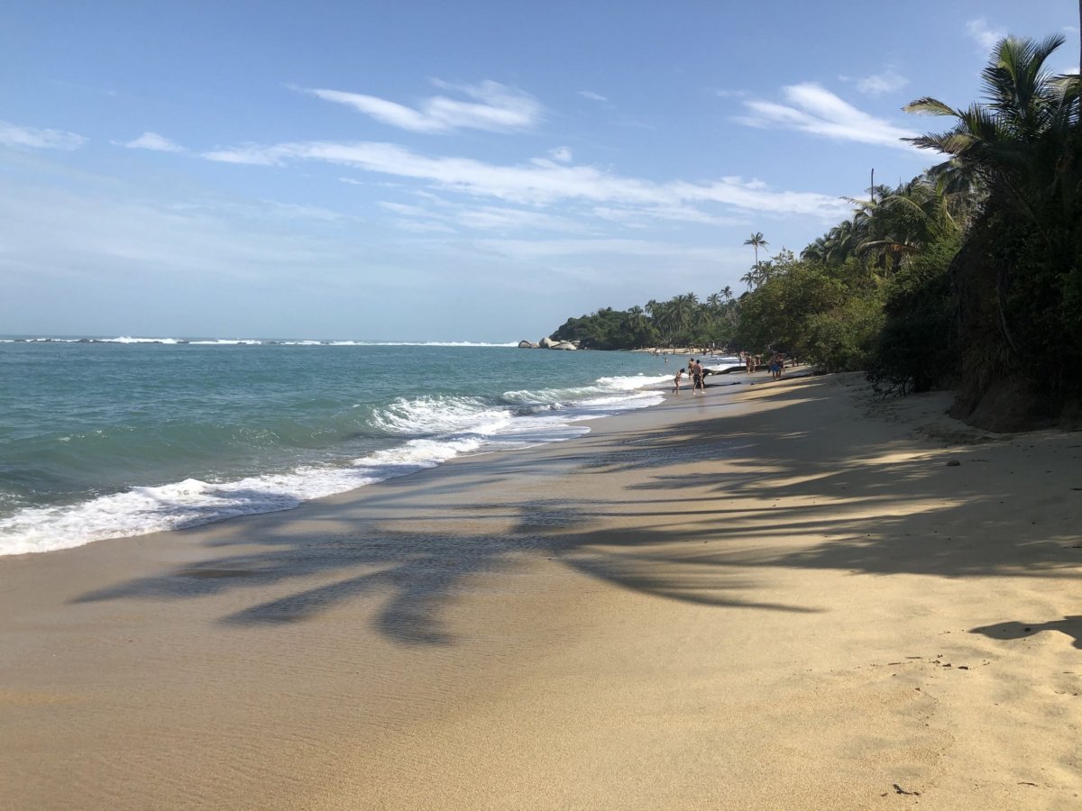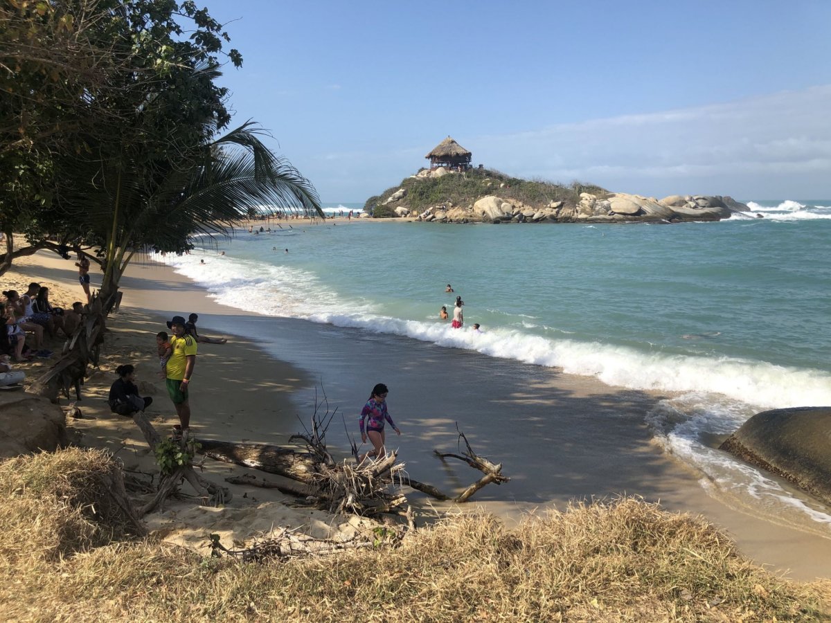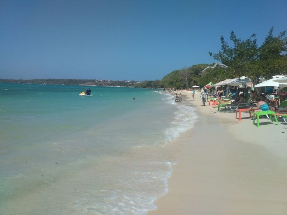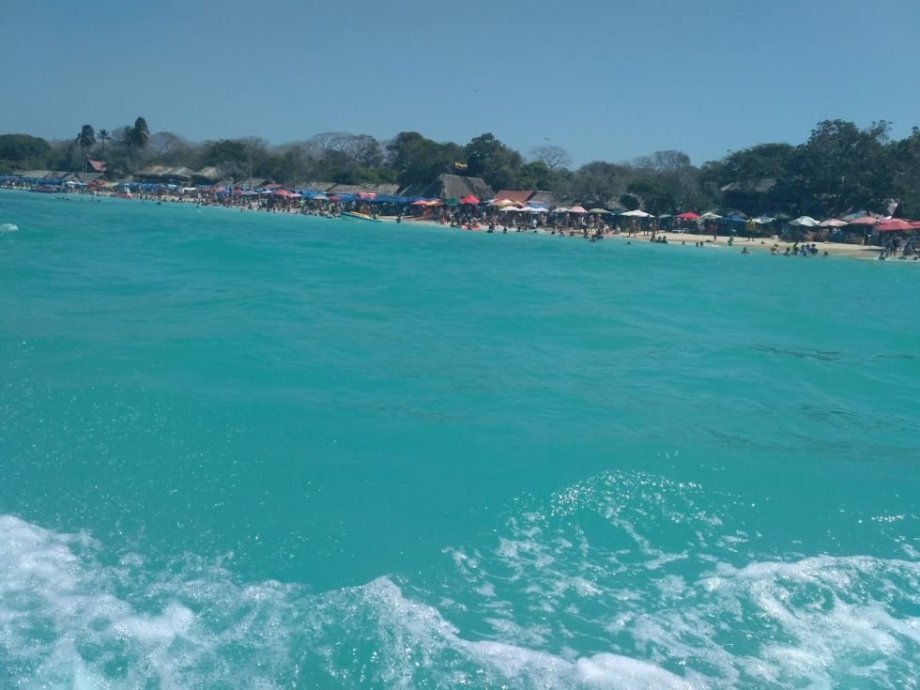 My na pláž vyrazili taxíkem. Cesta nás vyšla na 60.000 COP, ale je nutné tvrdě smlouvat. Jakmile vystoupíte z auta, ocitnete se v úlu lidí, prodejců a začnete být znechuceni. Proto je nutné po příchodu na pláž vydat se doprava a jít a jít až dojdete ke kraji pláže, kde se přeci jenom dočkáte většího klidu a pohody. V případě, že se vydáte doleva, zažijete turistické peklo.