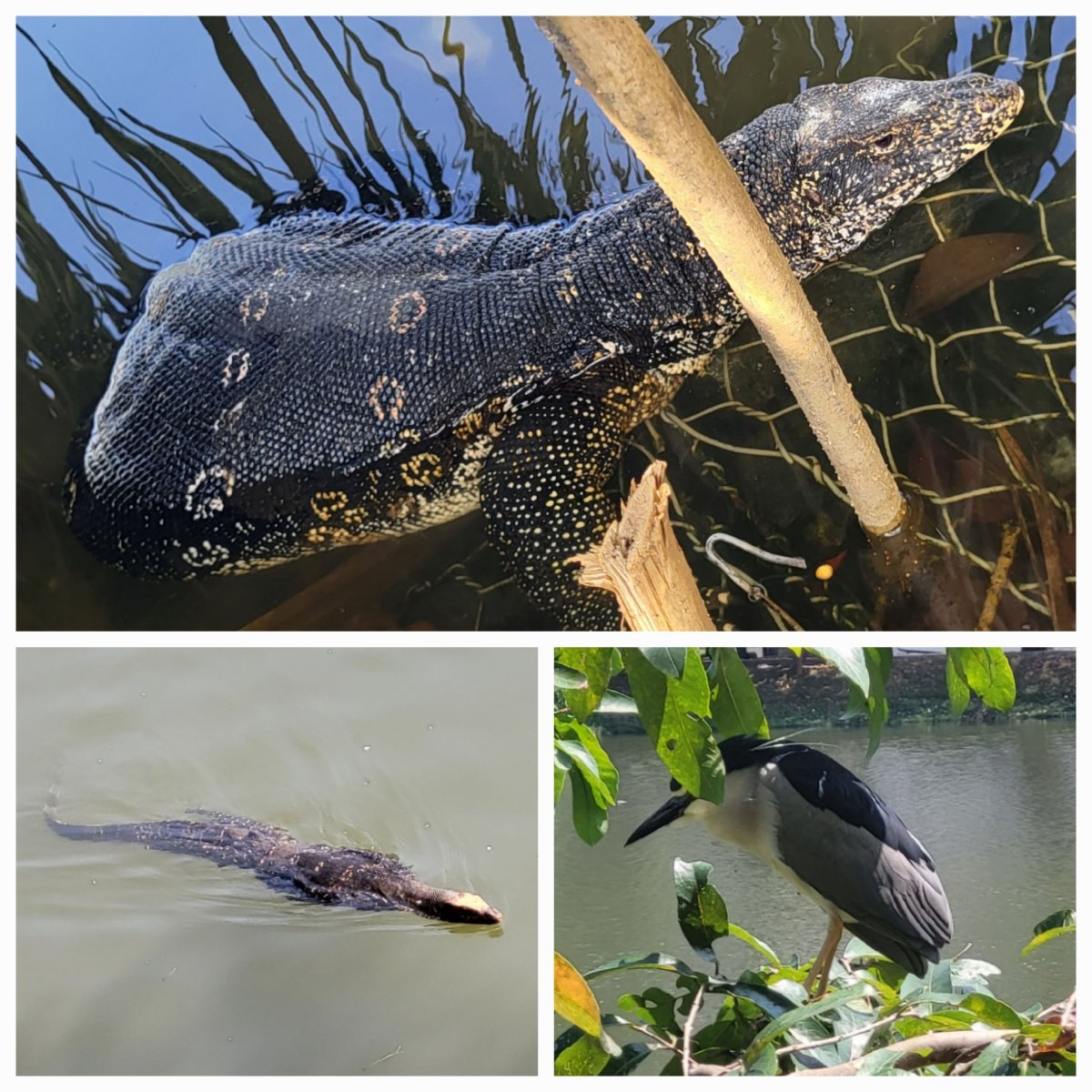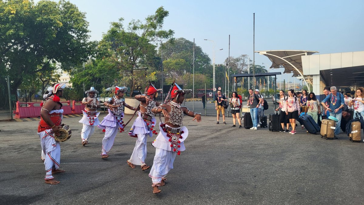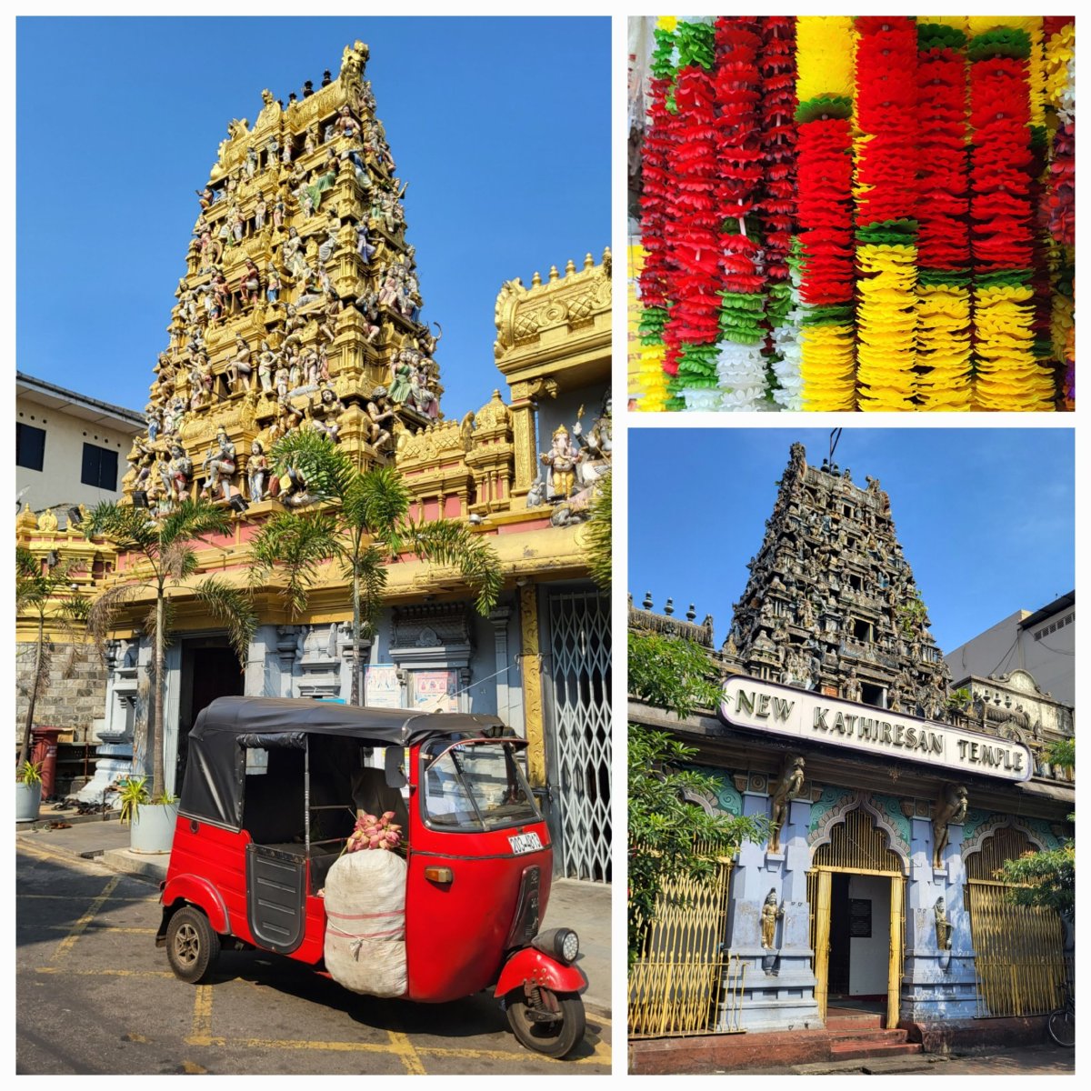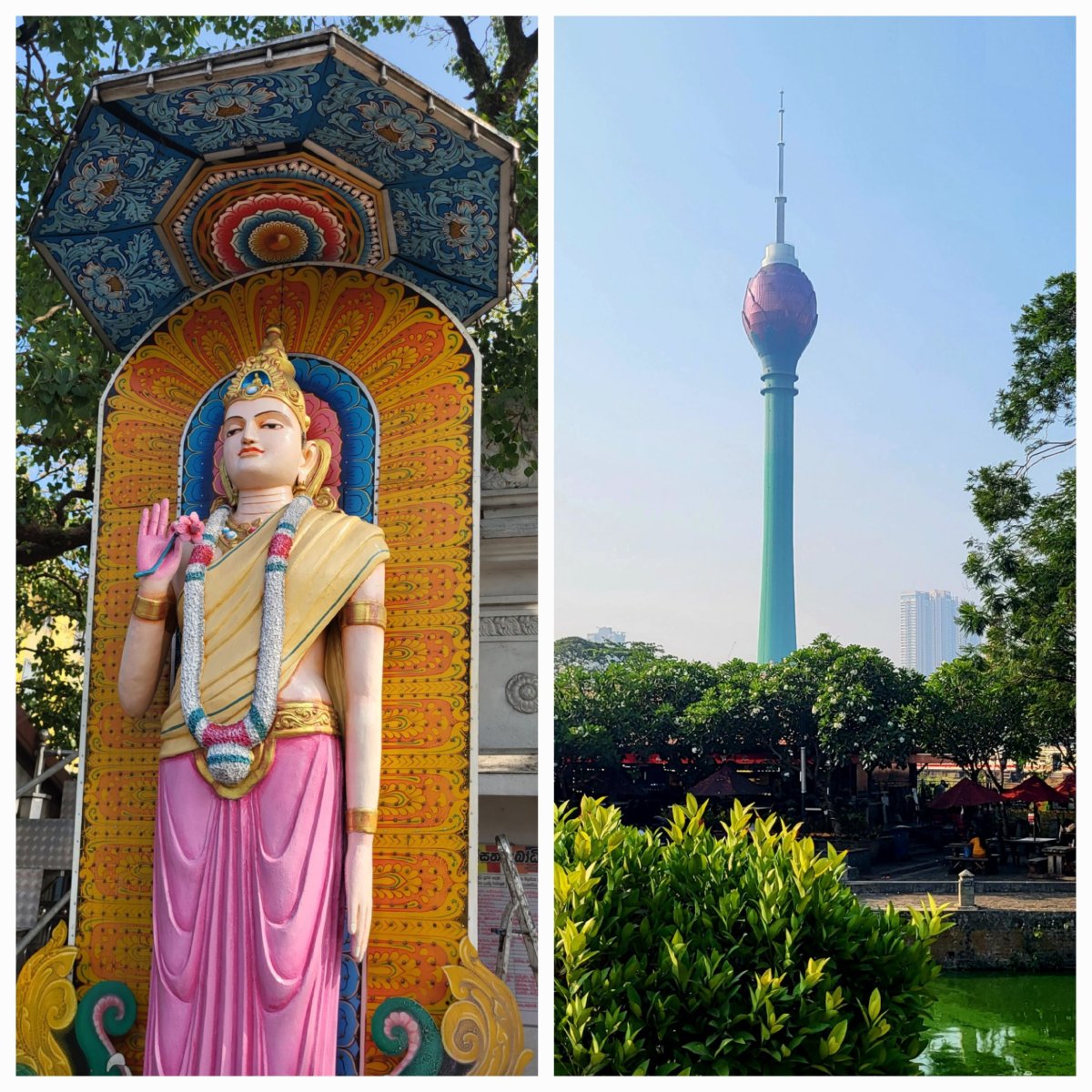 Přistáváme na letišti v Negombu, vybíráme srílanské rupie a jak už je naším zvykem, chceme hned pryč z města. Před letištěm jsou srílanskými tanečníky vítáni účastníci různých zájezdů (= ti s těmi velkými kufry), kteří pak nastupují s delegátkou do autobusu s klimatizací a jedou na týden do hotelu na pláž. Uf! Nic pro nás. Nás nevítá nikdo a jako jediní cizinci odcházíme z letiště pěšky na public bus do Kolomba, kde s batohy na zádech, v horku a dusnu (34°C) absolvujeme rychlou prohlídku města. Procházíme tržištěm u plovoucího trhu, kolem chrámu Gangaramaya, v dálce vidíme Lotos Tower, navštěvujeme chrámy Kathiresan a taky veřejné záchody (nic strašného). Dáváme si první srílanský oběd a pak už jedeme 2 busy do Tegaly.
