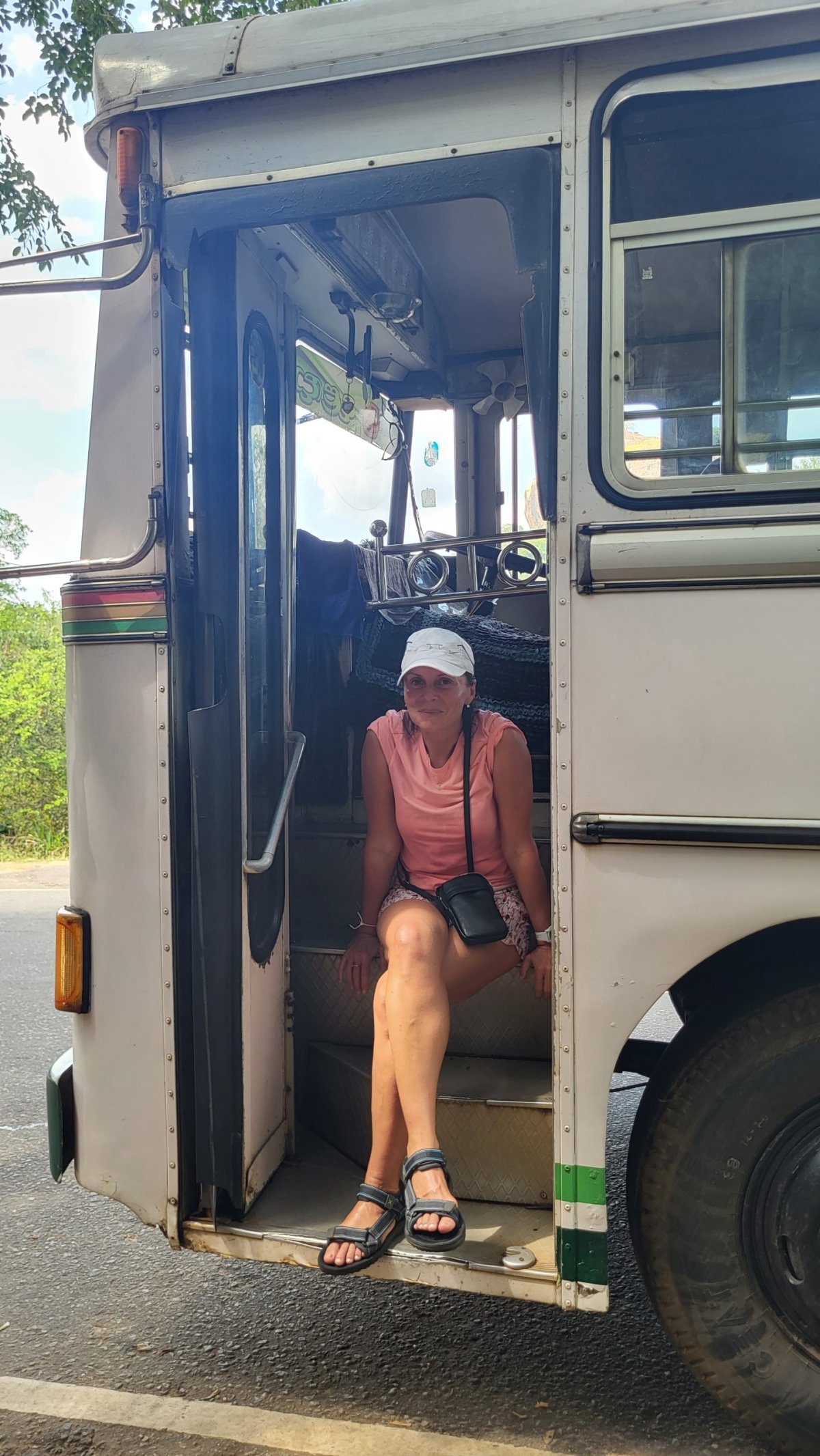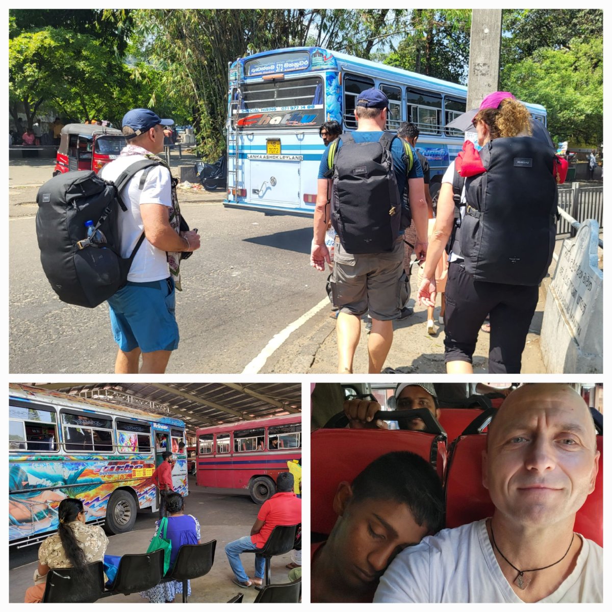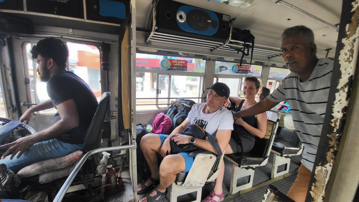 Odjíždíme ze Sigiriye. Bus přijel prázdný a tak musíme čekat, až se trochu zaplní. Řidič s průvodčím autobus zatím lehce opravují a myjí. Nastupují zase jen místní. Platíme 125 rupií (10 Kč), jedeme hodinu, holčička vedle mě okamžitě usíná.