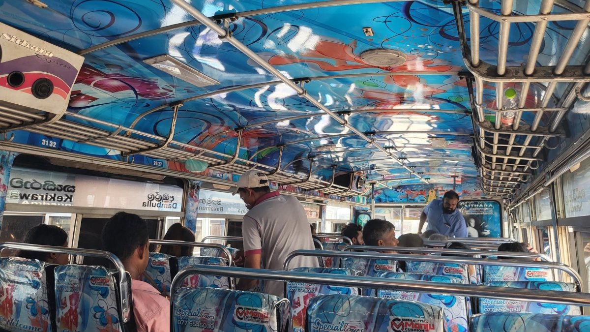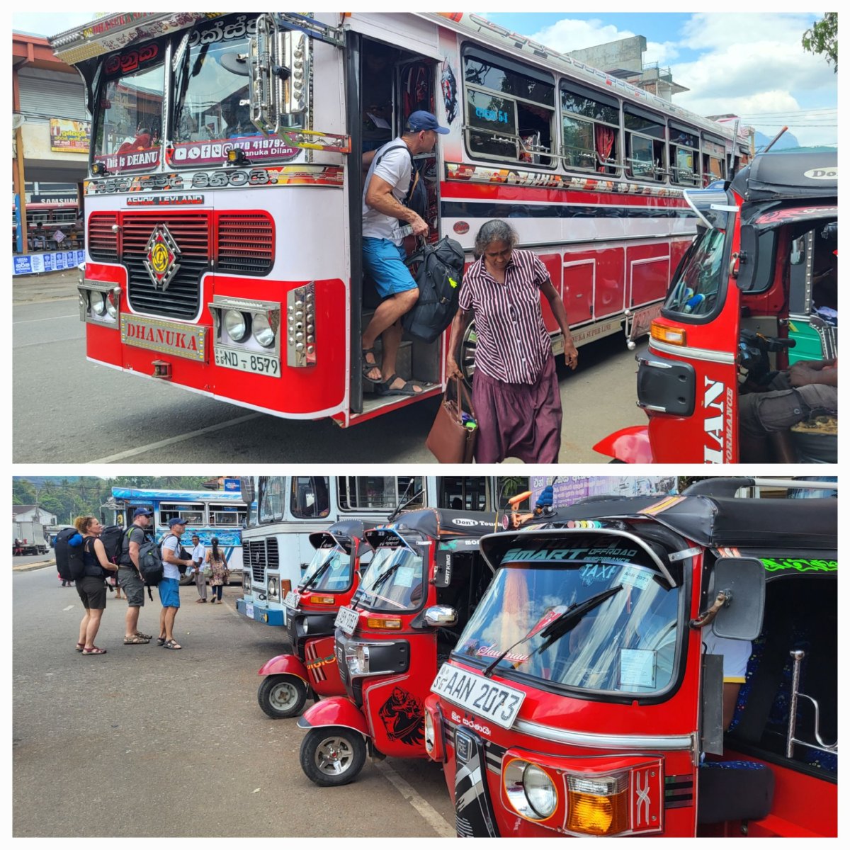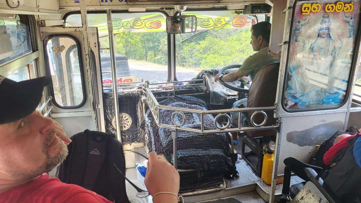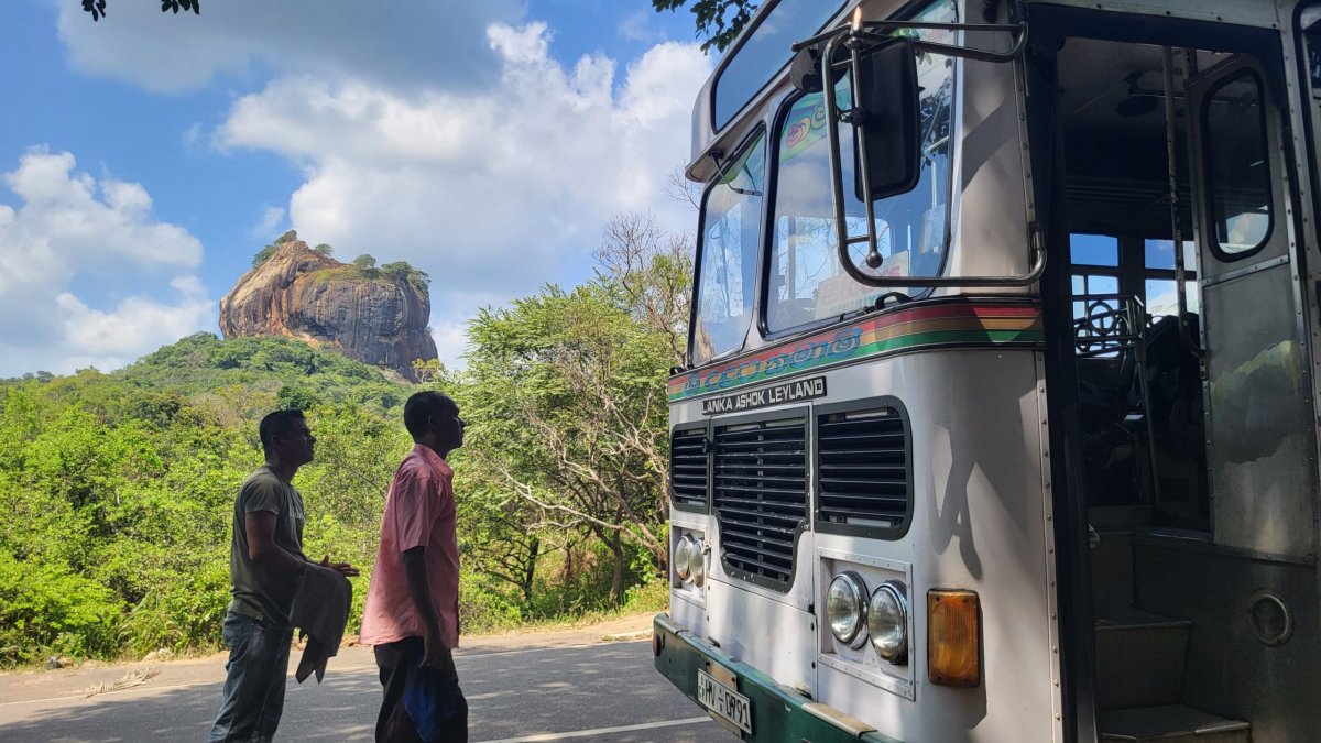Odjíždíme ze Sigiriye. Bus přijel prázdný a tak musíme čekat, až se trochu zaplní. Řidič s průvodčím autobus zatím lehce opravují a myjí. Nastupují zase jen místní. Platíme 125 rupií (10 Kč), jedeme hodinu, holčička vedle mě okamžitě usíná.