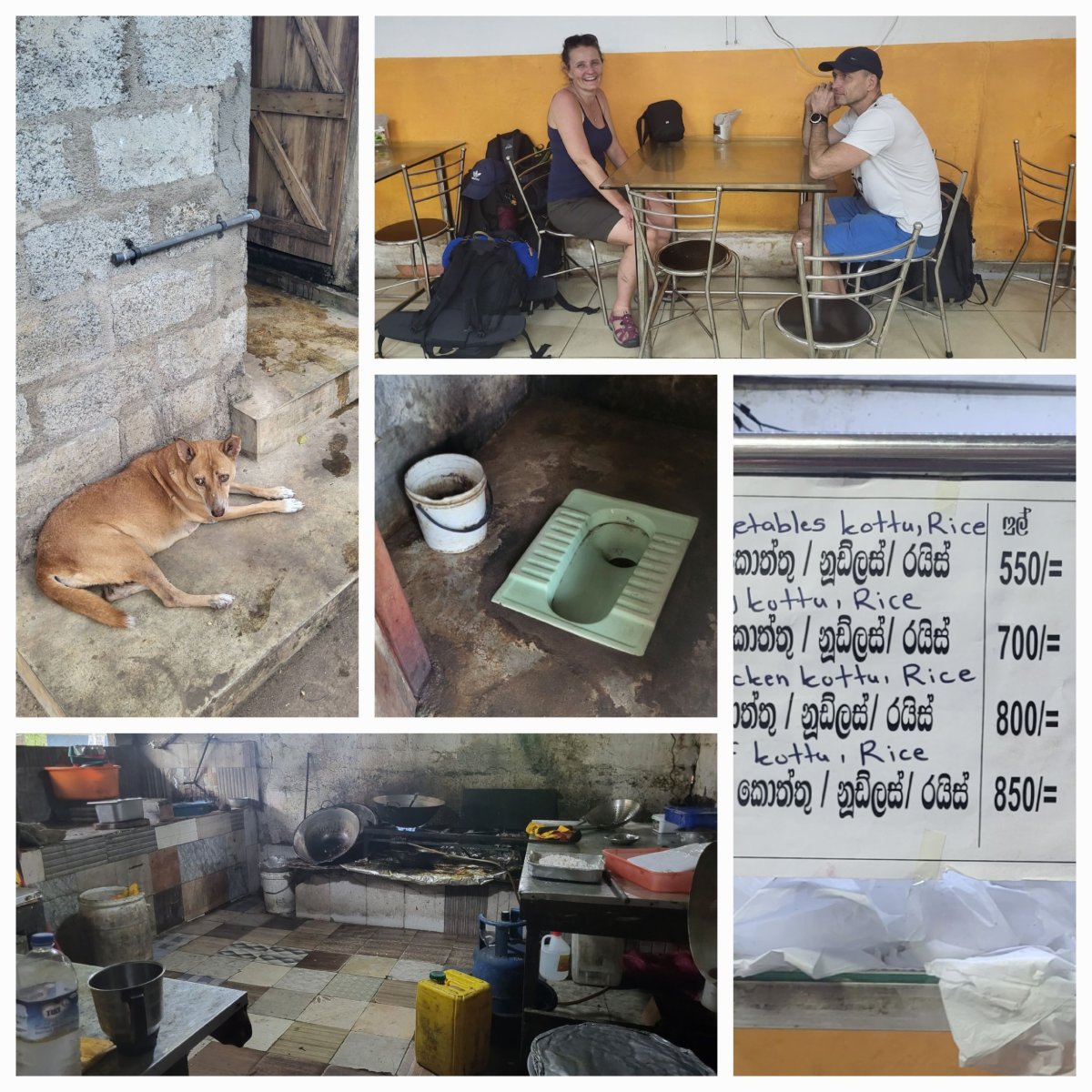 V Dambulle obědváme v malé restauraci pro místní. Kuchyně i přístup na WC vypadají trochu strašidelně, ale takhle se tu prostě bydlí a vaří. Ceny od 16 Kč, dávám si rýži se zeleninou (a srdíčky z okurek) za 26 Kč a sním zase jen polovinu. Petra s Robertem si po včerejších zkušenostech dávají jen jednu porci kottu napůl. Velikost porcí je na Srí Lance obrovská, vše výborné, ale pro nás málo pálivé. I když chceme "spicy", tak to spicy moc není, asi proto, že nejsme místní. Ale všude nám nosí 1-2 misky s chilli zdarma.