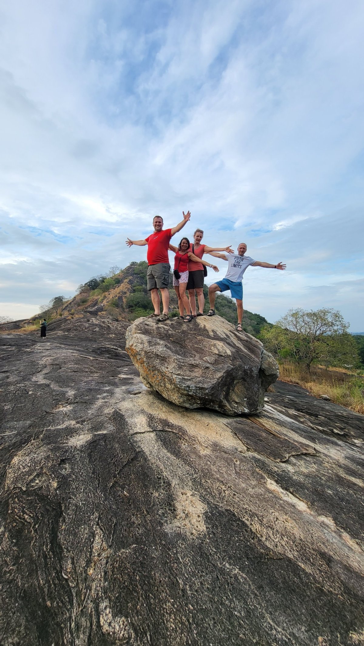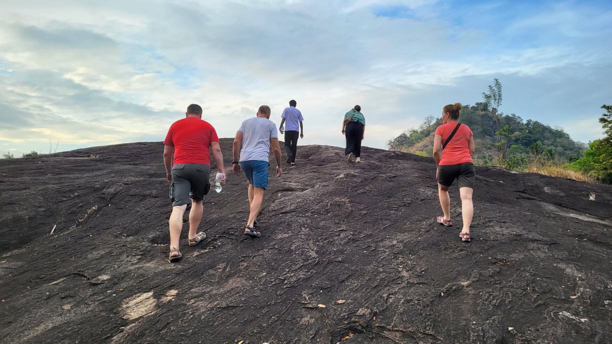 V Dambulle nás se širokým úsměvem na tváři vítá sympatický majitel Chandana a ukazuje nám naše jednoduché pokoje s klimatizací a malou koupelnou. Pokoj pro 2 s polopenzí a bazénem tu stojí jen 650 Kč/noc, tedy 325 Kč/osoba, což je tak levné, že k večeři čekám jen rýži se zeleninou a k snídani 2 toasty. Ale třeba nás Chandana překvapí, hodnocení má skvělé a budeme u něj 2 noci. Na západ slunce jsme zváni místním personálem na hezký pěší výlet na zdejší skálu.