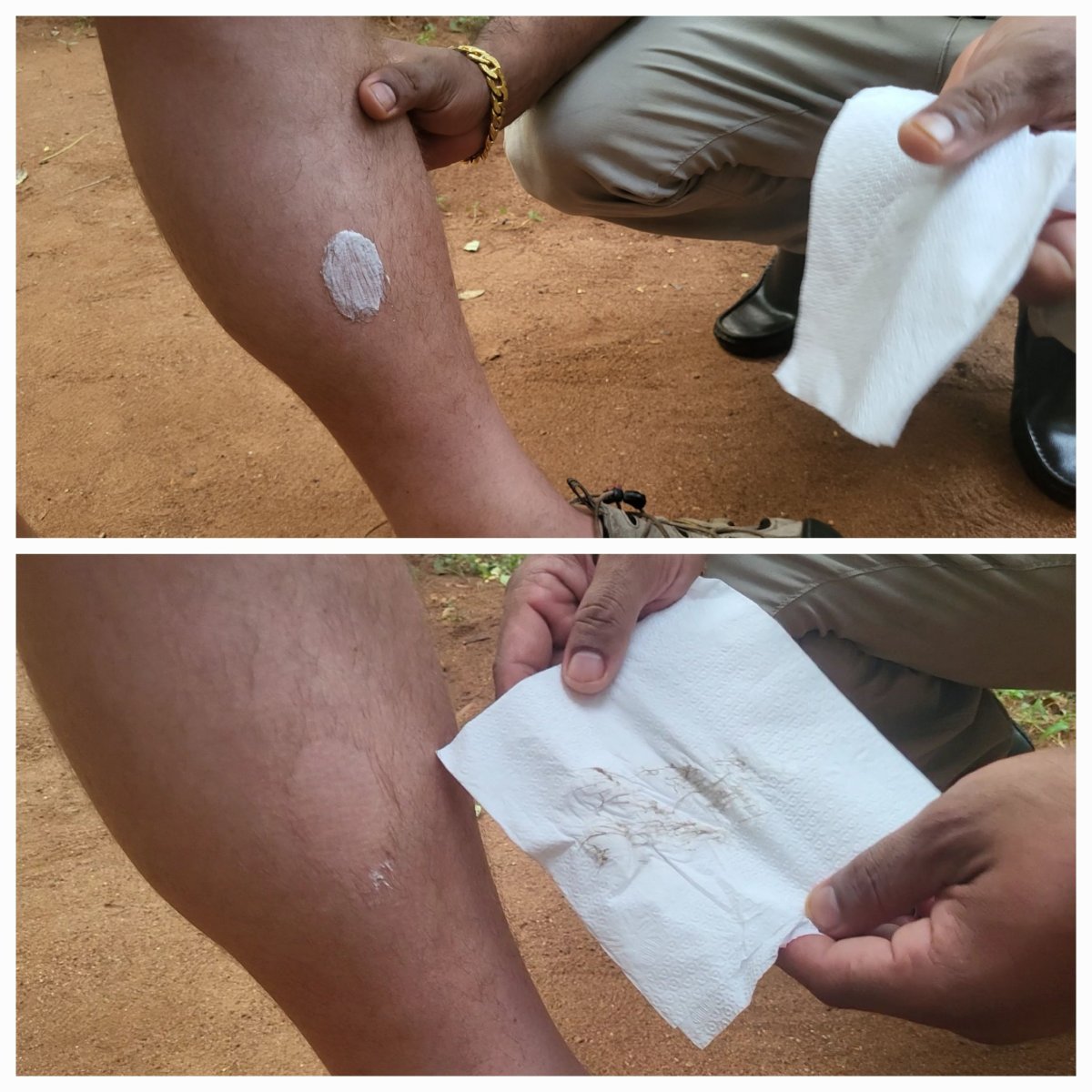 Nakonec navštěvujeme Spice Garden. Zahradou nás provází student 6. ročníku VŠ přírodní medicíny, která u nás neexistuje. Vysvětluje nám, jak přírodní medicína funguje a jak opravdu léčí, na rozdíl od medicíny západní, která "léčí" až následky, a to operacemi a chemickými léky. Vidíme, jak tu vše roste, dozvíme se, na co se která rostlina používá a také, jak se zpracovává na krémy, kapky, extrakty nebo prášek a k čemu konkrétně se používá. Na závěr velmi zajímavého povídání dostáváme výborný srílanský červený čaj ochucený kardamonem, skořicí a hřebíčkem. Na ayurvédskou masáž bohužel nemáme čas, tak budoucí pan doktor pomocí 100% přírodního krému aspoň depiluje Robertovi kousek nohy :) Vidíme, že přírodní produkty ze Srí Lanky skutečně fungují!