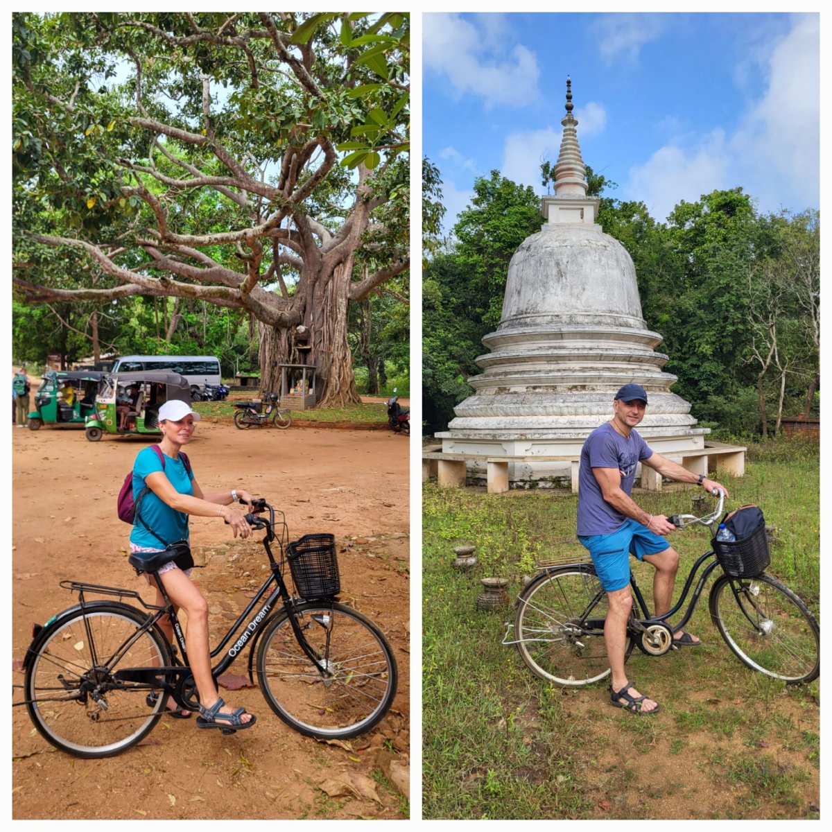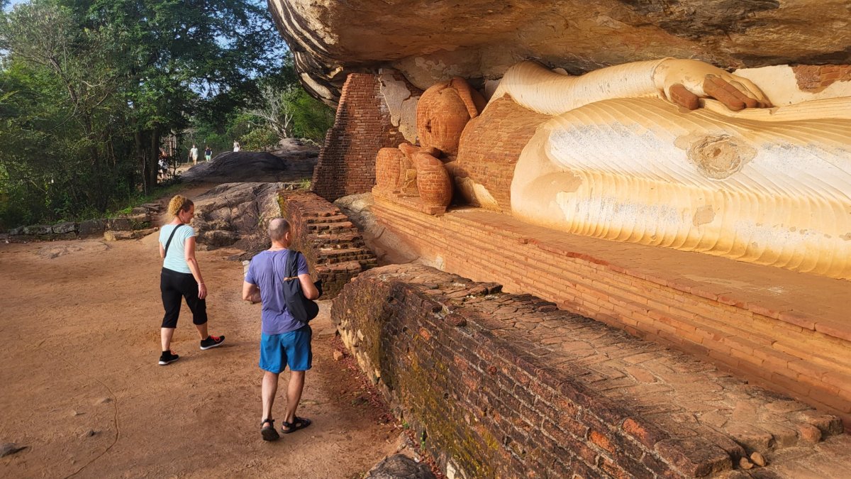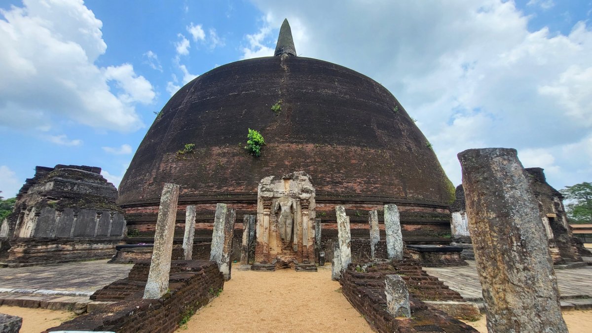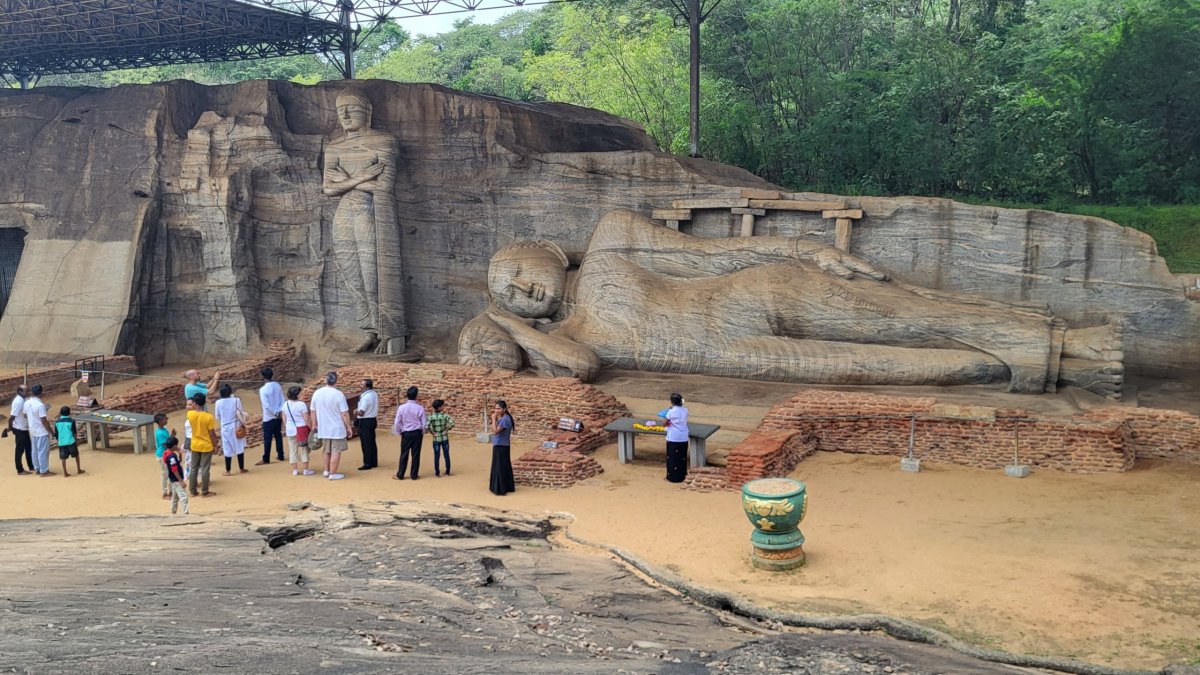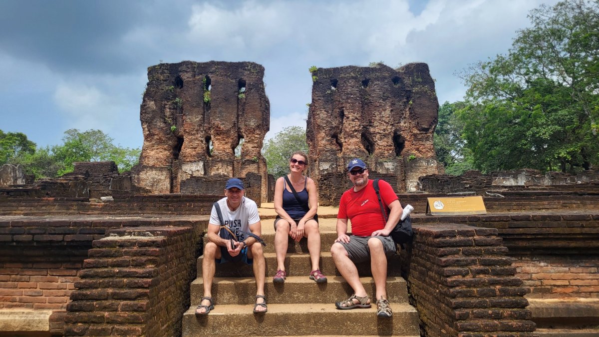 Snídaně je opět bufetová a všeho zase moc. Chutnají mi místní palačinky plněné lehce pálivým kokosem smíchaným s džemem a taky kokosové placky s chilli pastou, ale mají tu i volská oka, toasty a arašídové máslo. Dnes nás čeká výlet do Polonnaruwy. Původně jsme ji chtěli projet na kolech, ale kvůli velkému dusnu nám Chandana zajistí dopravu tam a zpět i projížďku starověkým městem autem. Řidič se zastavuje cestou na modlitbu u růžového slona. Na místě pak uznáváme, že v tom horku bychom na kolech dlouho nevydrželi a určitě bychom nedojeli až na konec starého města, kde jsou nejvýznamnější památky. Postupně procházíme velkou část zřícenin, Královský palác, Staré lázně, Chrám Alahana Pirivena, vidíme spoustu soch ležícího i sedícího Buddhy. Vstupné je 30 dolarů a ani za 6 hodin (a autem) jsme tu nestihli projít všechno.