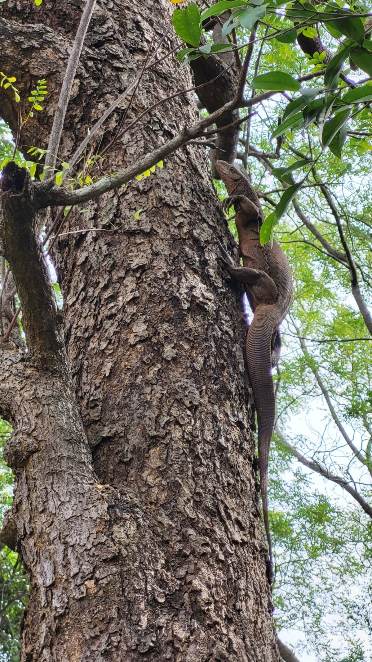 Snídaně je úžasná, tradiční, domácí a veliká: kokosové placky, pol sambol, plněné palačinky, papájový fresh juice, káva, čaj. Cestou do Chrámu Buddhova Zubu potkáváme u kandyjského jezera asi nejtlustšího varana skvrnitého na světě! Místní nám ukazují strom plný velkých kaloňů indických.